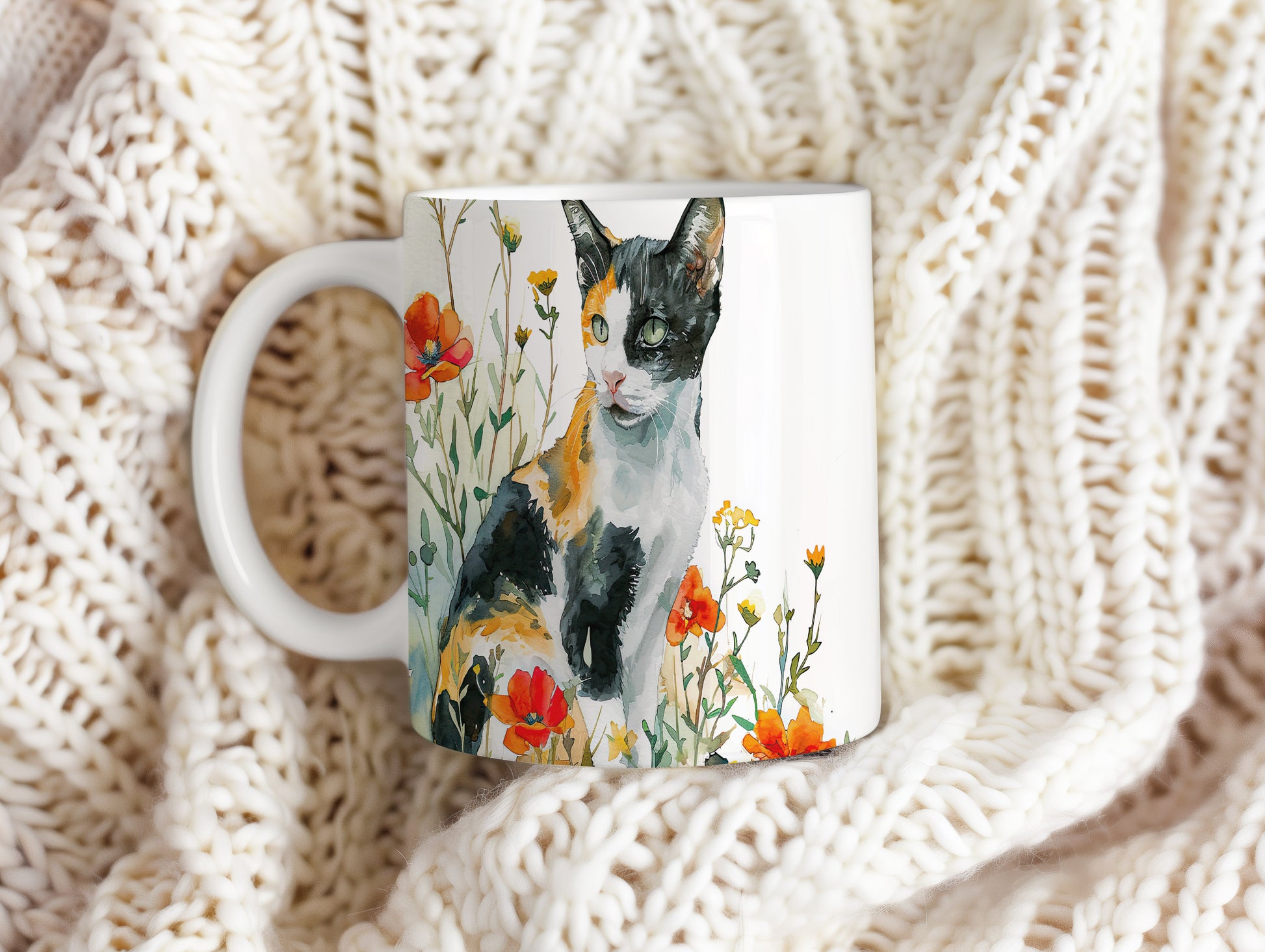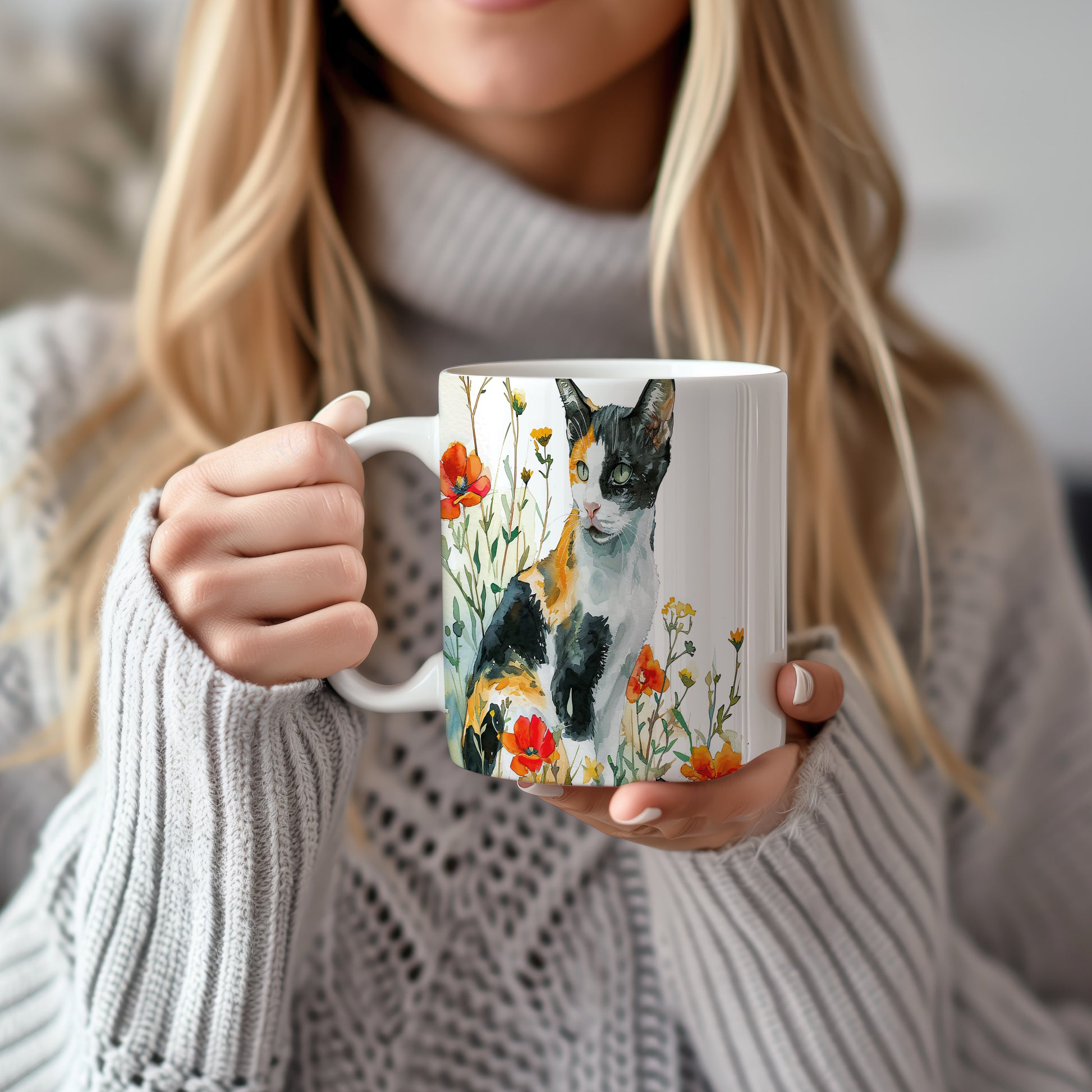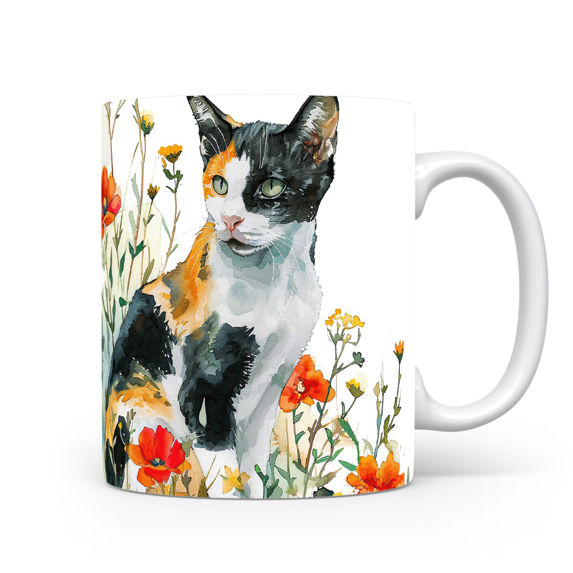 Tento keramický hrnek zobrazuje kočku obklopenou barevnými květinami. Je ideální pro milovníky zvířat a skvělým dárkem pro každého, kdo si rád vychutná kávu nebo čaj. Materiál: keramika. Objem: 330 ml. Vhodné do myčky i mikrovlnky. Používání tohoto hrnku přináší radost a oživí každé pití.
