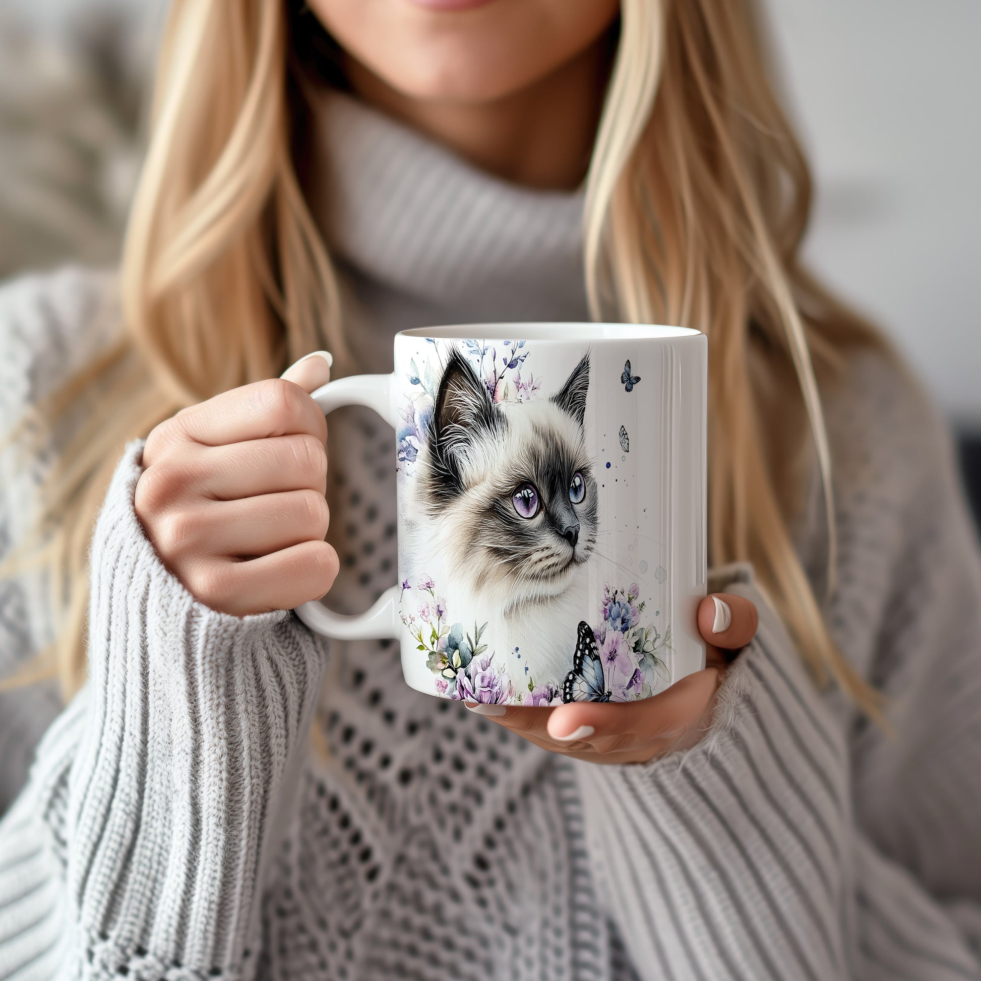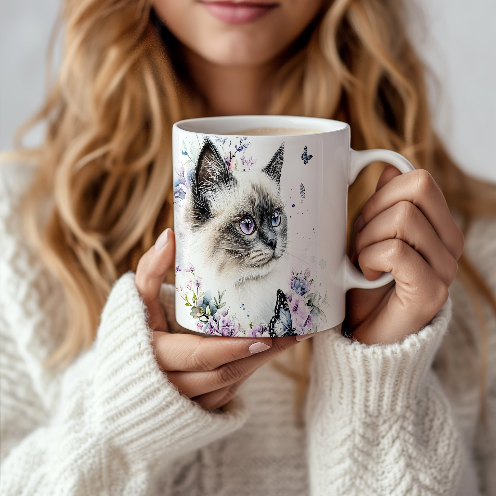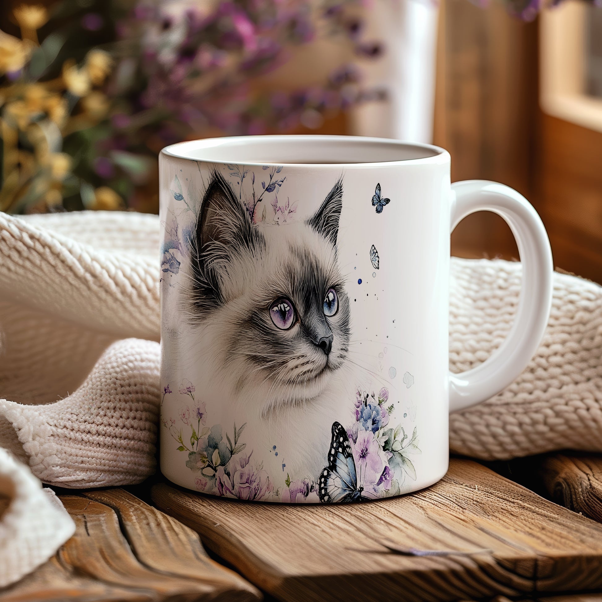 Hrnek s motivem kočky a motýlů přináší do vašeho dne radost a přírodní krásu. Je ideální pro milovníky koček a přírody, skvělý tip na dárek pro přátele či rodinu. Materiál: keramika. Objem: 330 ml. Vhodné do myčky i mikrovlnky. Tento hrnek vám zpříjemní každé sousto a nápoj.