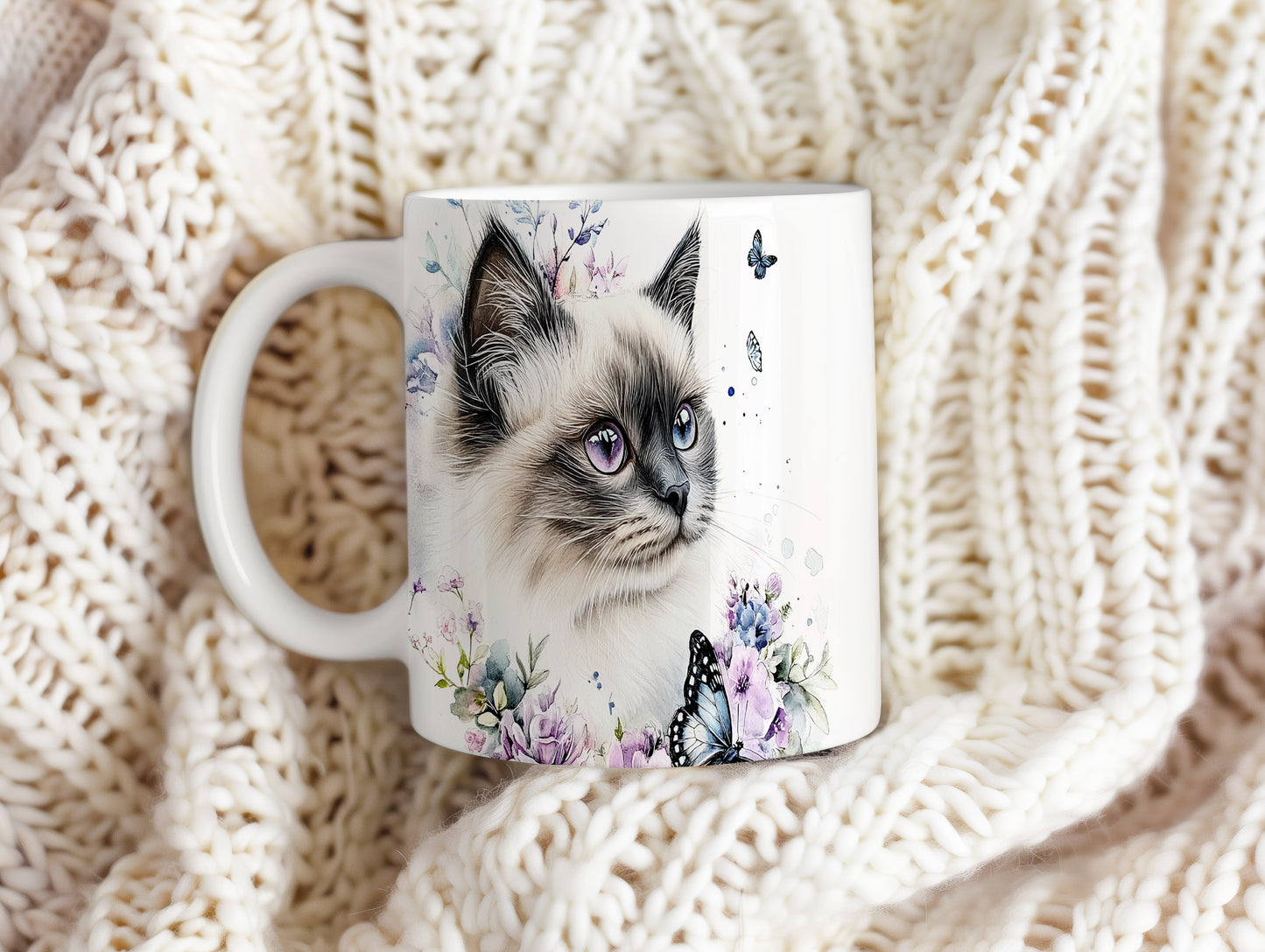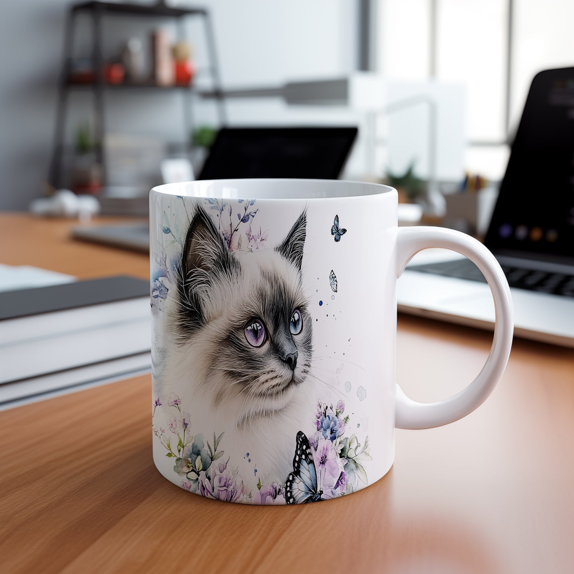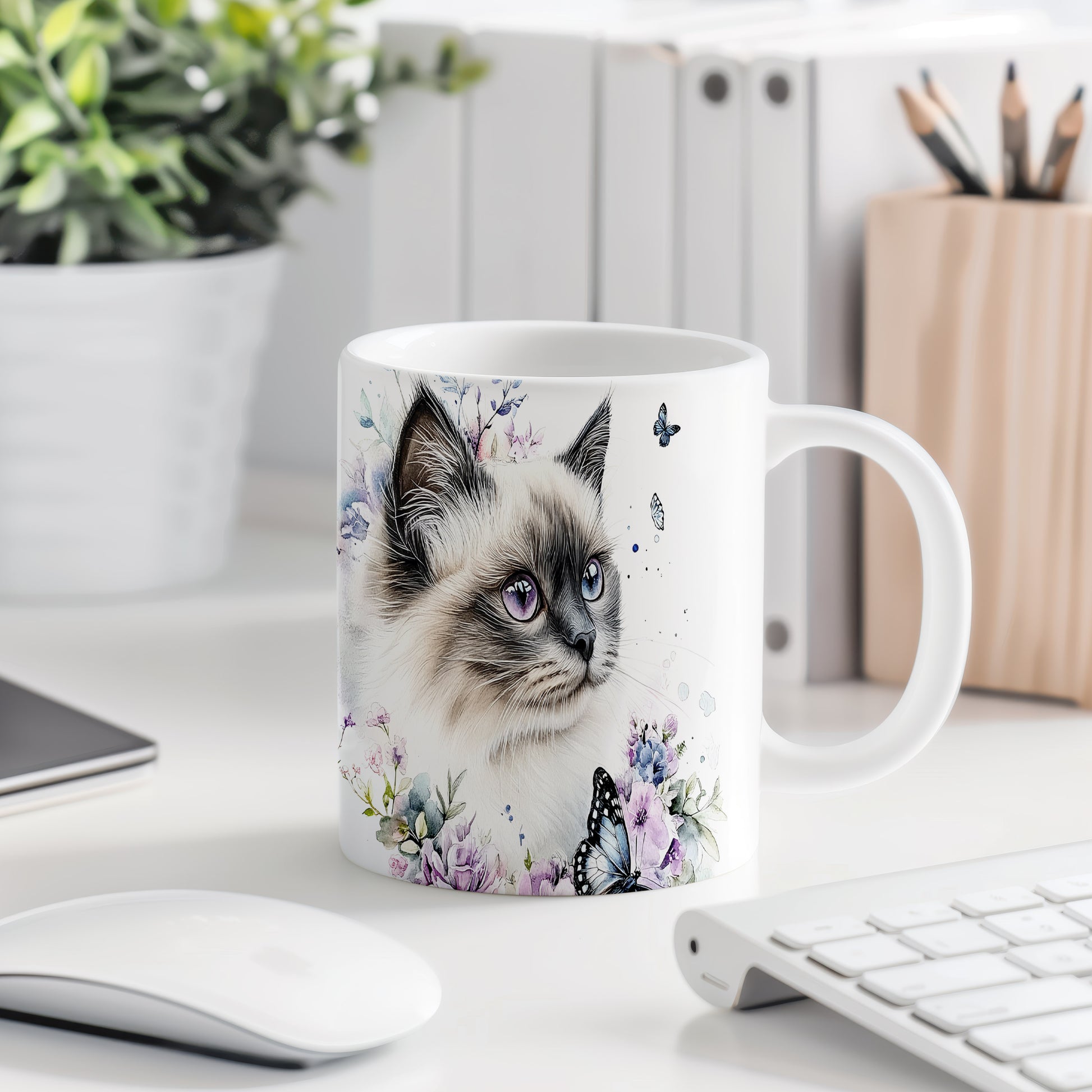 Hrnek s motivem kočky a motýlů přináší do vašeho dne radost a přírodní krásu. Je ideální pro milovníky koček a přírody, skvělý tip na dárek pro přátele či rodinu. Materiál: keramika. Objem: 330 ml. Vhodné do myčky i mikrovlnky. Tento hrnek vám zpříjemní každé sousto a nápoj.