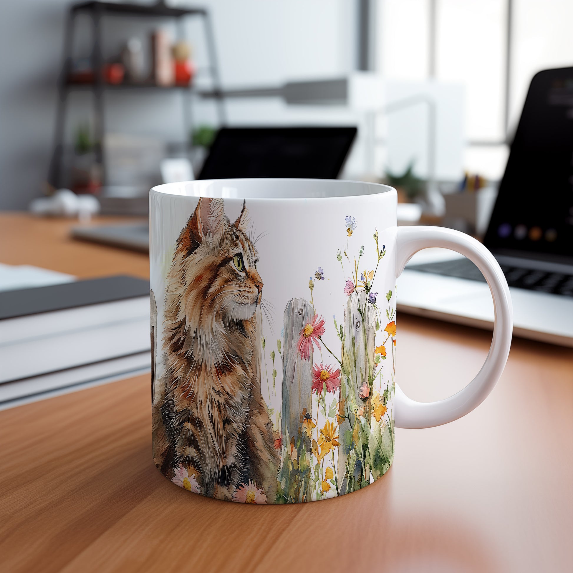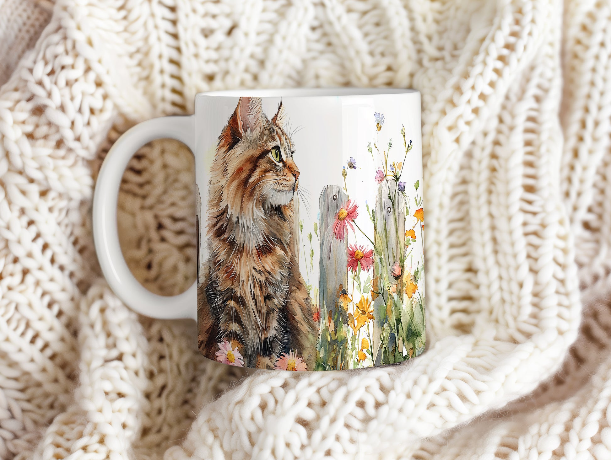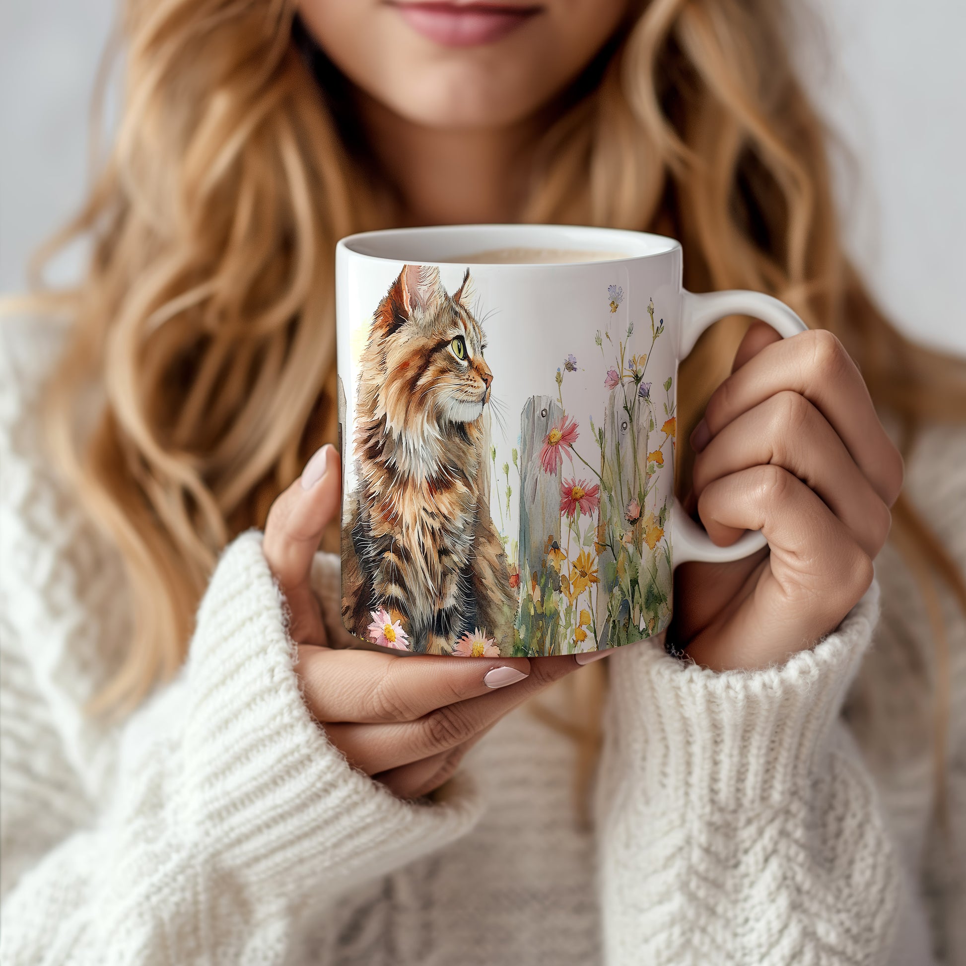 Tento hrnek zobrazuje kočku v malebném stylu, která sedí mezi květinami. Je ideální pro milovníky koček a přírody, skvělý tip na dárek pro přátele nebo rodinu. Materiál: keramika. Objem: 330 ml. Vhodné do myčky i mikrovlnky. Používáním tohoto hrnku si užijete nejen kávu nebo čaj, ale také krásný design, který potěší každého.