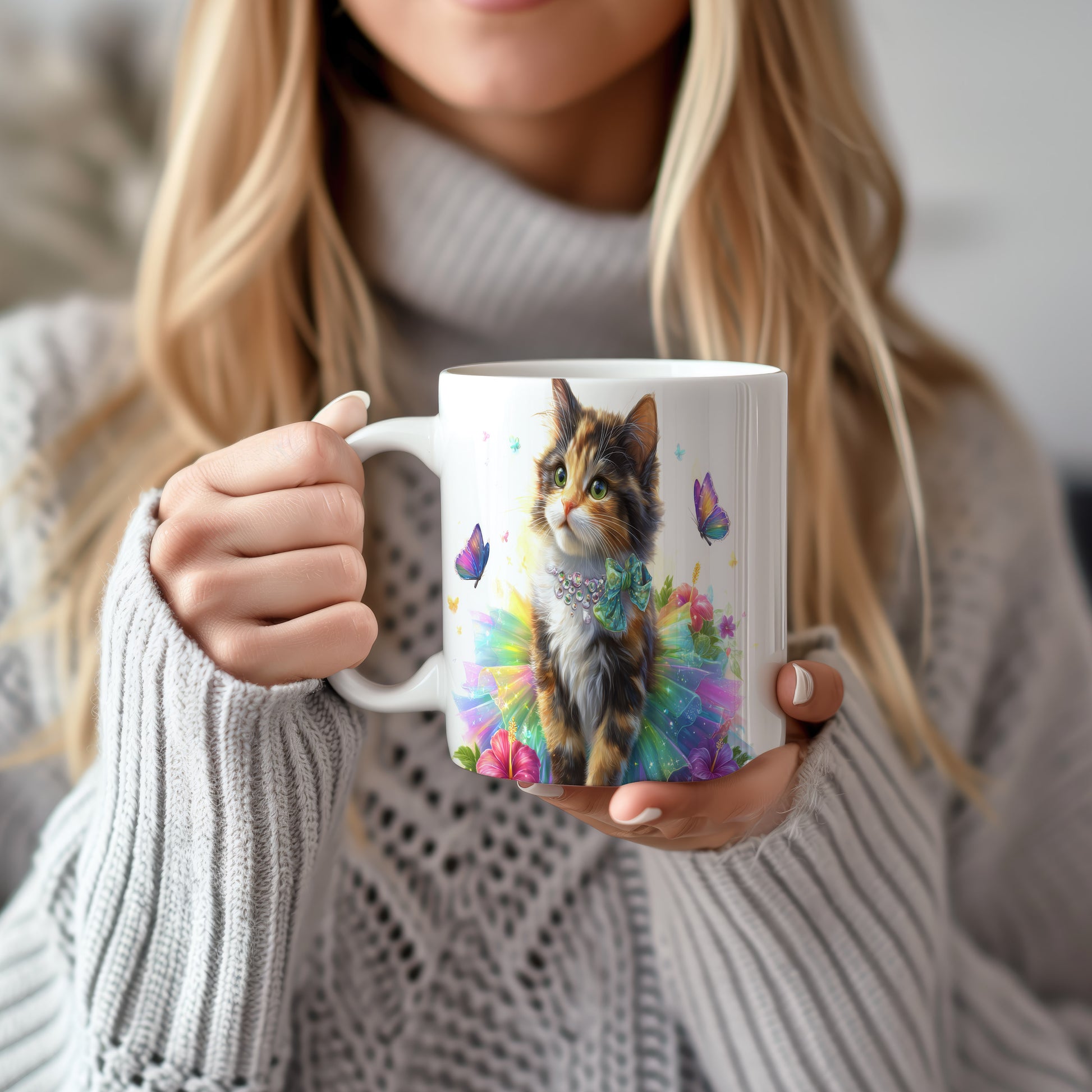 Tento hrnek s roztomilou kočkou v třpytivém outfitu je ideální pro milovníky koček a originálních designů. Skvělý tip na dárek pro přátele nebo rodinu, kteří ocení jedinečné kousky. Materiál: keramika. Objem: 330 ml. Vhodné do myčky i mikrovlnky. Používáním tohoto hrnku si každý den zpříjemníte kávu nebo čaj.