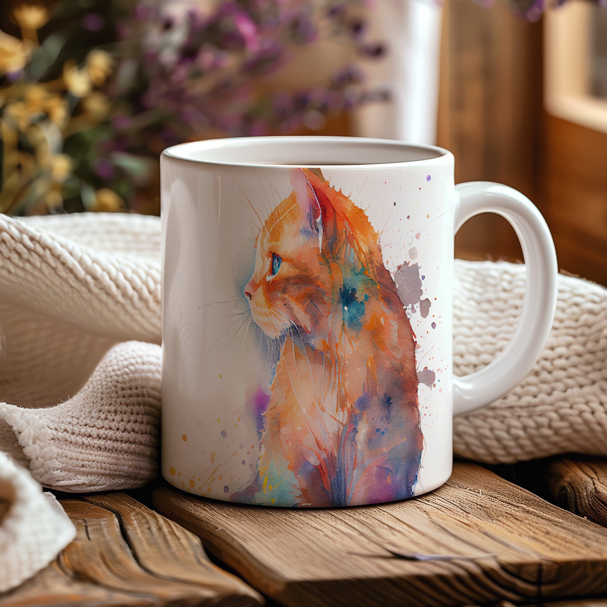 Hrnek s kočkou v akvarelovém stylu – dárkovým tipem