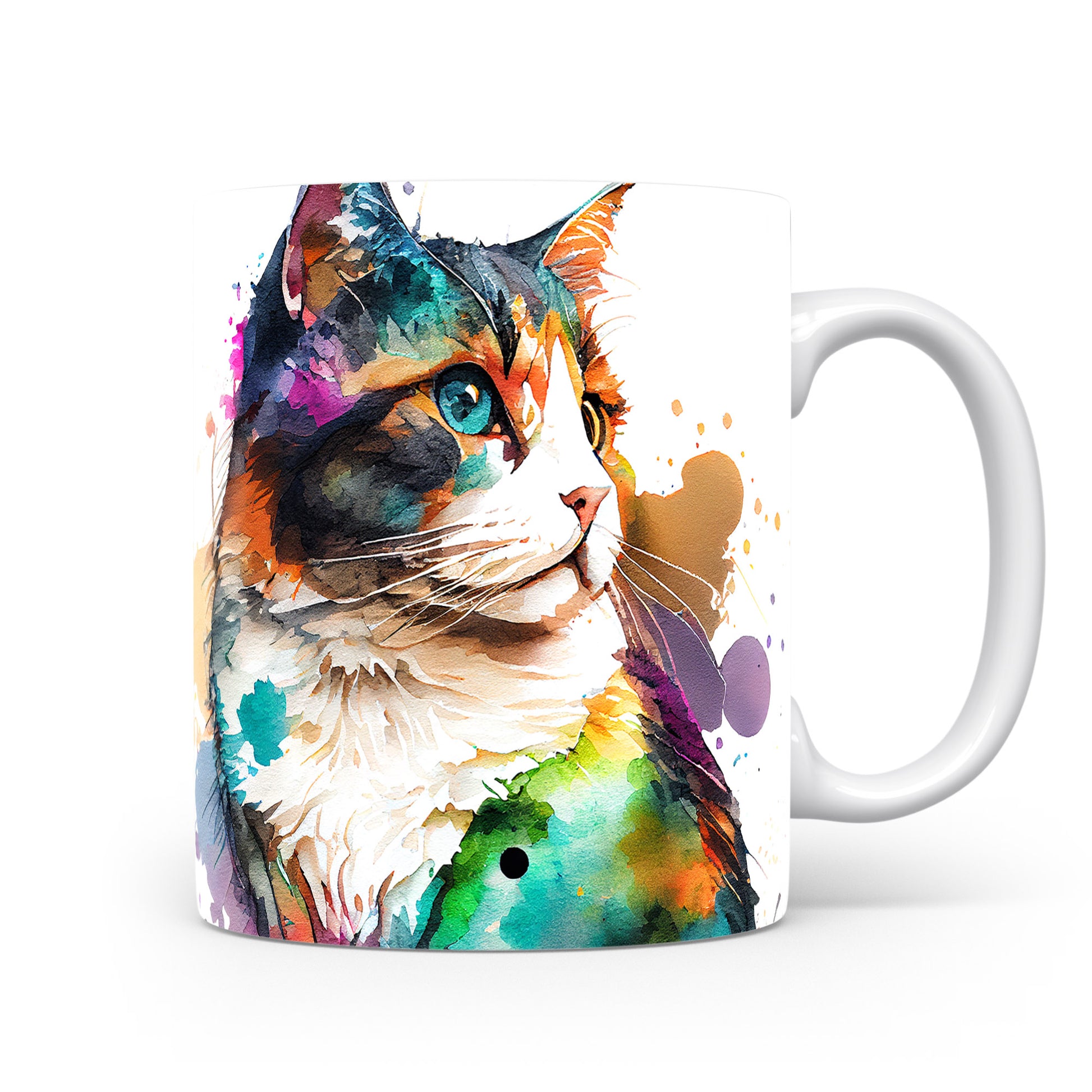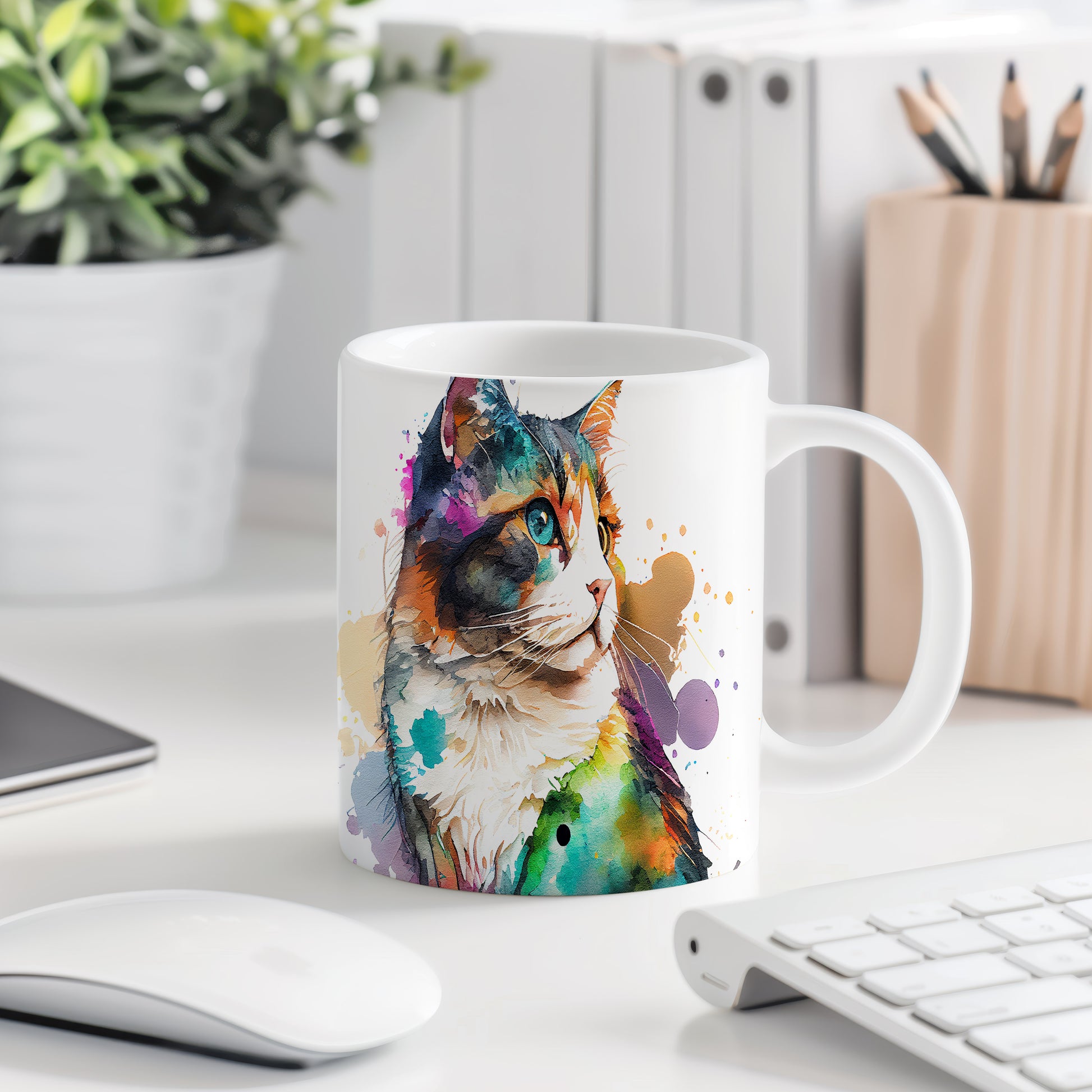 Keramický hrnek s motivem kočky v akvarelovém stylu. Tento hrnek je ideální pro milovníky koček a umění, skvělý tip na dárek pro přátele nebo rodinu. Materiál: keramika. Objem: 330 ml. Vhodné do myčky i mikrovlnky. Používání tohoto hrnku přináší radost a zábavu při každém doušku.