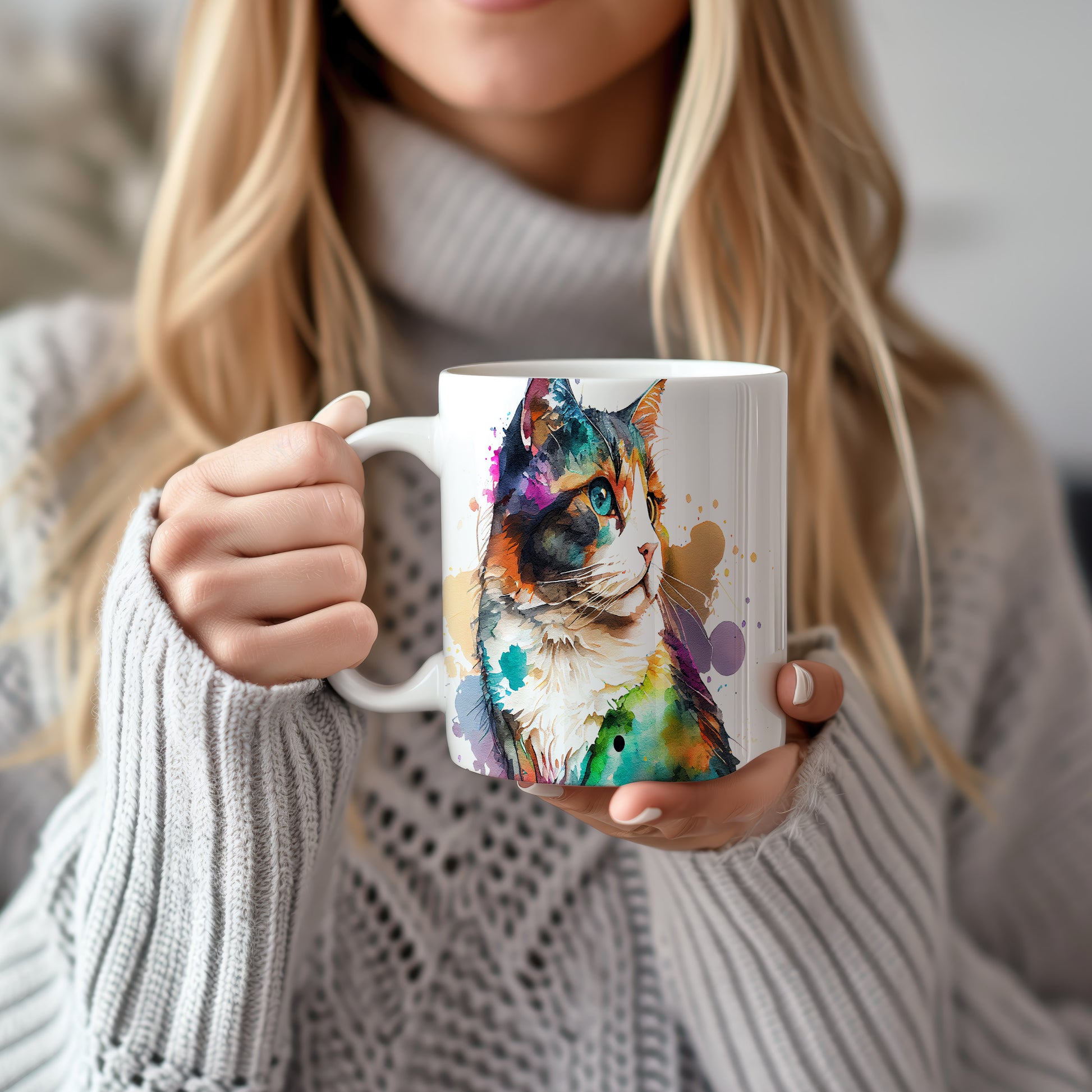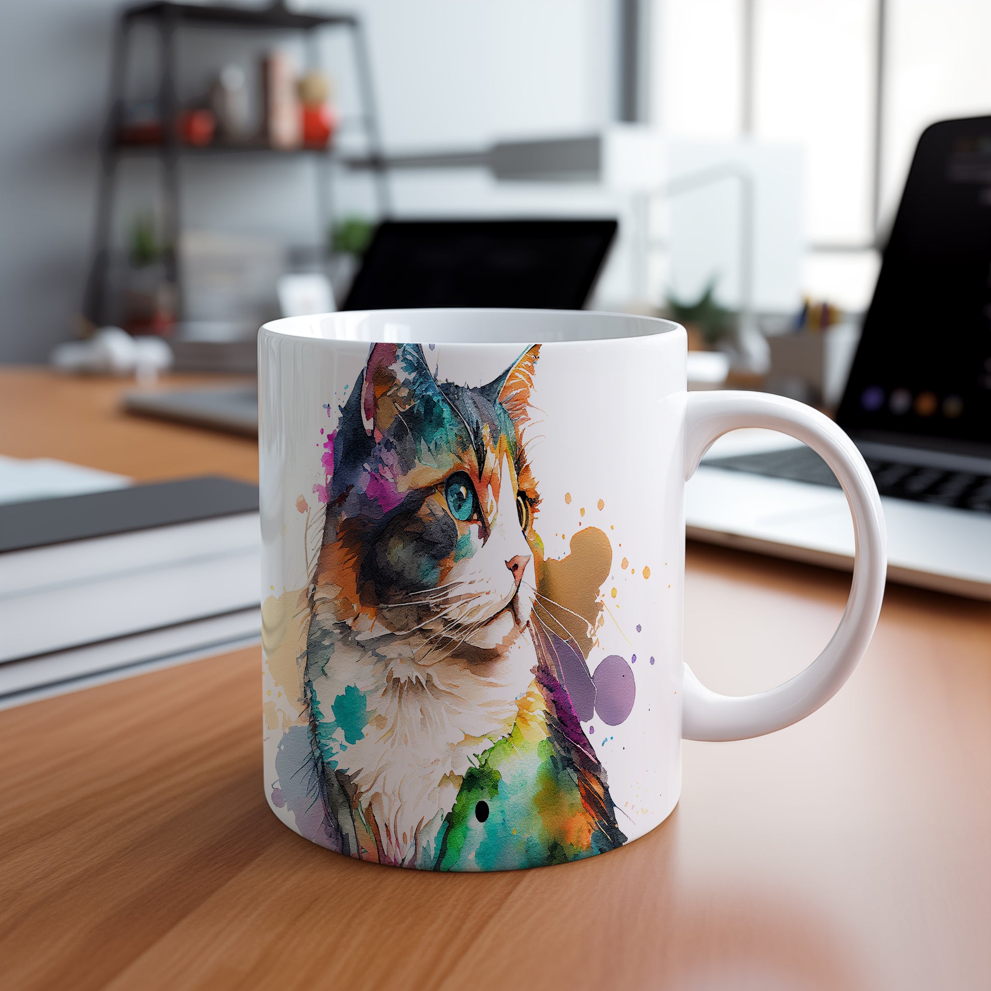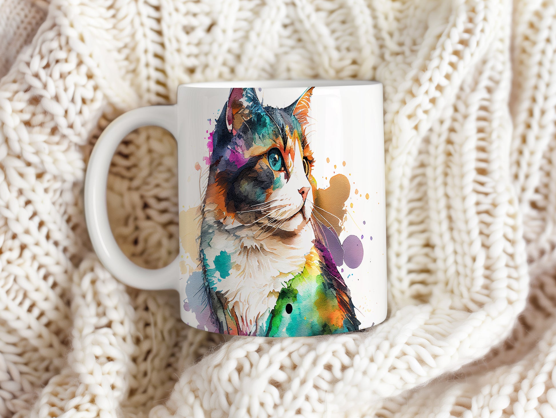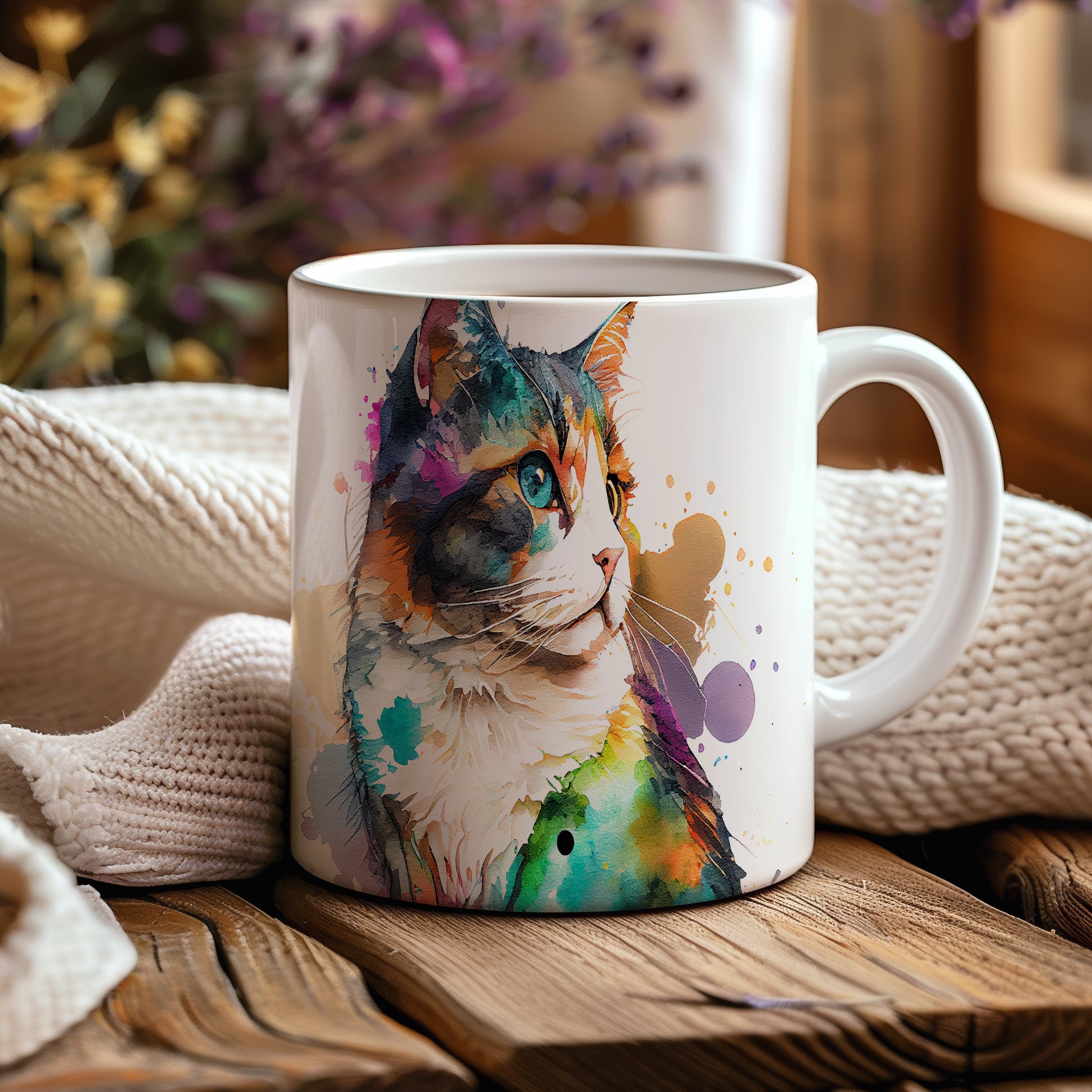 Hrnek s kočkou v akvarelovém stylu – malířským vzhledem