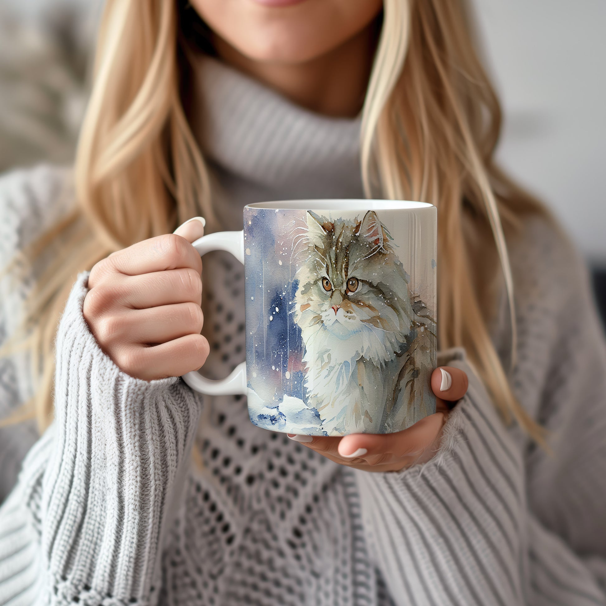 Tento elegantní hrnek z keramického materiálu zobrazuje kočku v akvarelovém stylu. Je ideální pro milovníky koček a skvělým dárkem pro přátele nebo rodinu. Materiál: keramika. Objem: 330 ml. Vhodné do myčky i mikrovlnky. Díky svému designu přináší do každodenního pití radost a styl.