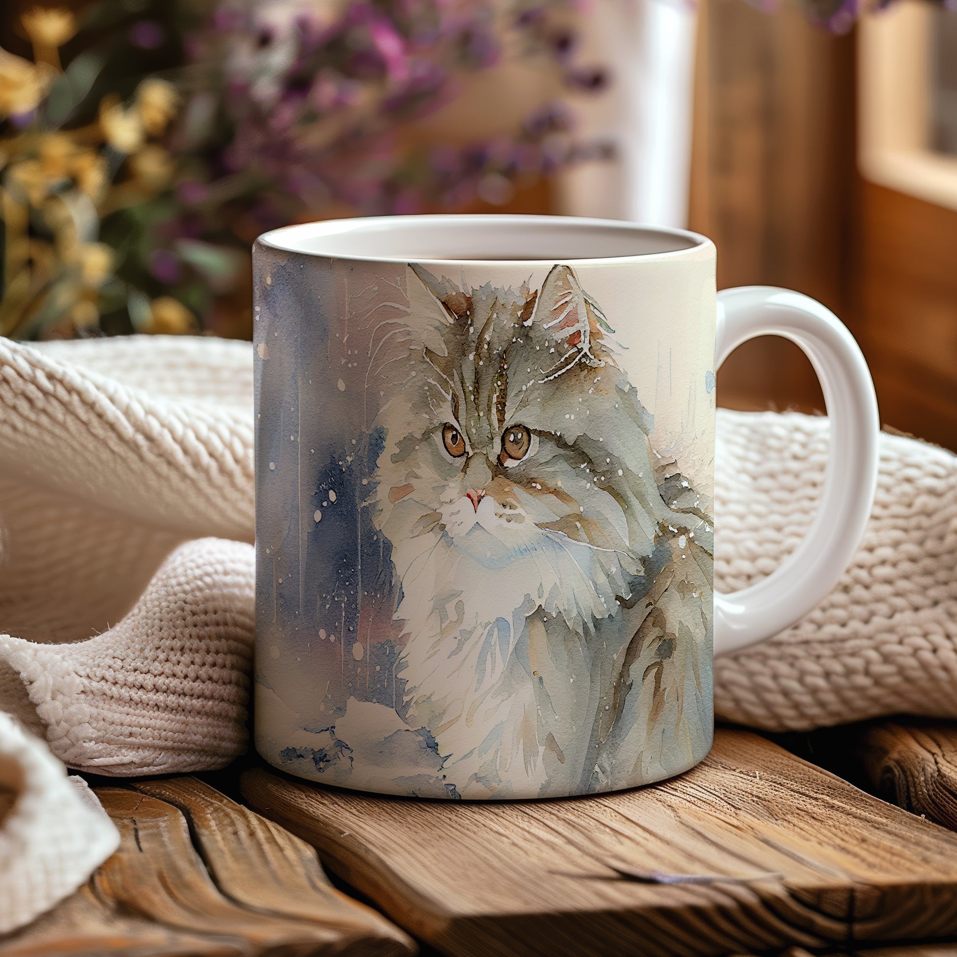 Hrnek s kočkou v akvarelovém stylu – originálním motivem