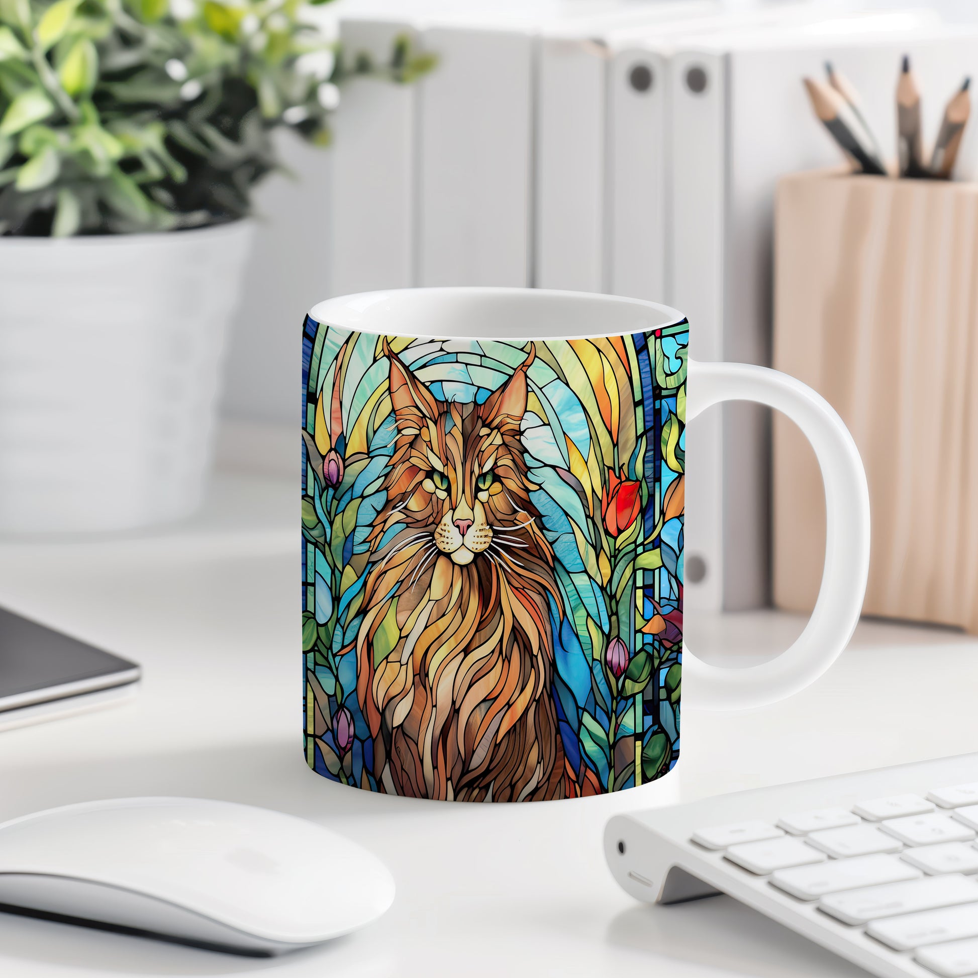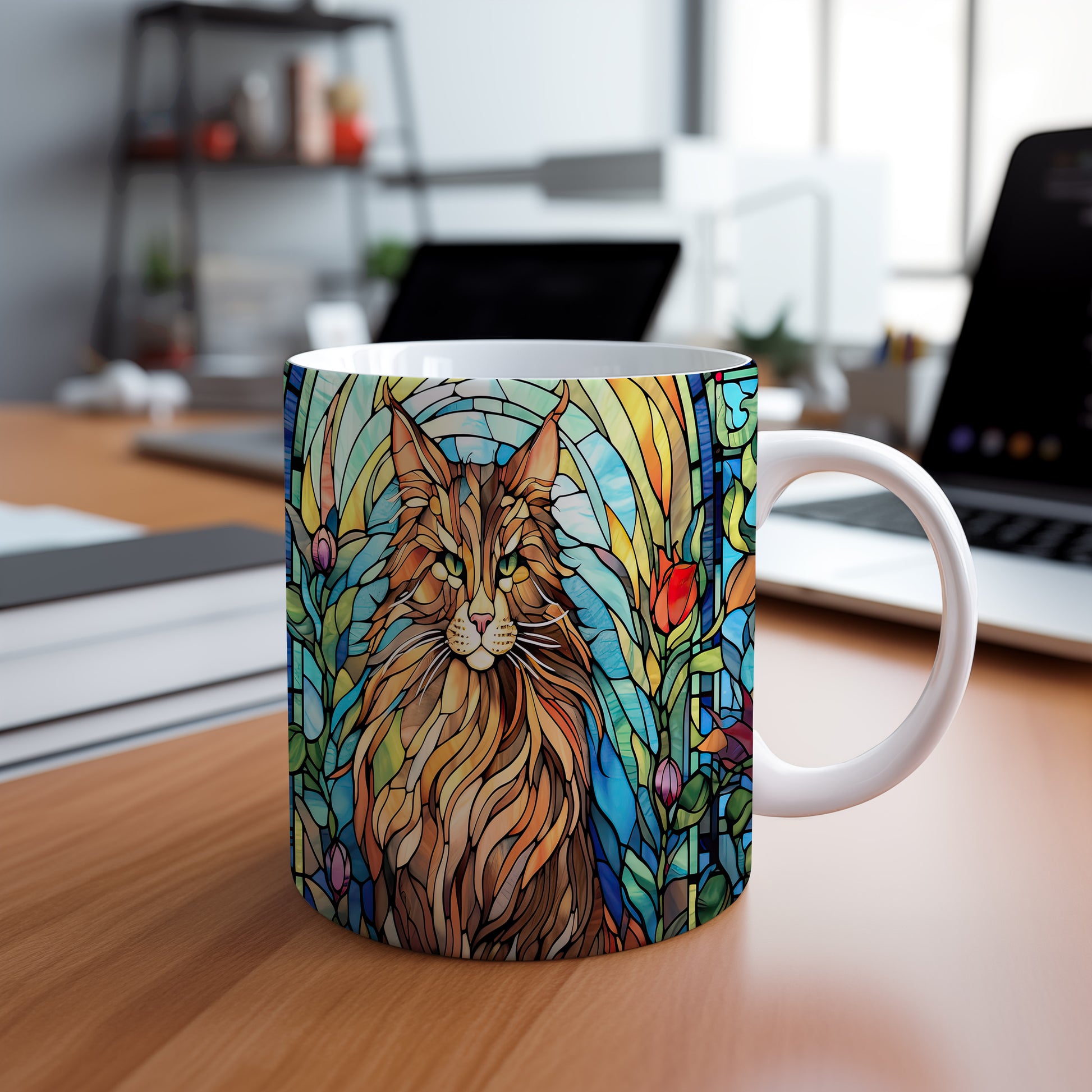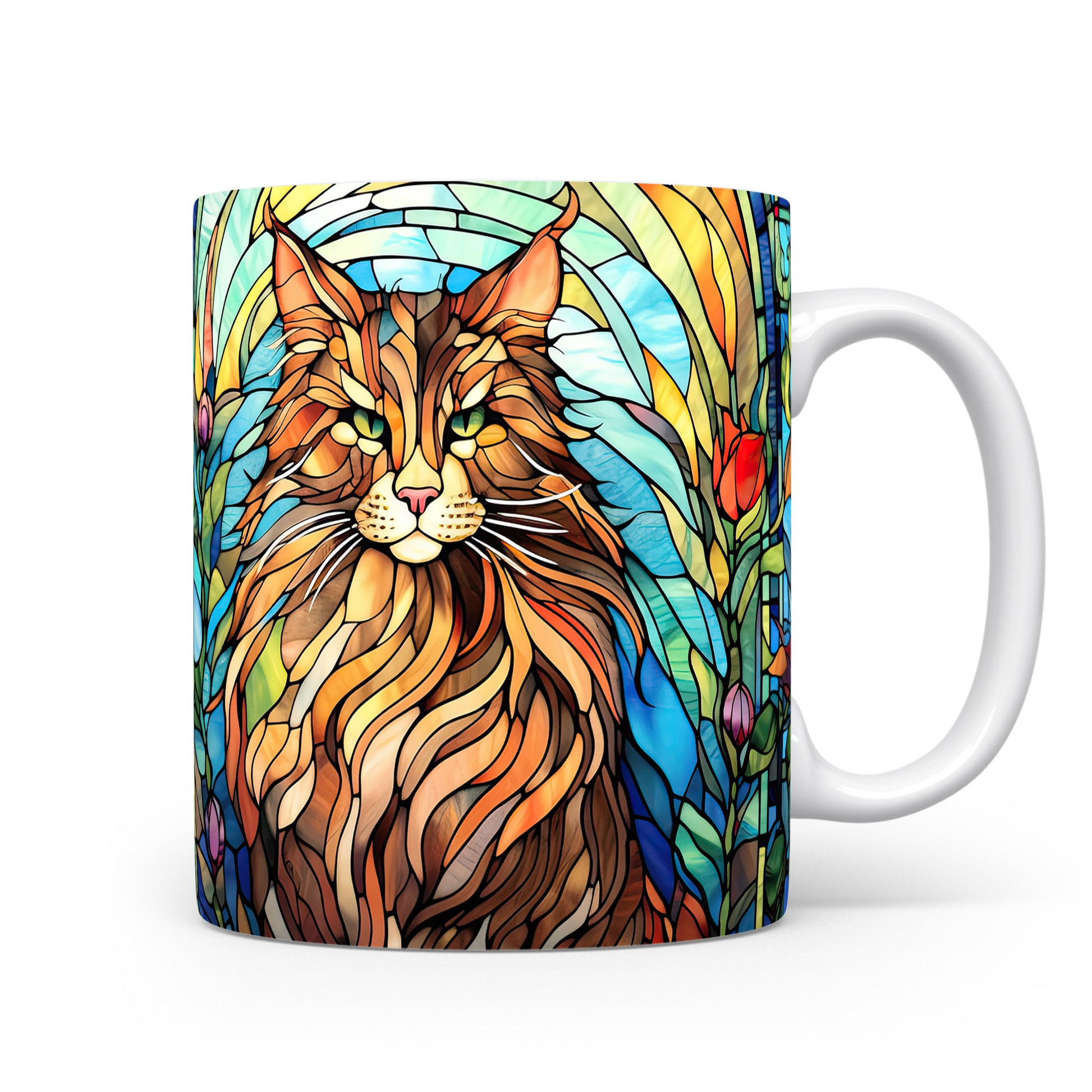Tento hrnek zobrazuje majestátní kočku v barevném vitrážovém stylu. Je ideální pro milovníky koček a skvělým dárkem pro každého, kdo má rád tyto elegantní tvory. Materiál: keramika. Objem: 330 ml. Vhodné do myčky i mikrovlnky. Používání tohoto hrnku přináší radost z každého doušku.