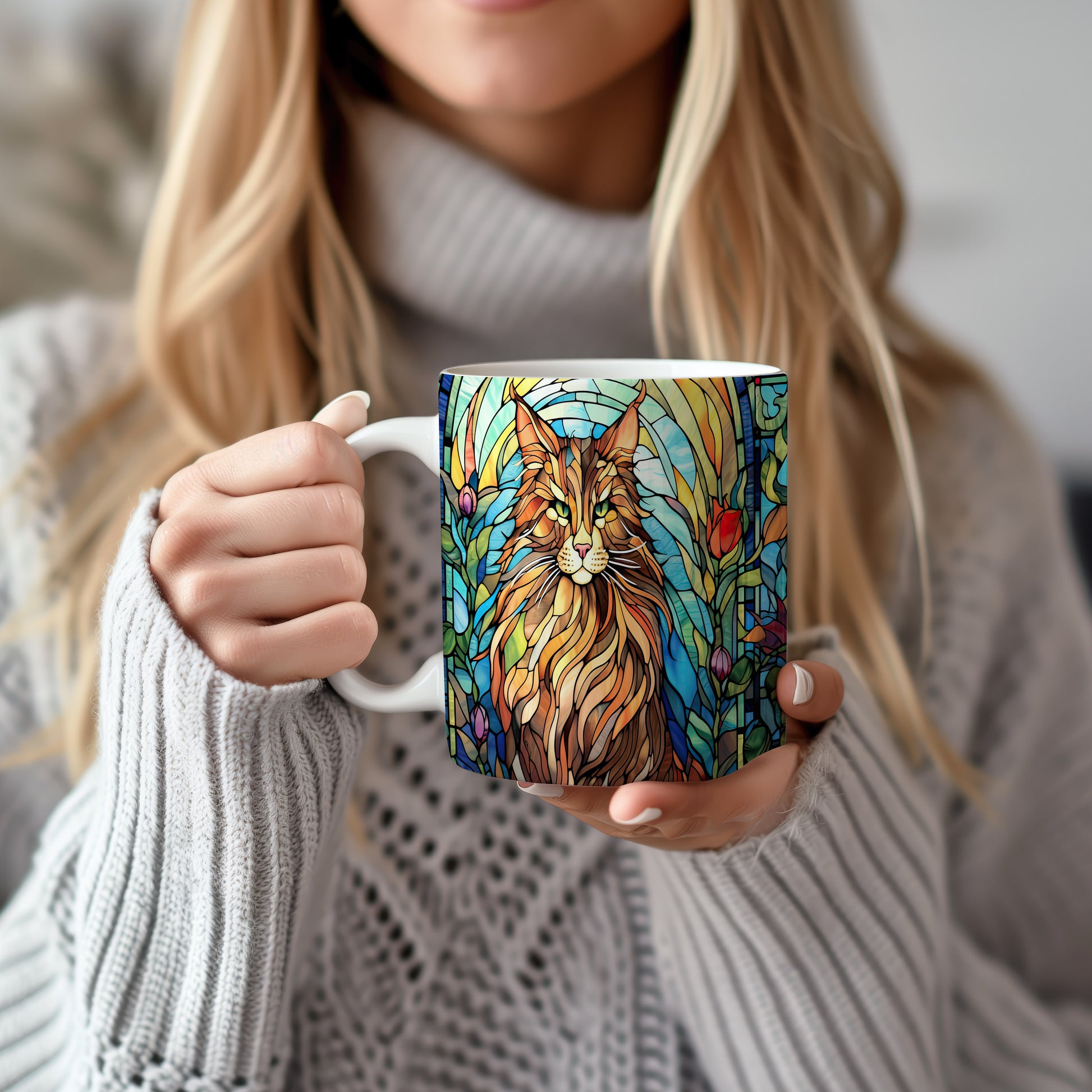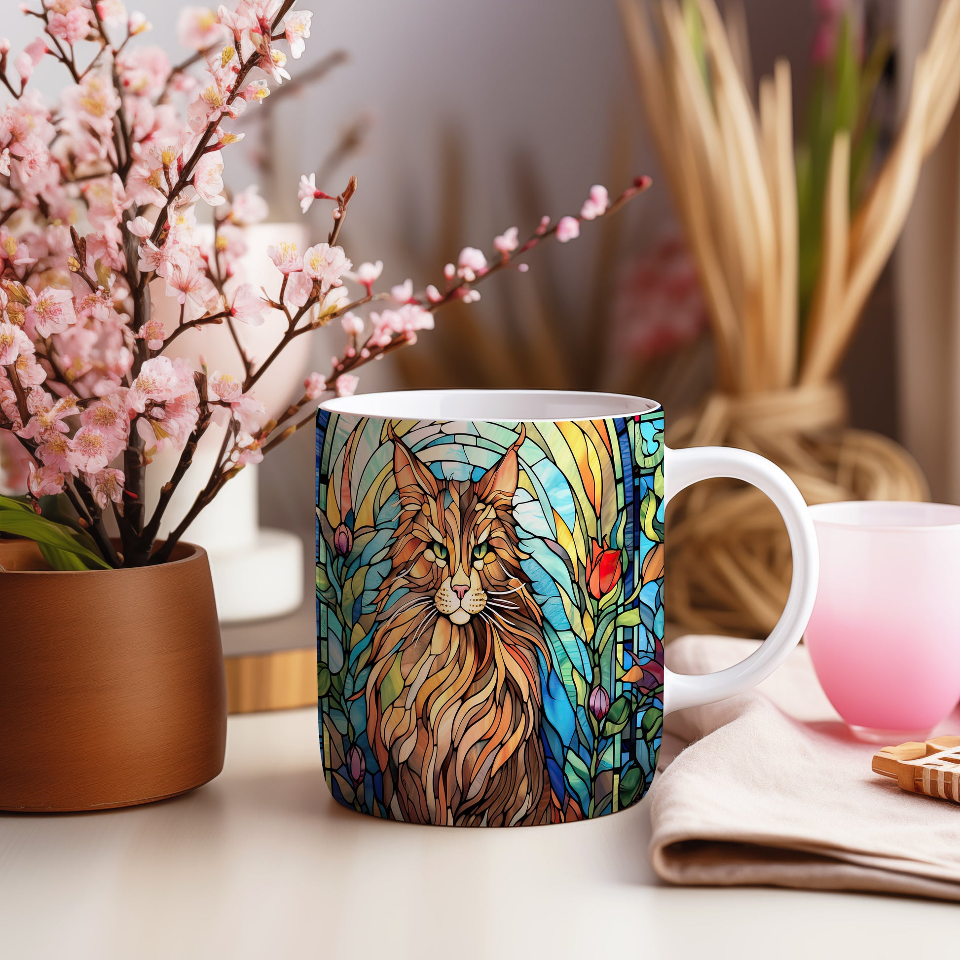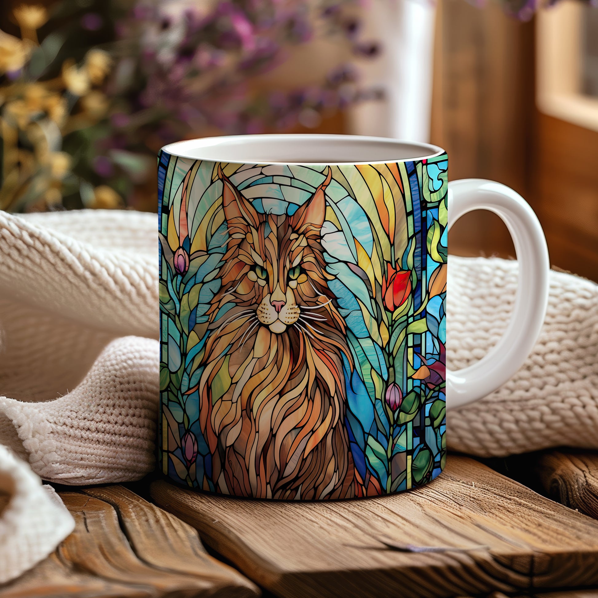 Tento hrnek zobrazuje majestátní kočku v barevném vitrážovém stylu. Je ideální pro milovníky koček a skvělým dárkem pro každého, kdo má rád tyto elegantní tvory. Materiál: keramika. Objem: 330 ml. Vhodné do myčky i mikrovlnky. Používání tohoto hrnku přináší radost z každého doušku.