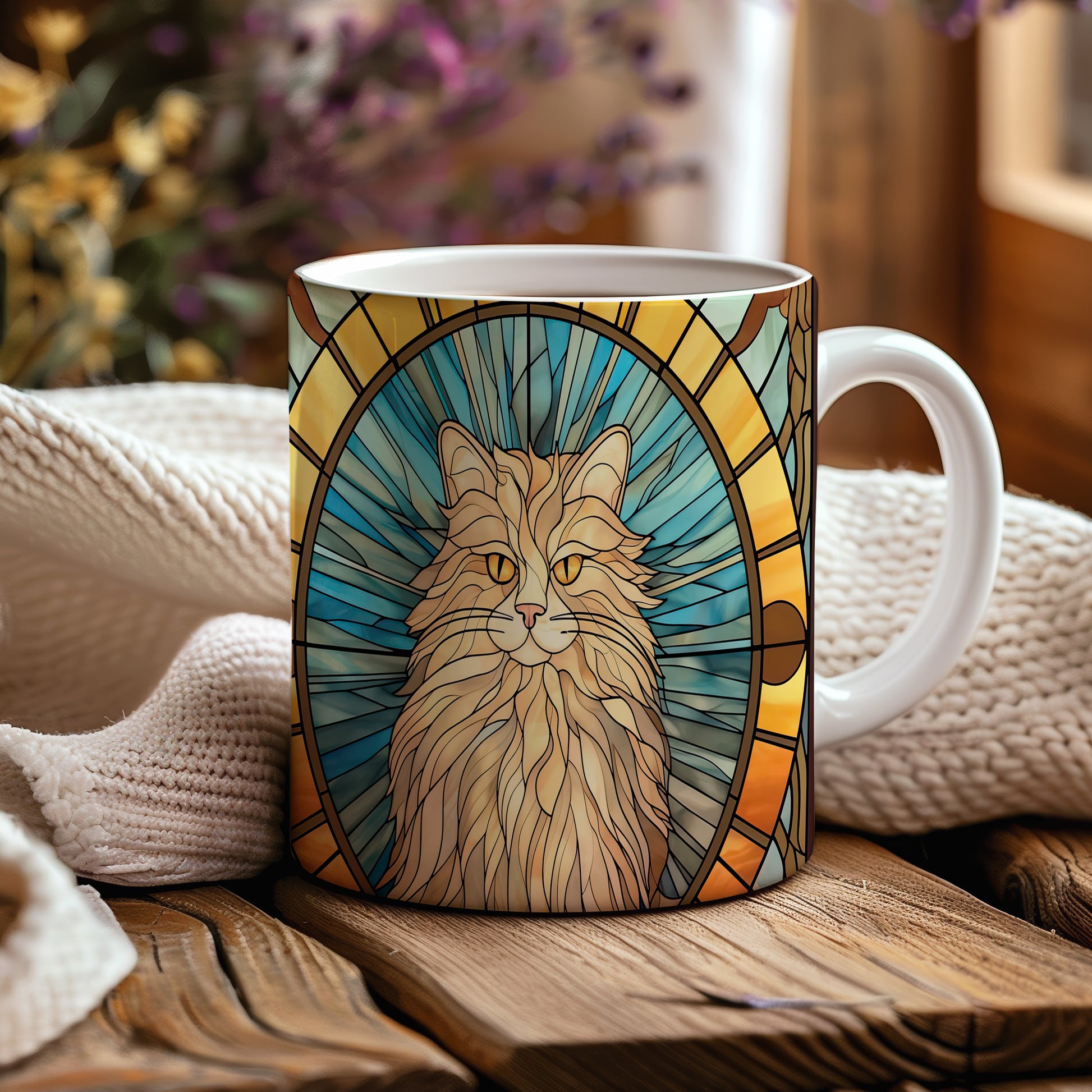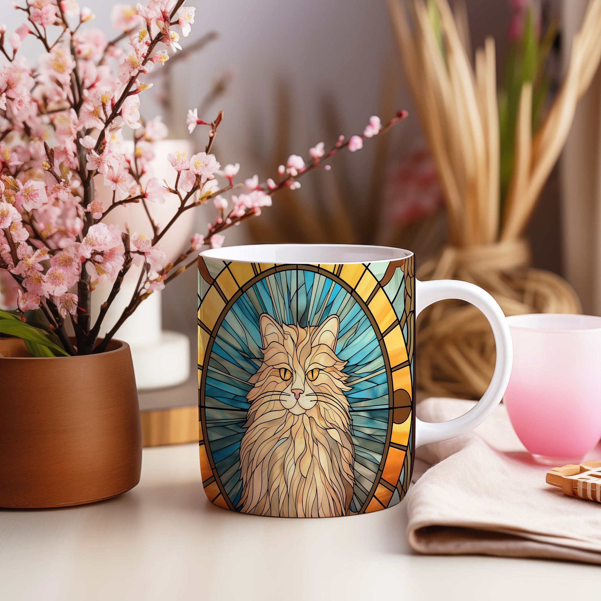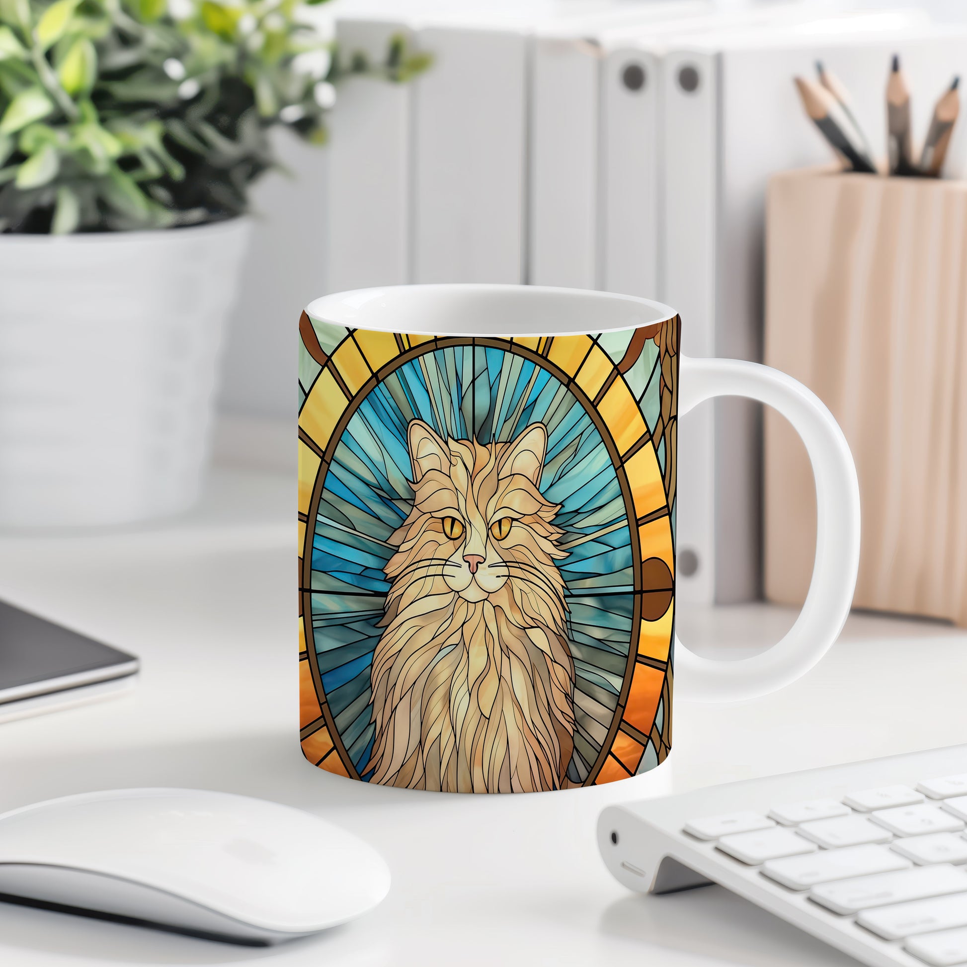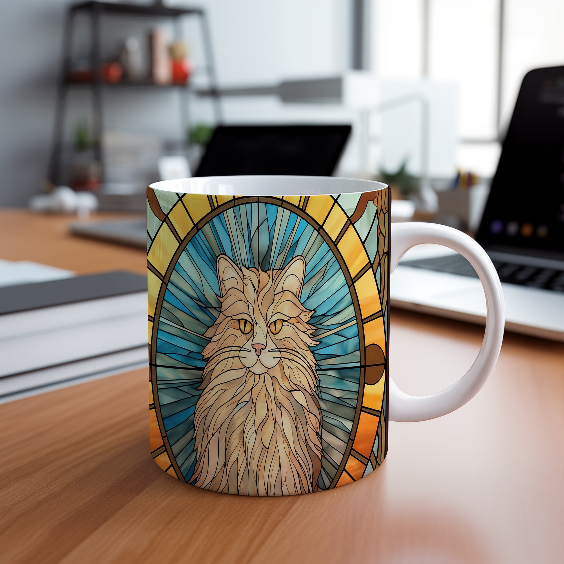 Hrnek s kočkou v barevném skleněném stylu je skvělým doplňkem pro milovníky těchto zvířat. Tento hrnek potěší každého, kdo ocení krásu a estetiku. Materiál: keramika. Objem: 330 ml. Vhodné do myčky i mikrovlnky. Používáním tohoto hrnku si užijete nejen skvělý design, ale i pohodlné pití vašeho oblíbeného nápoje.