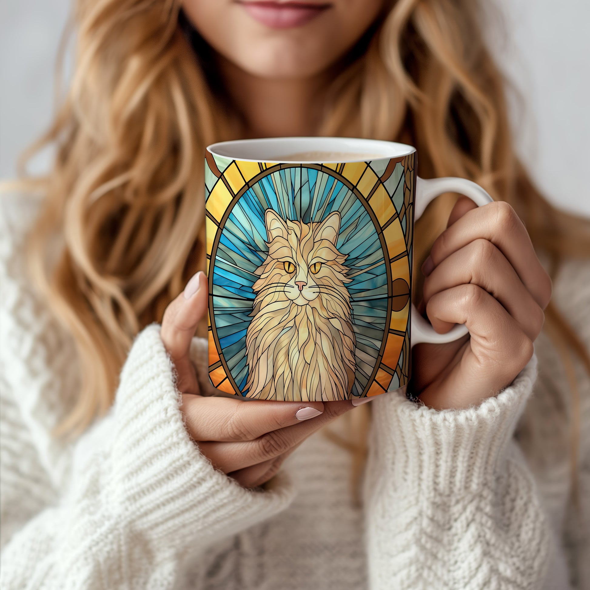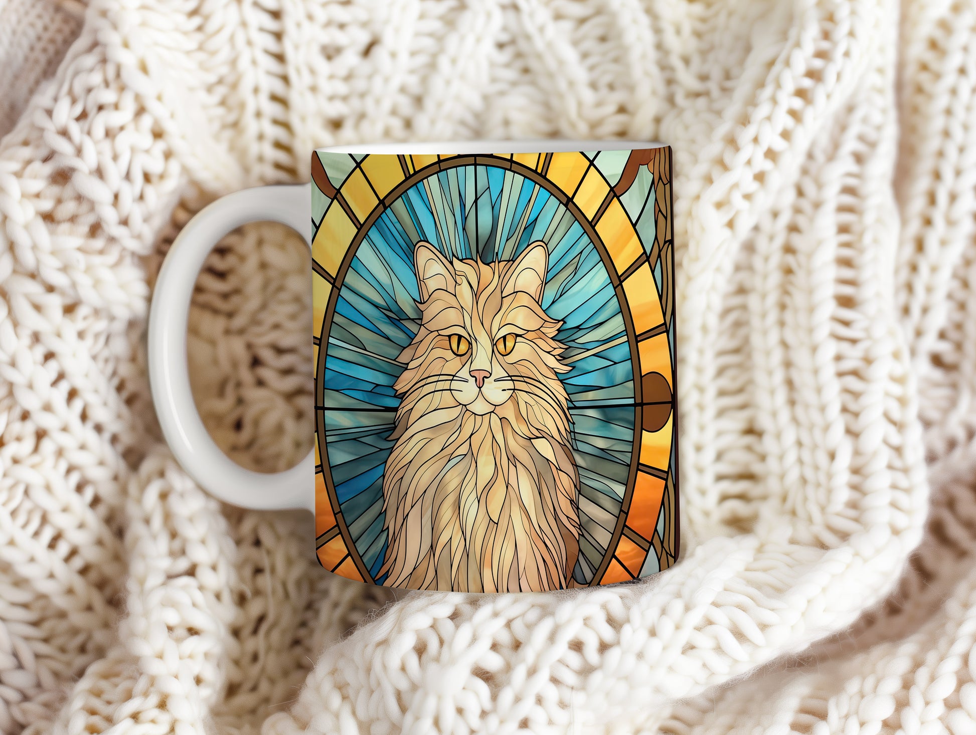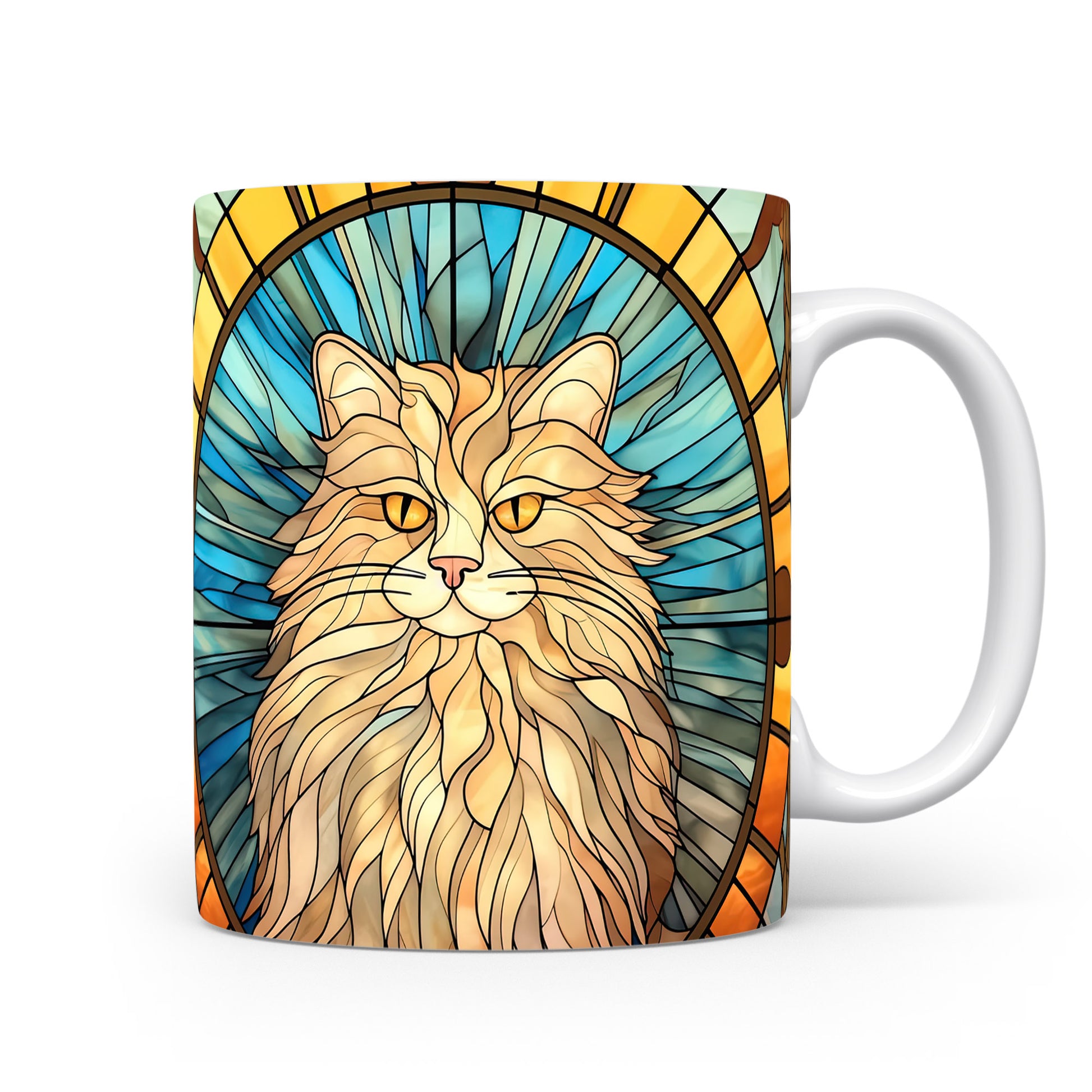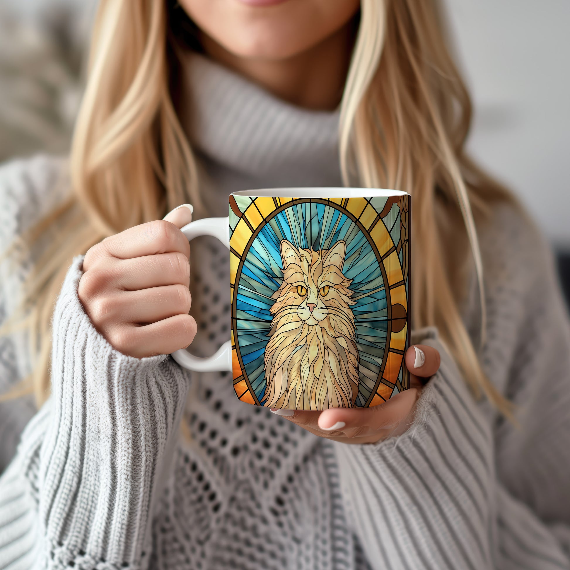Hrnek s kočkou v barevném skleněném stylu je skvělým doplňkem pro milovníky těchto zvířat. Tento hrnek potěší každého, kdo ocení krásu a estetiku. Materiál: keramika. Objem: 330 ml. Vhodné do myčky i mikrovlnky. Používáním tohoto hrnku si užijete nejen skvělý design, ale i pohodlné pití vašeho oblíbeného nápoje.