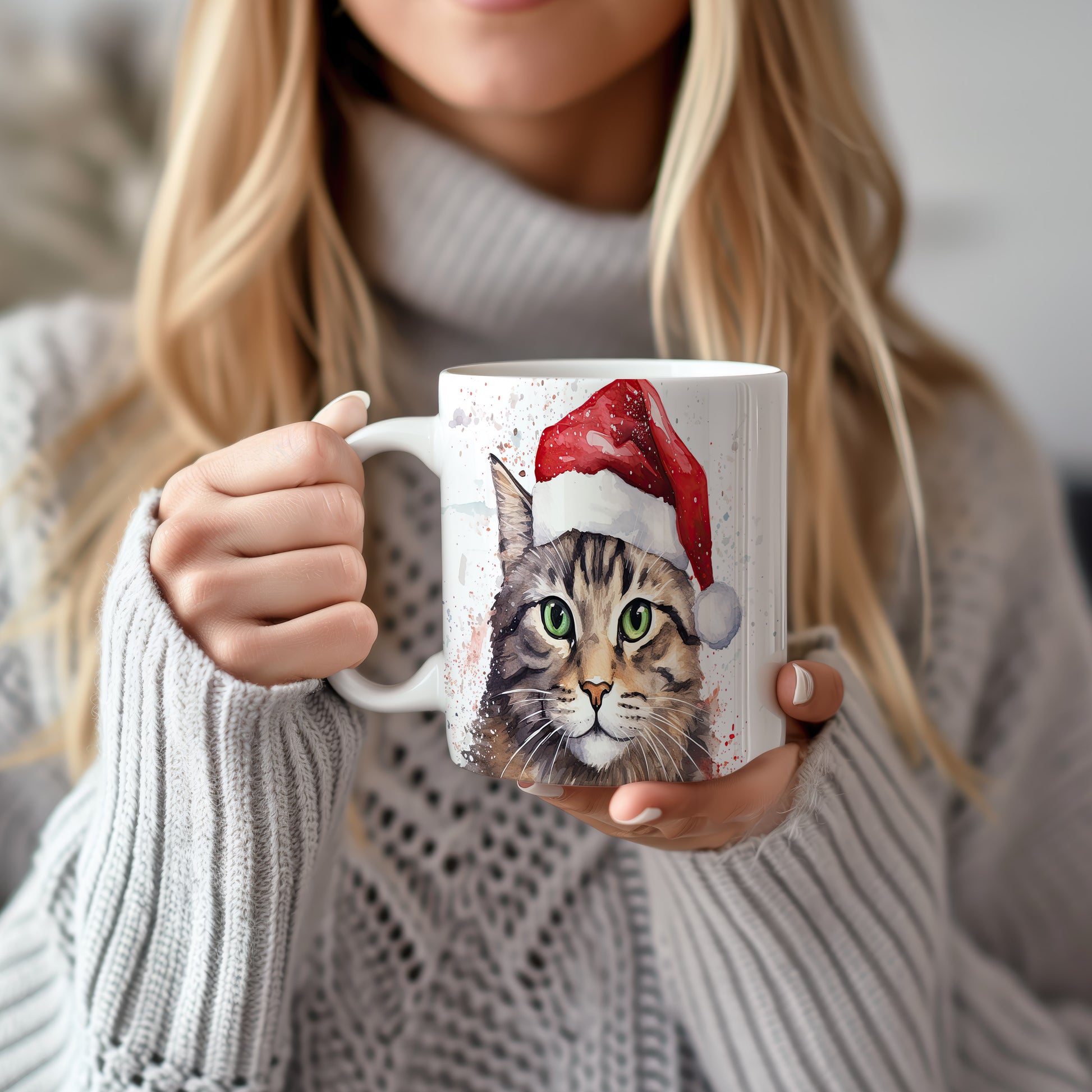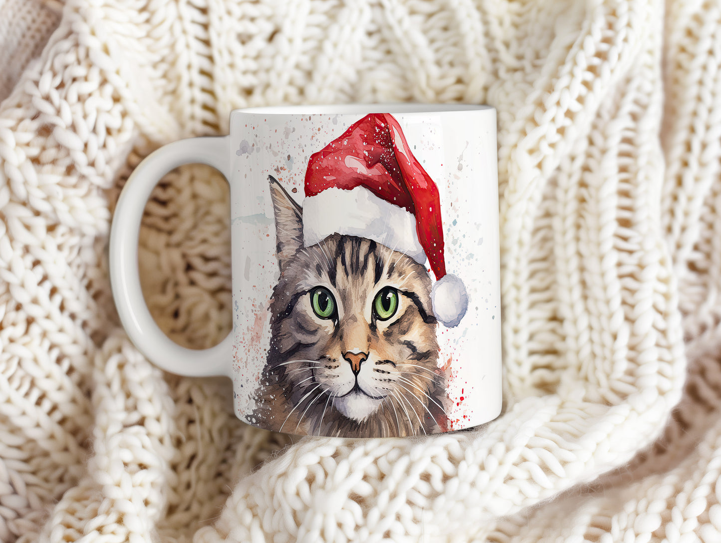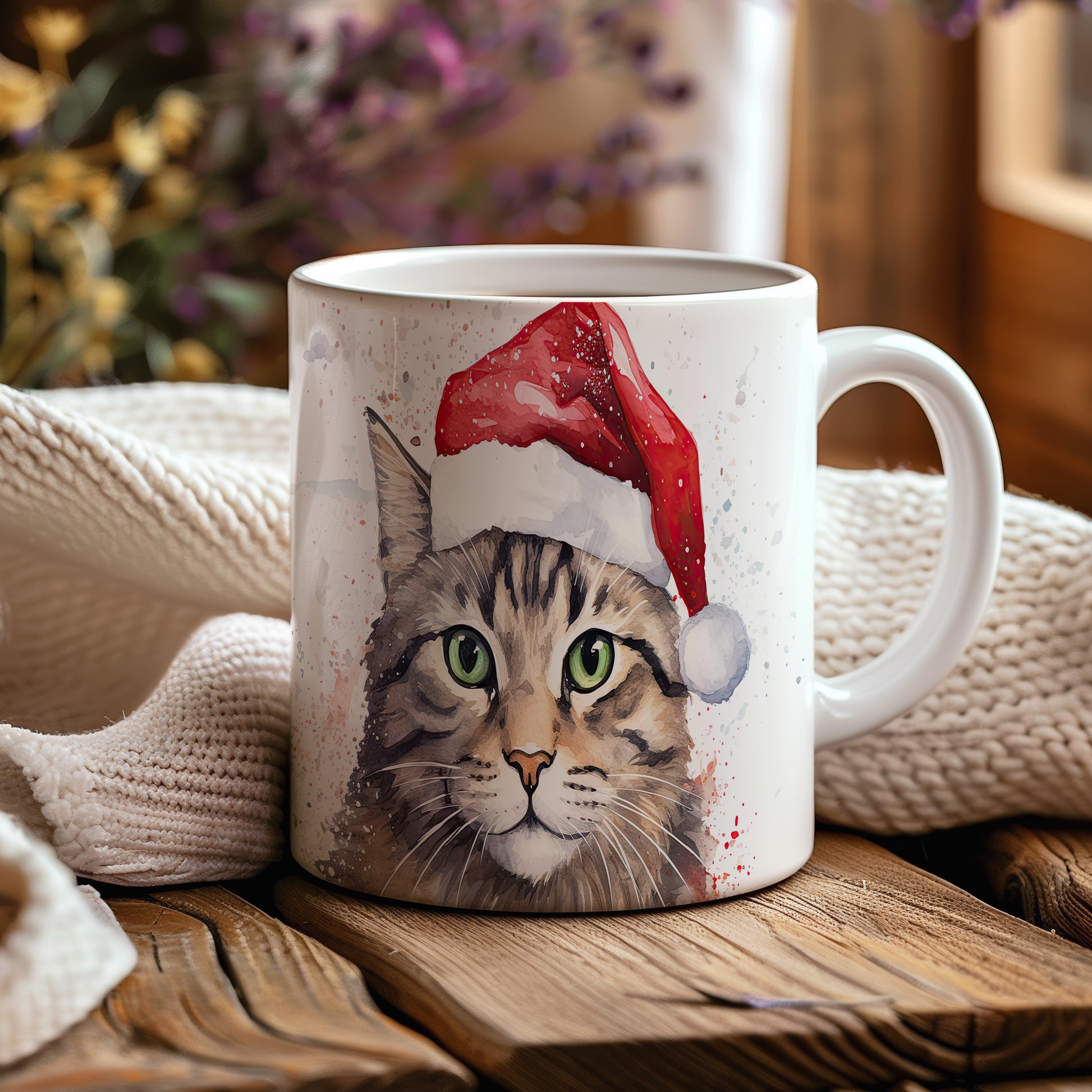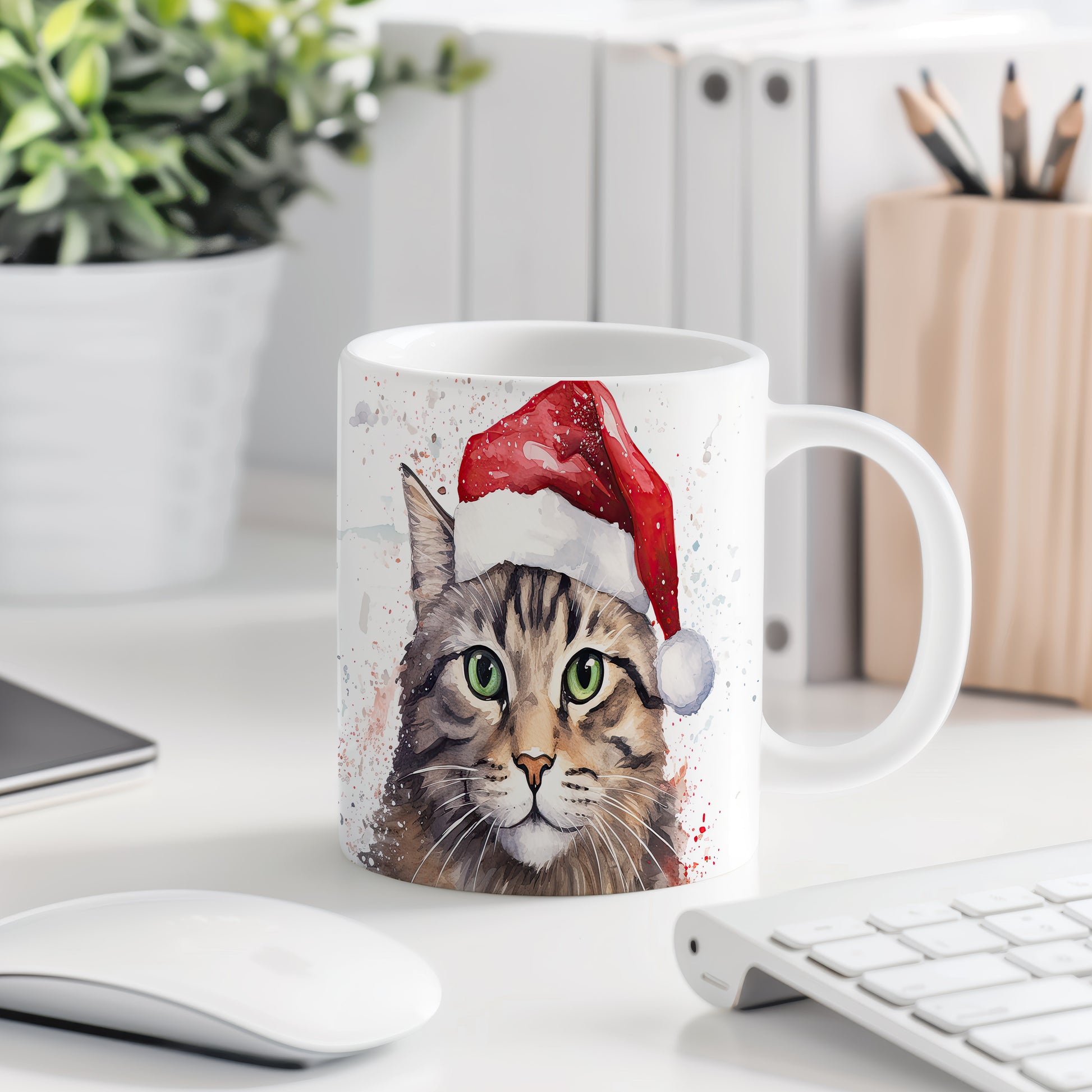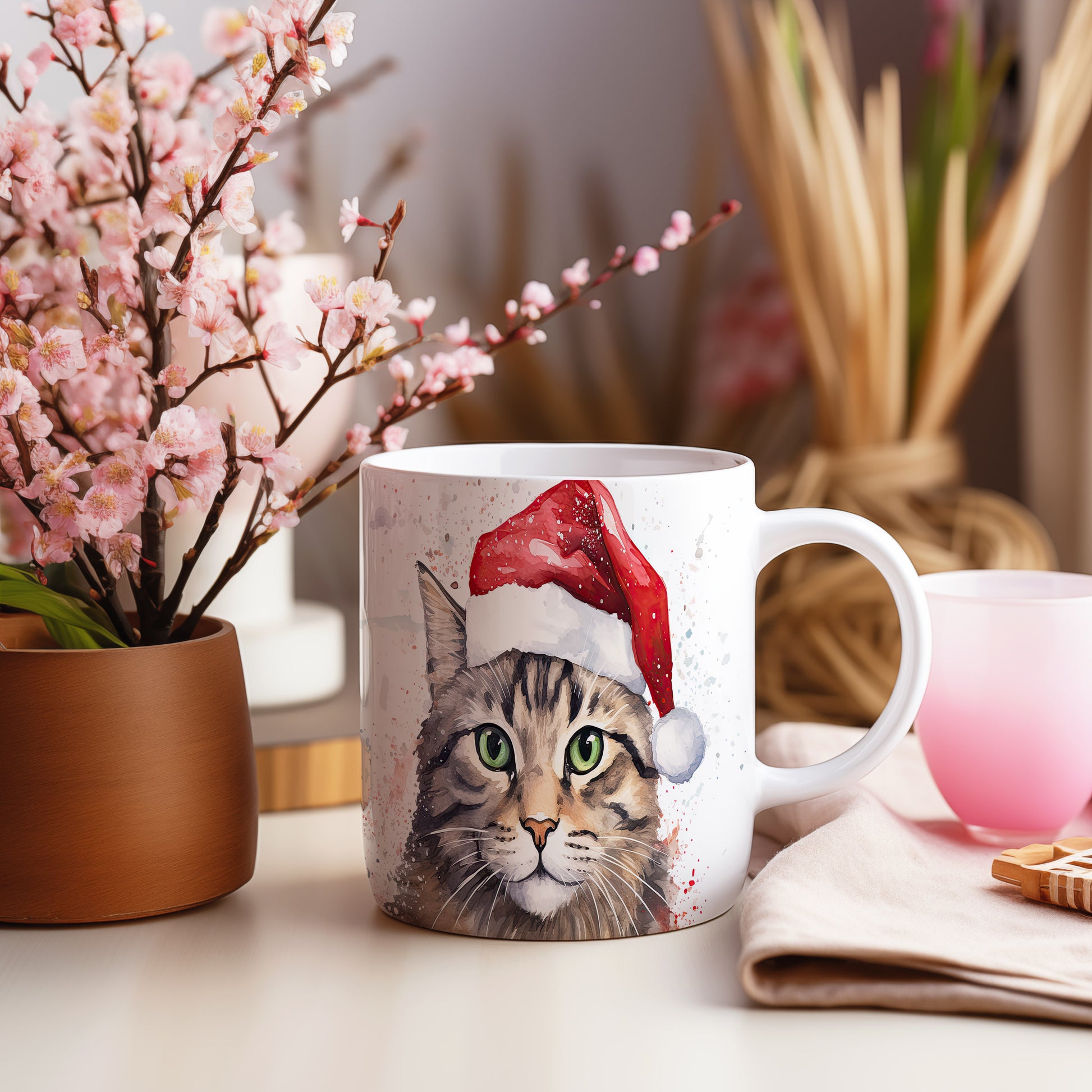 Tento hrnek zobrazuje roztomilou kočku s velkýma zelenýma očima a červenou vánoční čepicí. Je ideální pro milovníky koček a skvělým dárkem pro každého, kdo má rád vánoční atmosféru. Materiál: keramika. Objem: 330 ml. Vhodné do myčky i mikrovlnky. Používáním tohoto hrnku si můžete užít příjemné chvíle s oblíbeným nápojem.