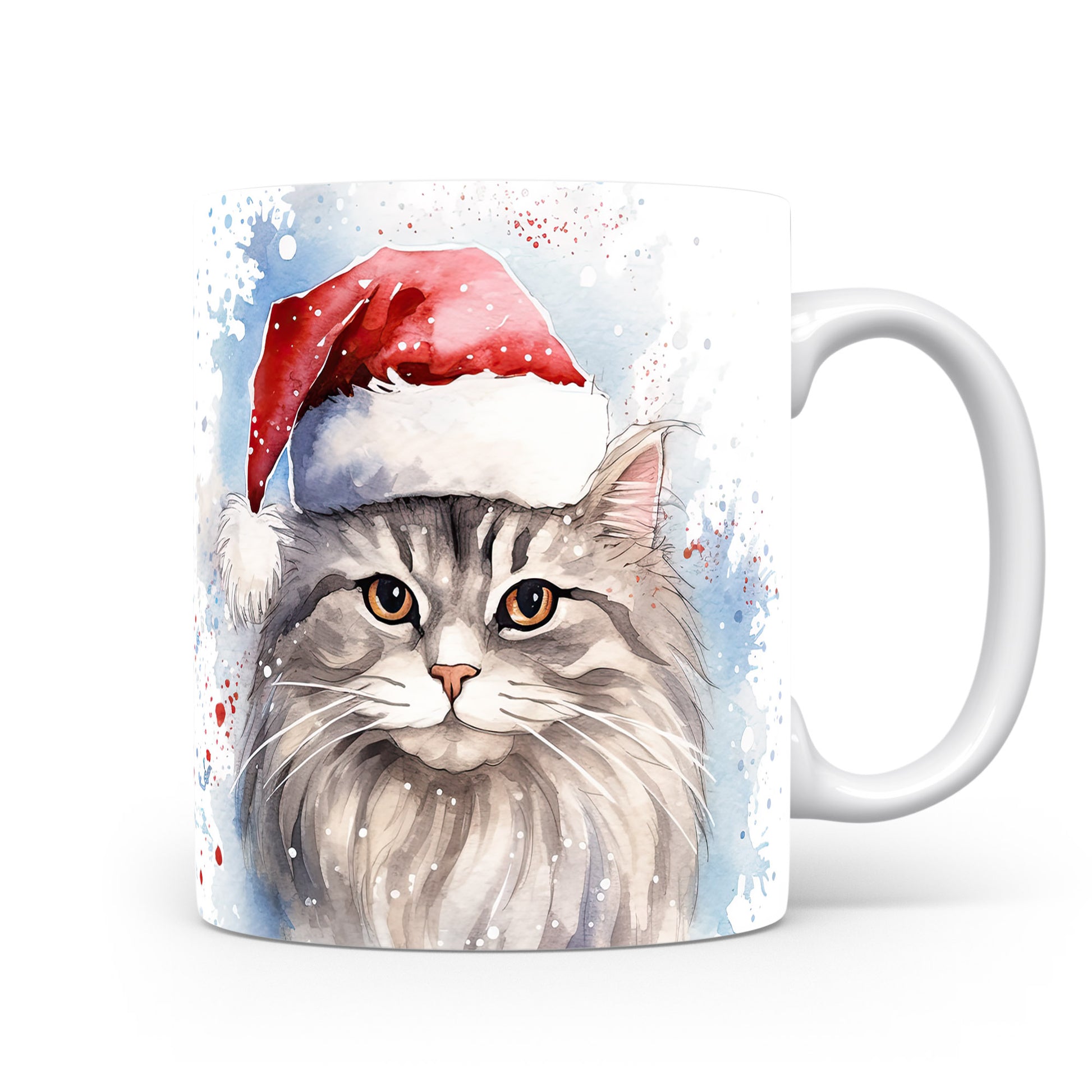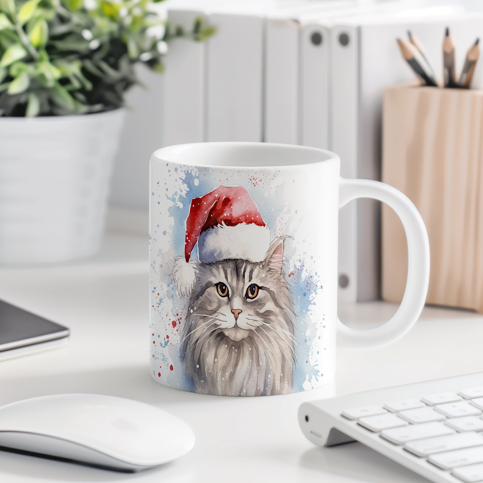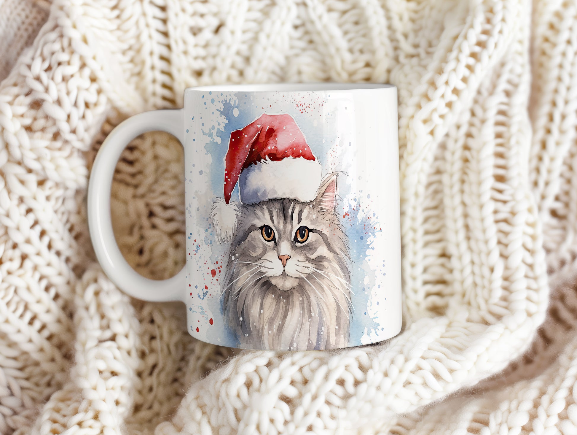 Tento stylový hrnek zobrazuje roztomilou kočku v červené vánoční čepici. Je ideální pro milovníky koček a skvělým dárkem pro přátele na zimní období. Materiál: keramika. Objem: 330 ml. Vhodné do myčky i mikrovlnky. Díky svému designu přináší radost při každém doušku vašeho oblíbeného nápoje.