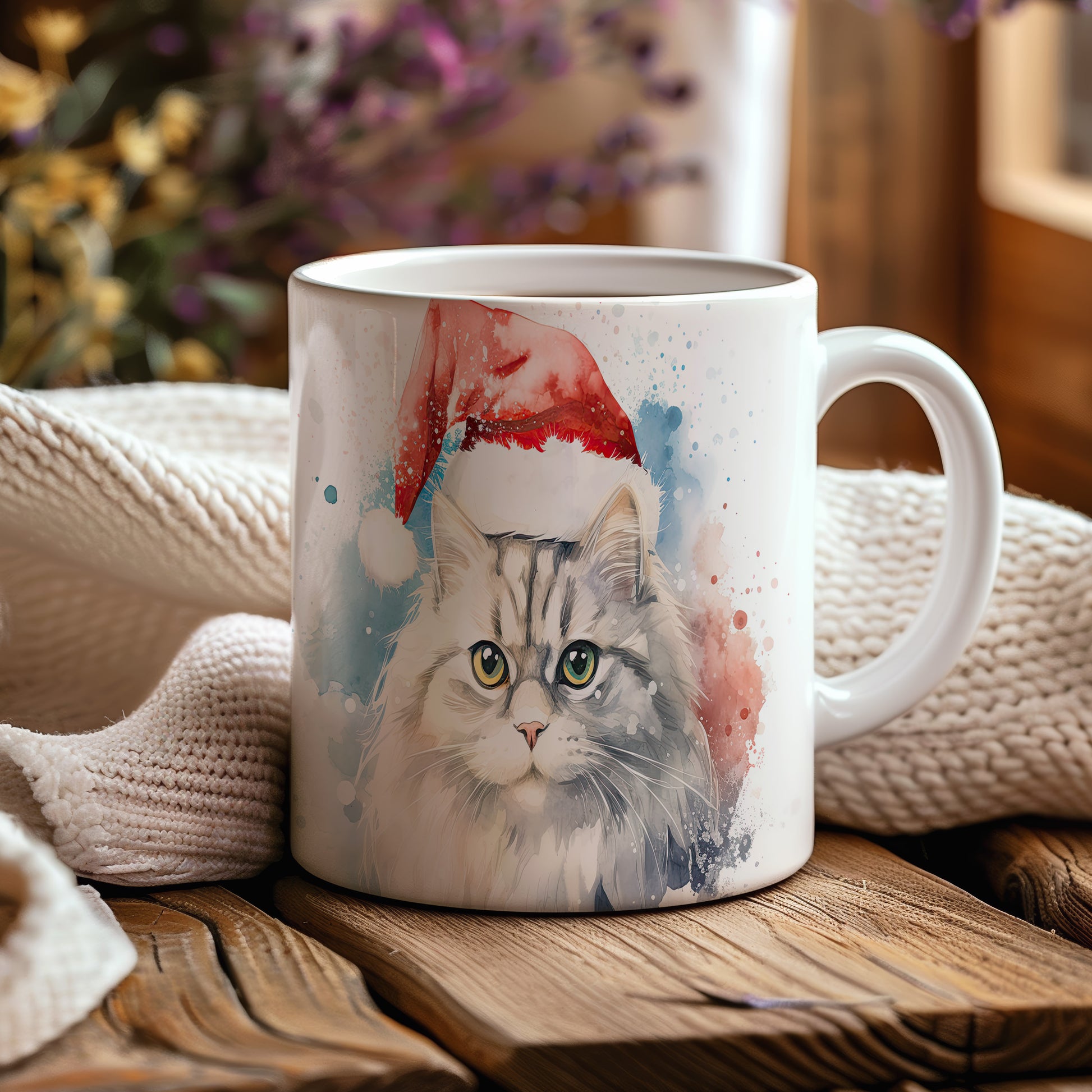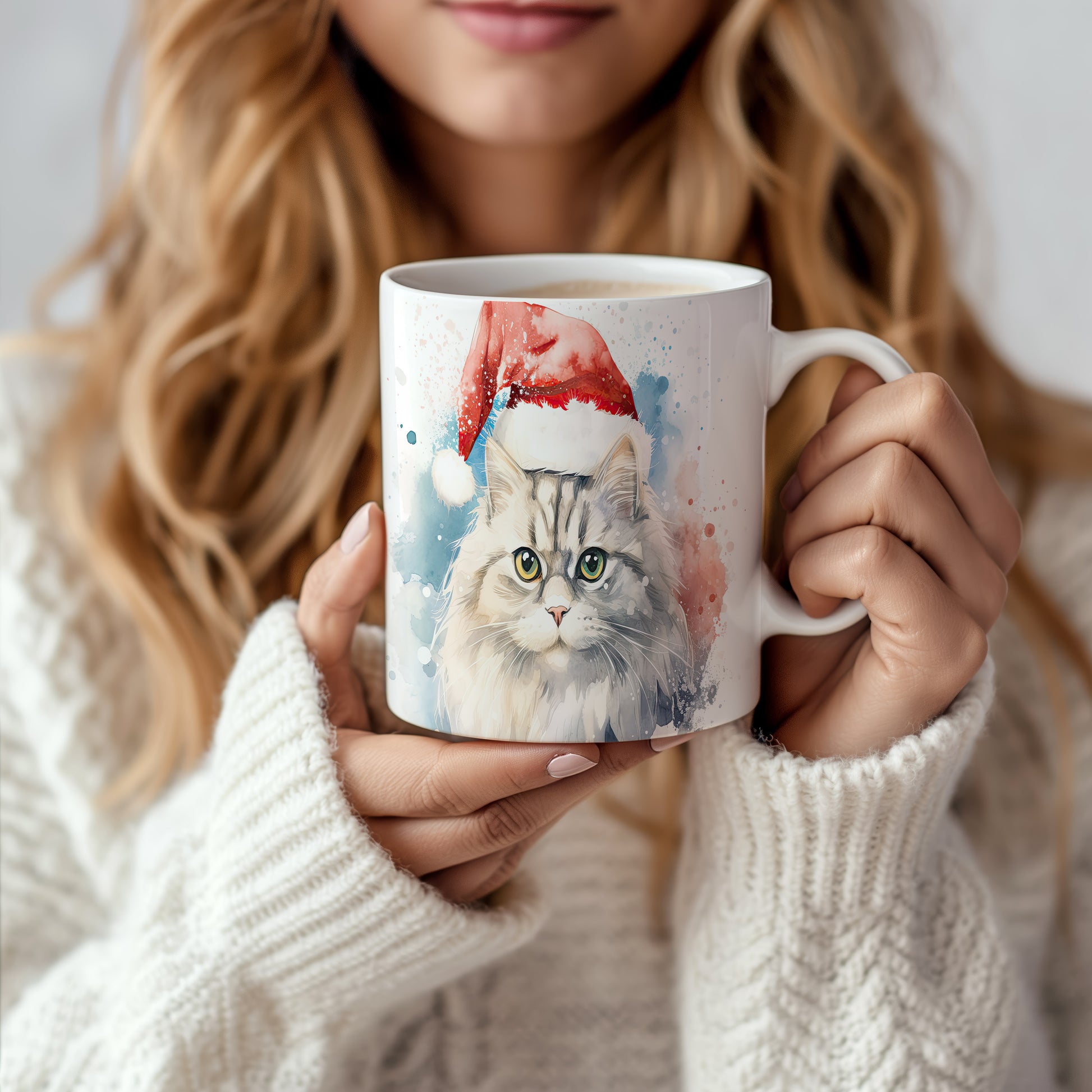 Tento hrnek zobrazuje roztomilou kočku s šedým kožíškem a vánoční čepicí. Je ideální pro milovníky koček a skvělým dárkem pro všechny, kteří mají rádi vánoční atmosféru. Materiál: keramika. Objem: 330 ml. Vhodné do myčky i mikrovlnky. Používání tohoto hrnku přináší radost a útulnost do každého dne.