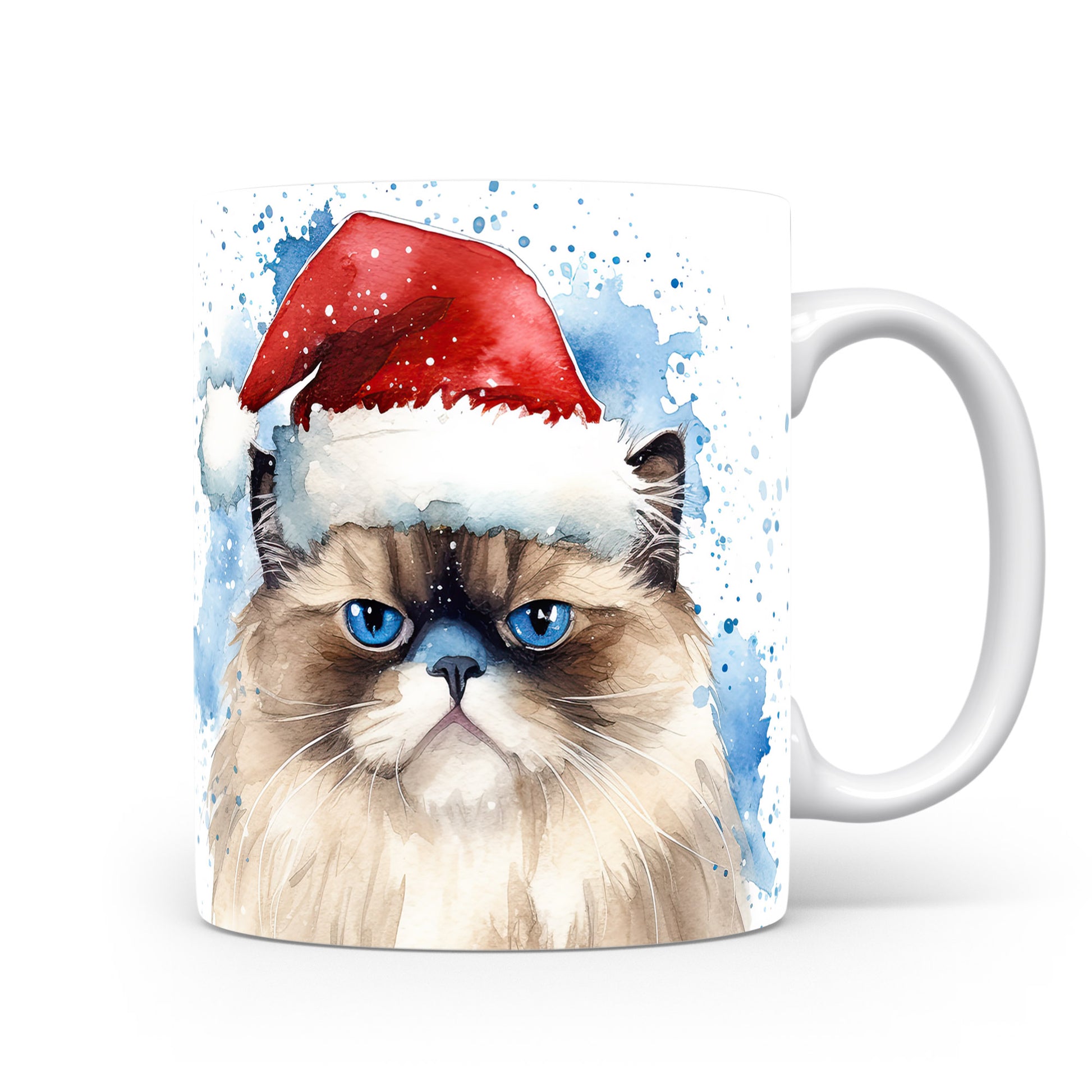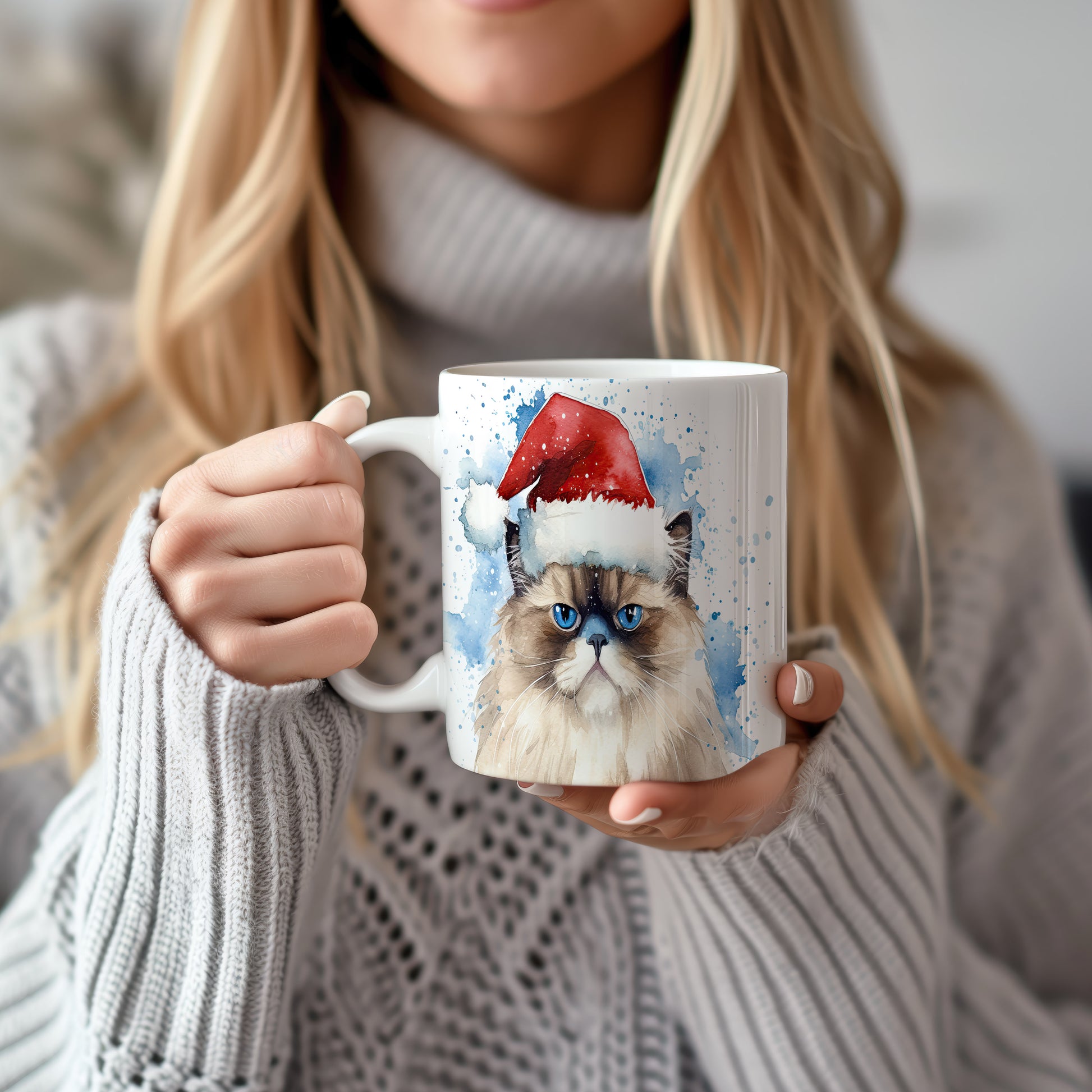 Hrnek s kočkou v čepici Santa – malířským vzhledem