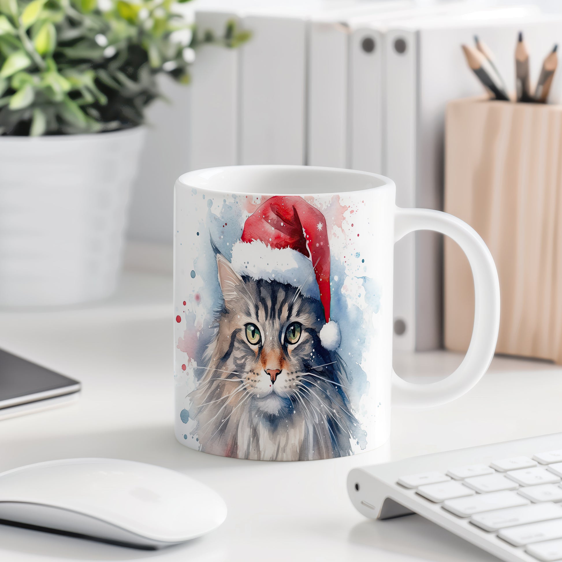 Hrnek s motivem kočky v čepici Santa přináší vánoční atmosféru a radost. Je ideální pro milovníky koček a skvělý tip na dárek pro přátele či rodinu. Materiál: keramika. Objem: 330 ml. Vhodné do myčky i mikrovlnky. Tento hrnek vám zajistí, že vaše oblíbené nápoje budou vždy v bezpečí a stylově servírované.