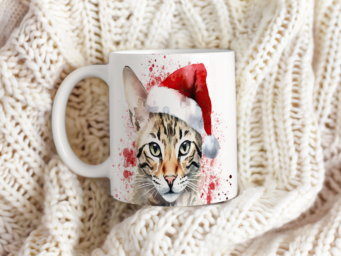 Hrnek s kočkou v čepici Santa – stylovým zpracováním
