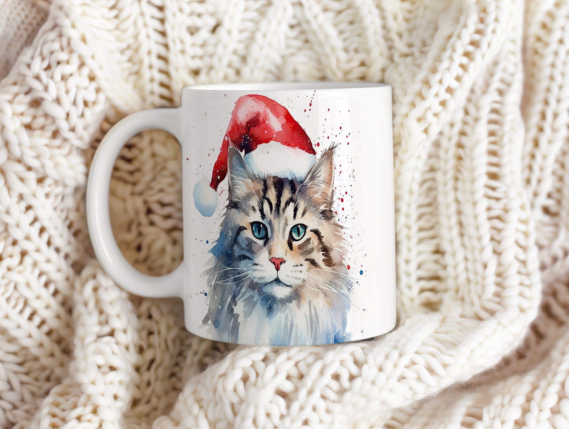 Hrnek s kočkou v čepici Santa – výrazným designem