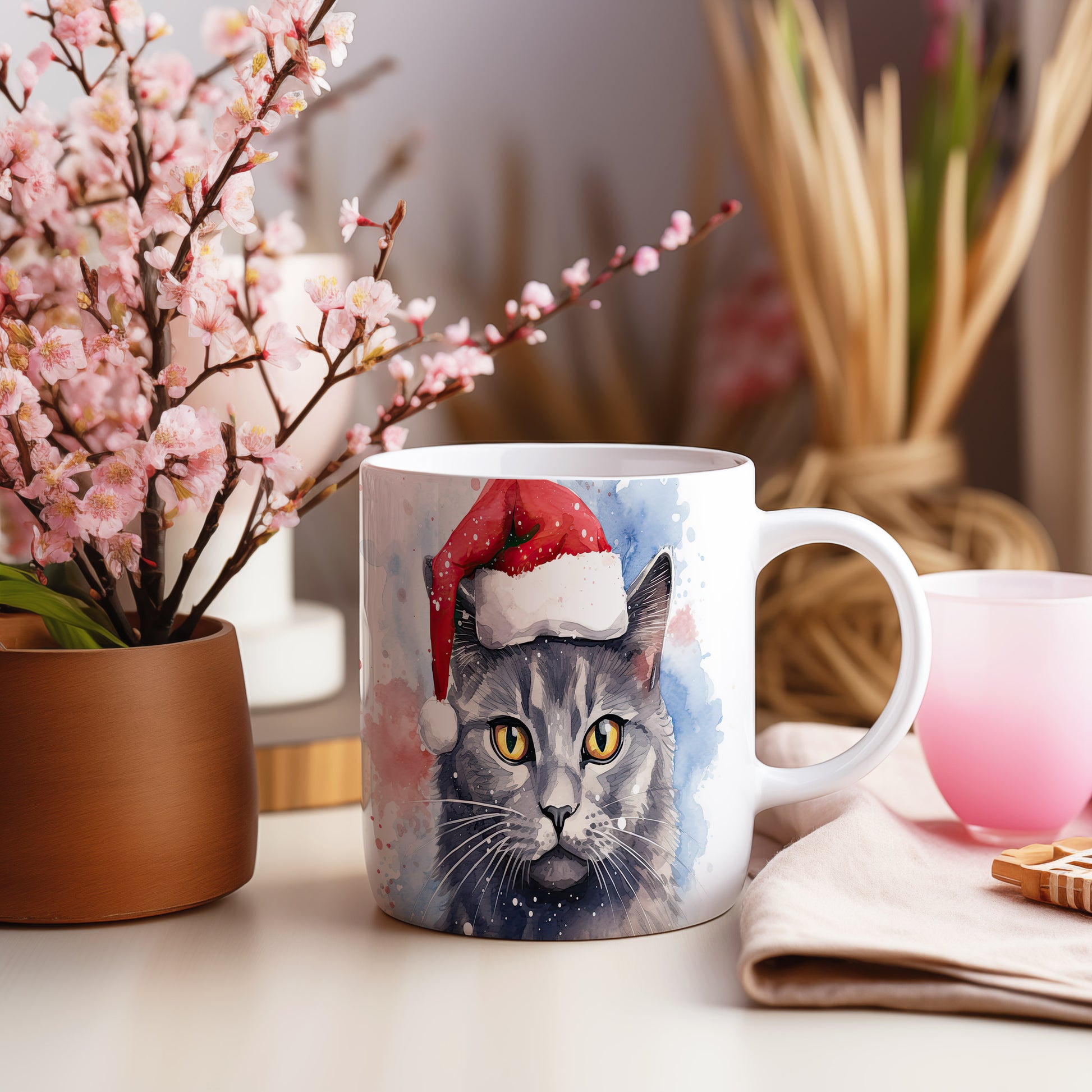 Hrnek s kočkou v čepici – stylovým zpracováním