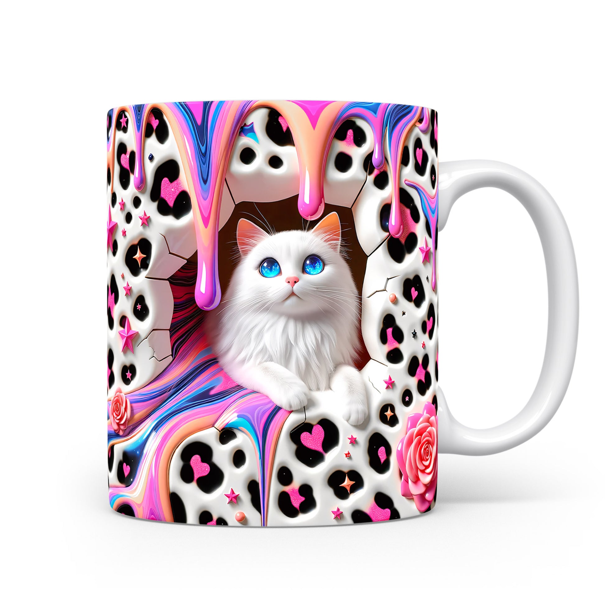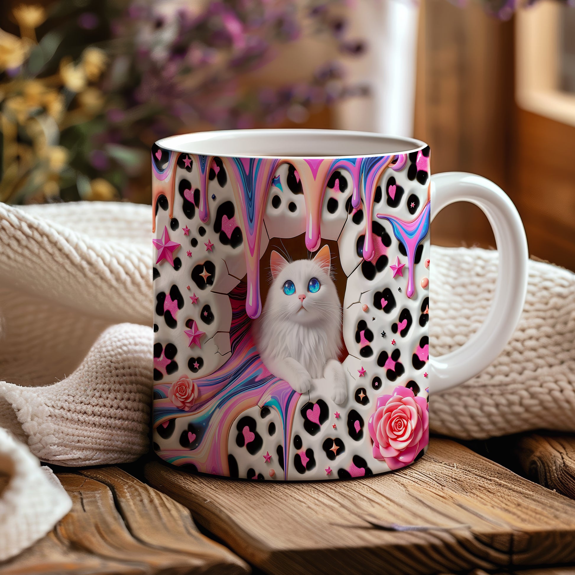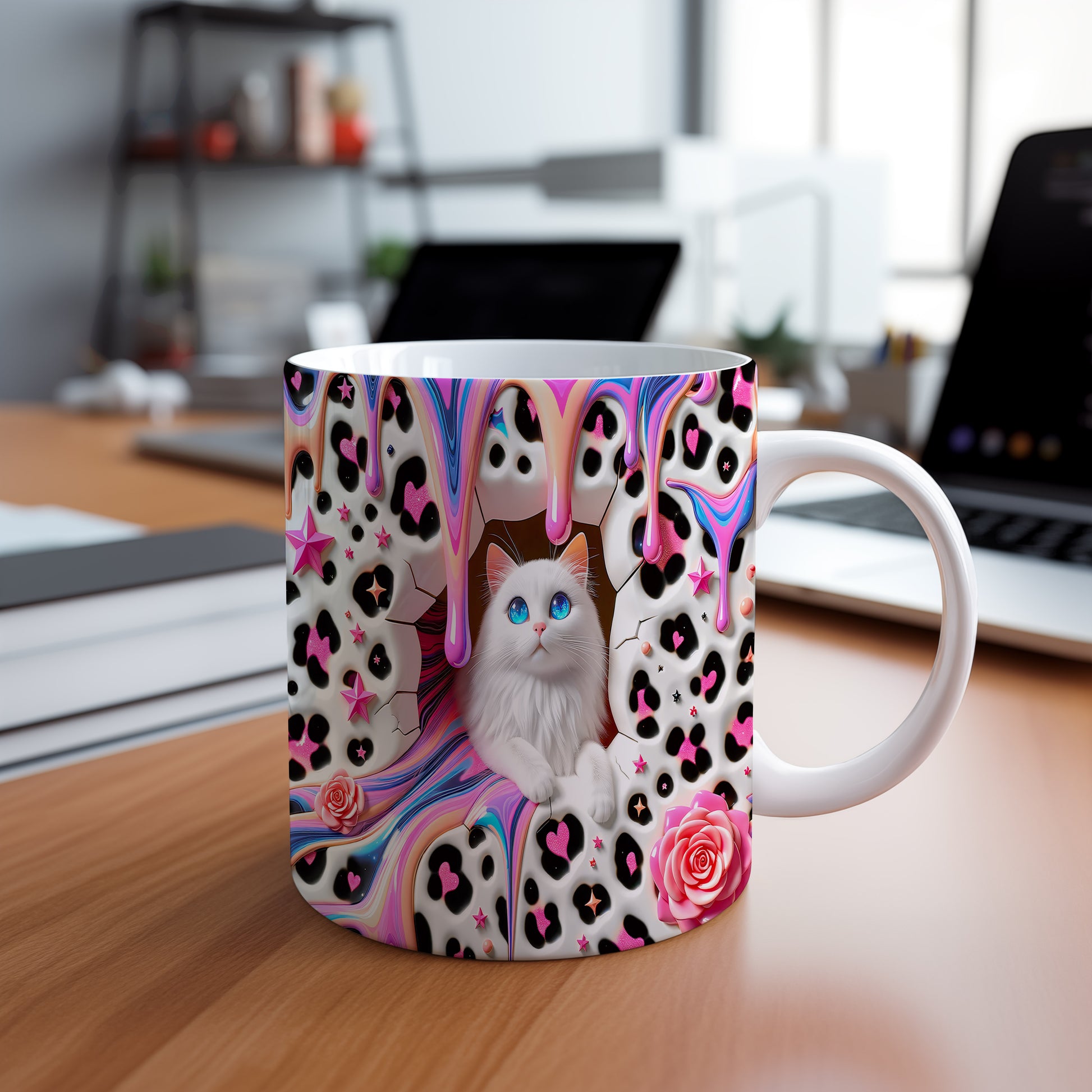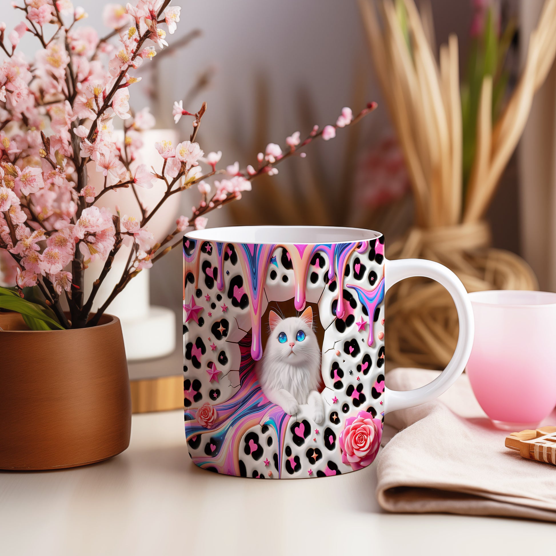 Hrnek s roztomilou kočkou v donutu je ideálním kouskem pro milovníky zvířat a sladkostí. Tento hrnek potěší každého, kdo hledá originální dárek pro přátele nebo rodinu. Materiál: keramika. Objem: 330 ml. Vhodné do myčky i mikrovlnky. Užijte si kávu nebo čaj s tímto veselým motivem, který vám zlepší náladu.