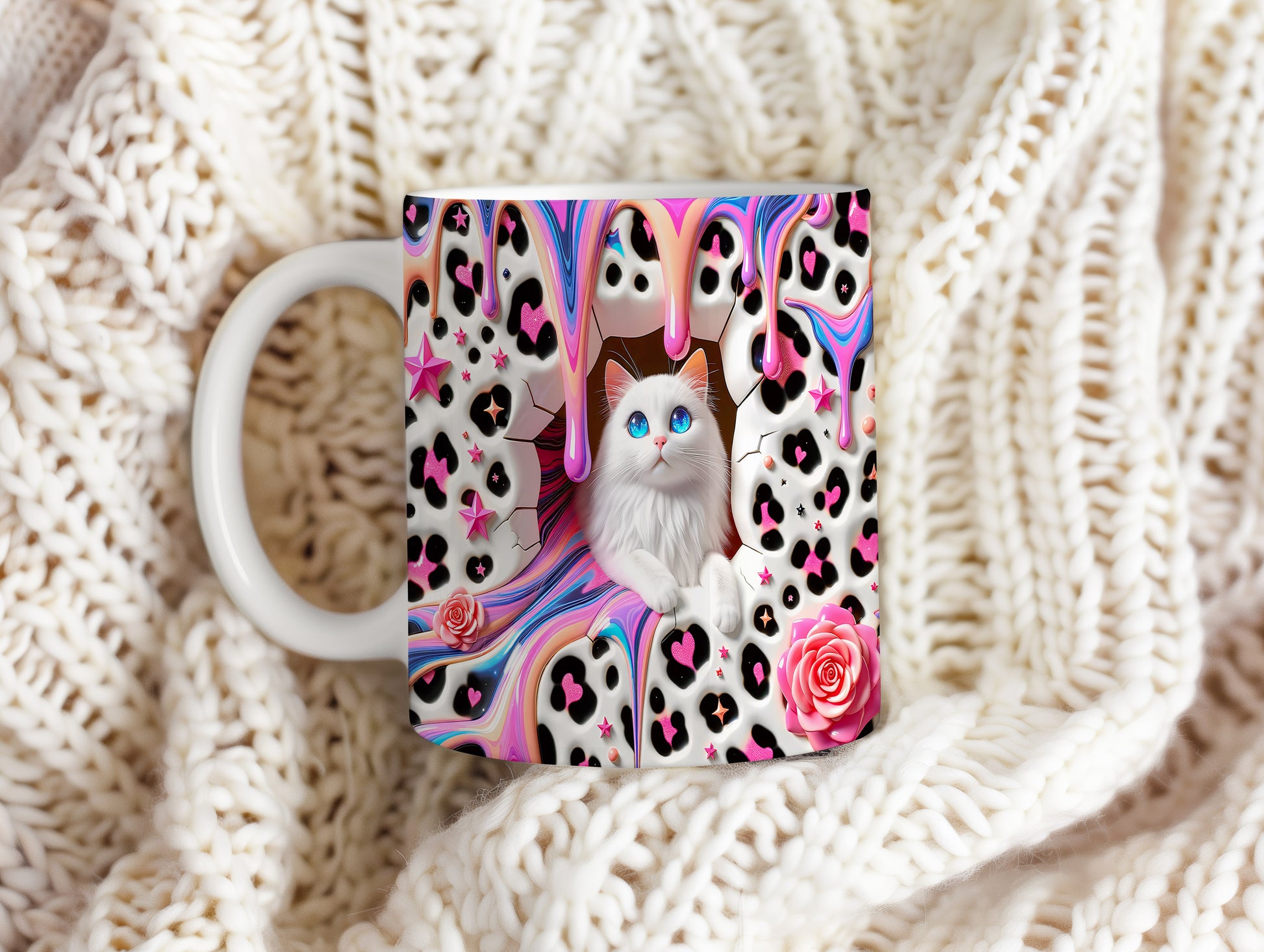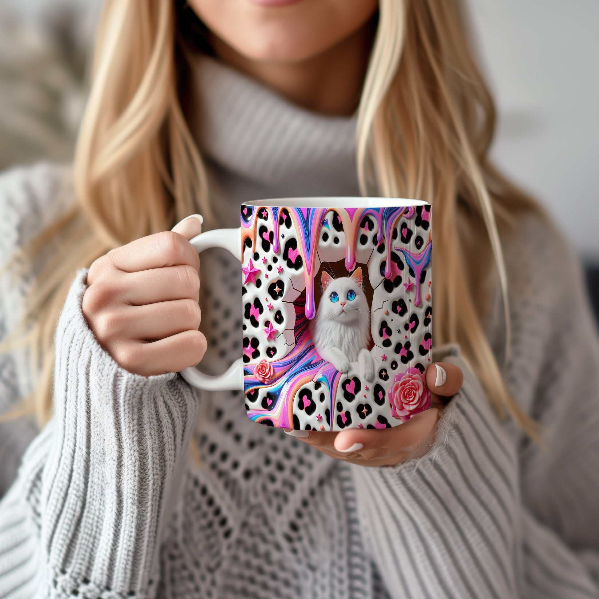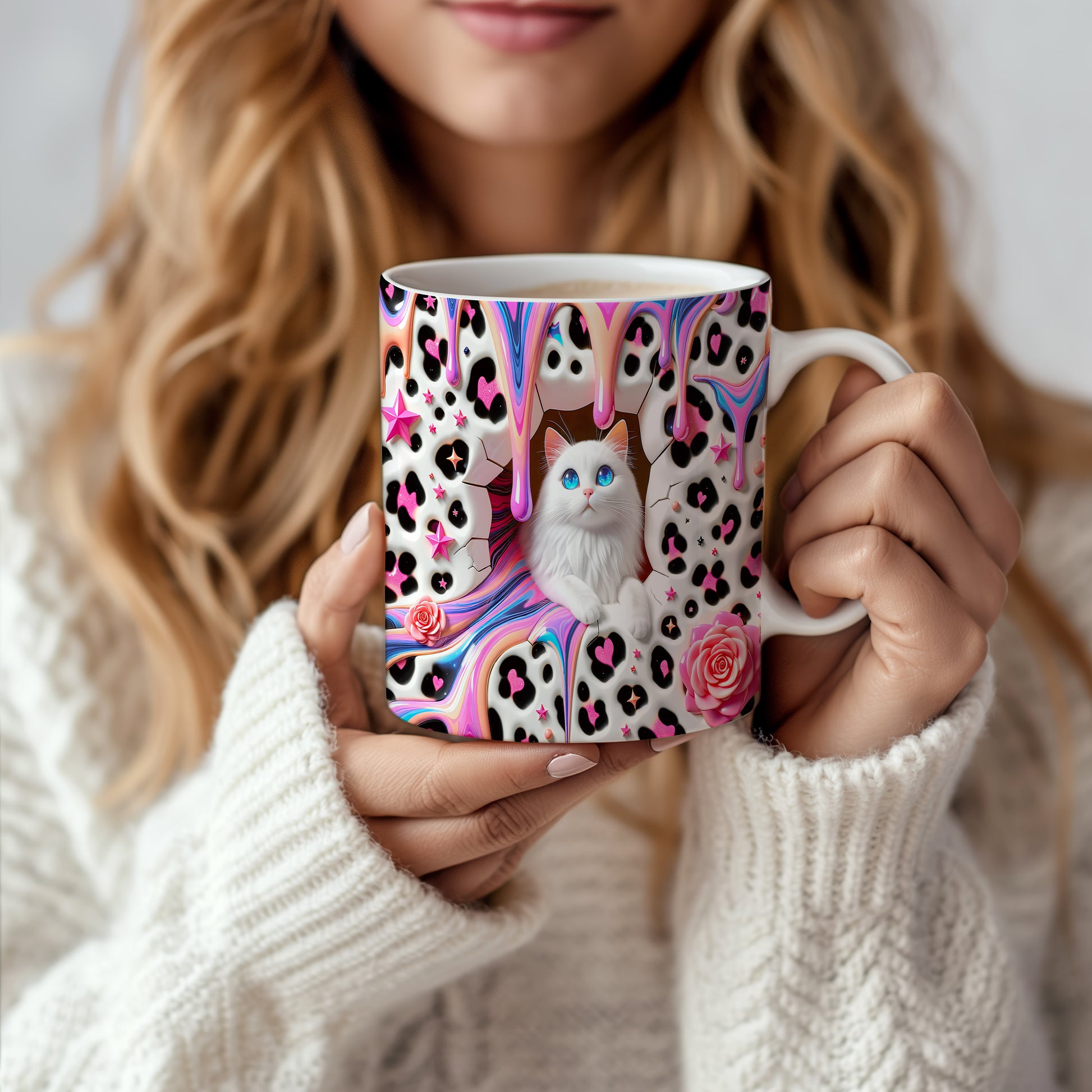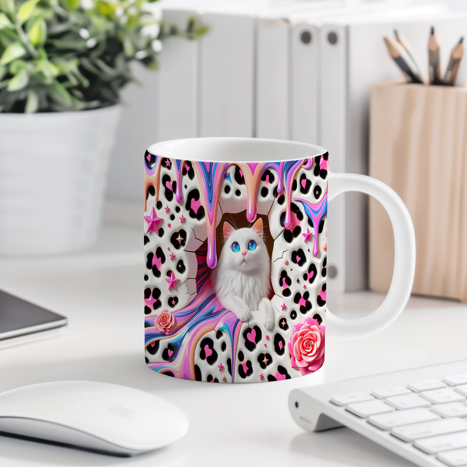 Hrnek s roztomilou kočkou v donutu je ideálním kouskem pro milovníky zvířat a sladkostí. Tento hrnek potěší každého, kdo hledá originální dárek pro přátele nebo rodinu. Materiál: keramika. Objem: 330 ml. Vhodné do myčky i mikrovlnky. Užijte si kávu nebo čaj s tímto veselým motivem, který vám zlepší náladu.
