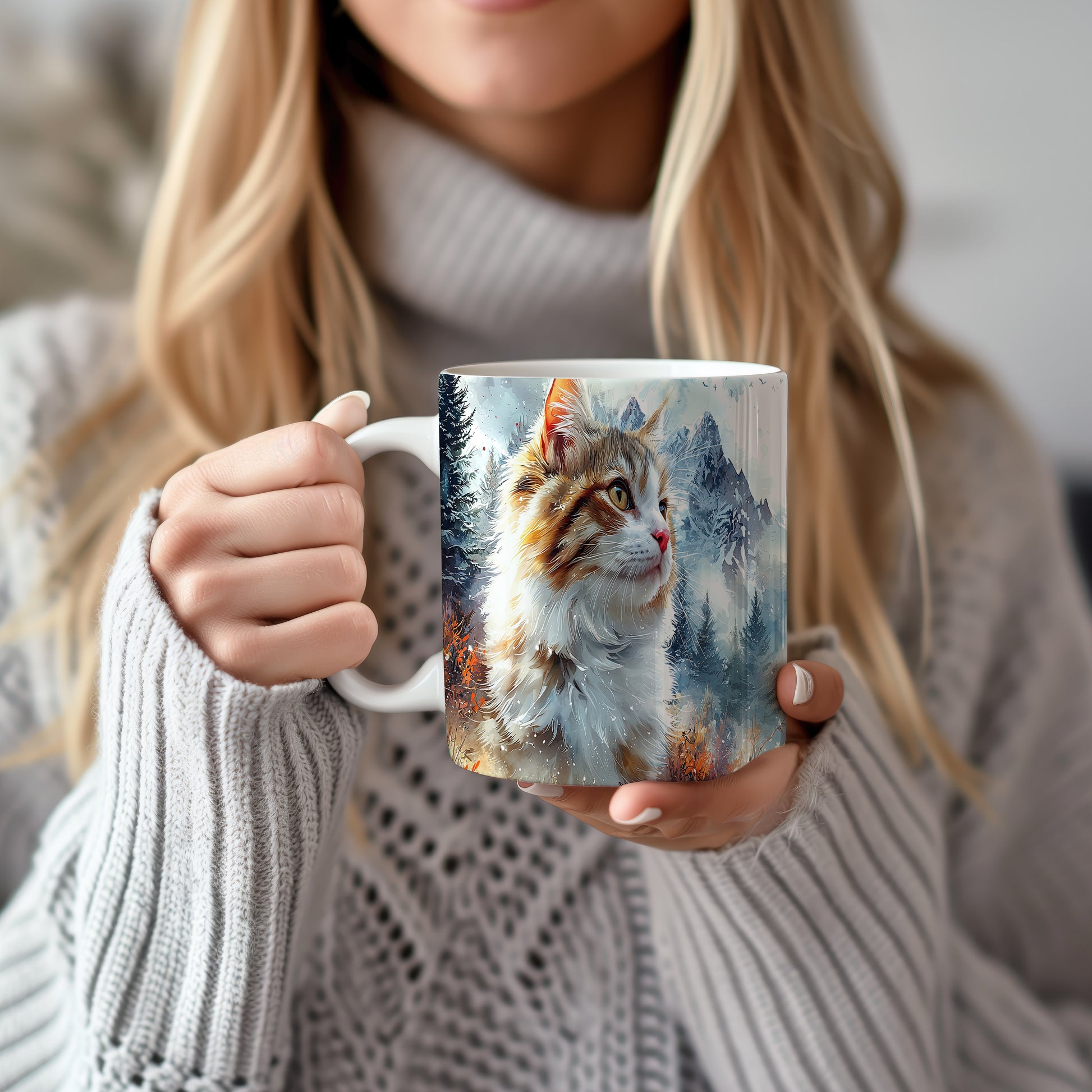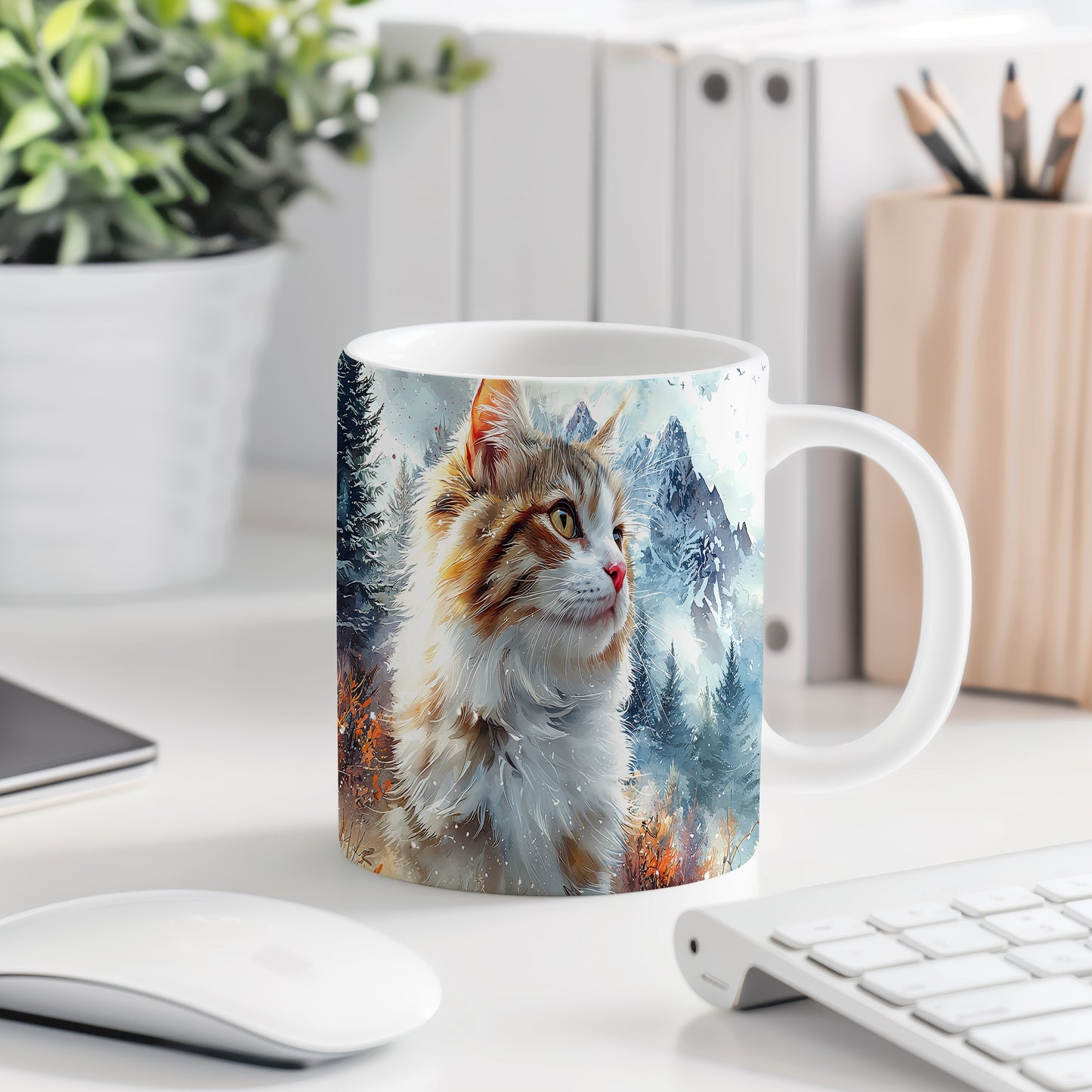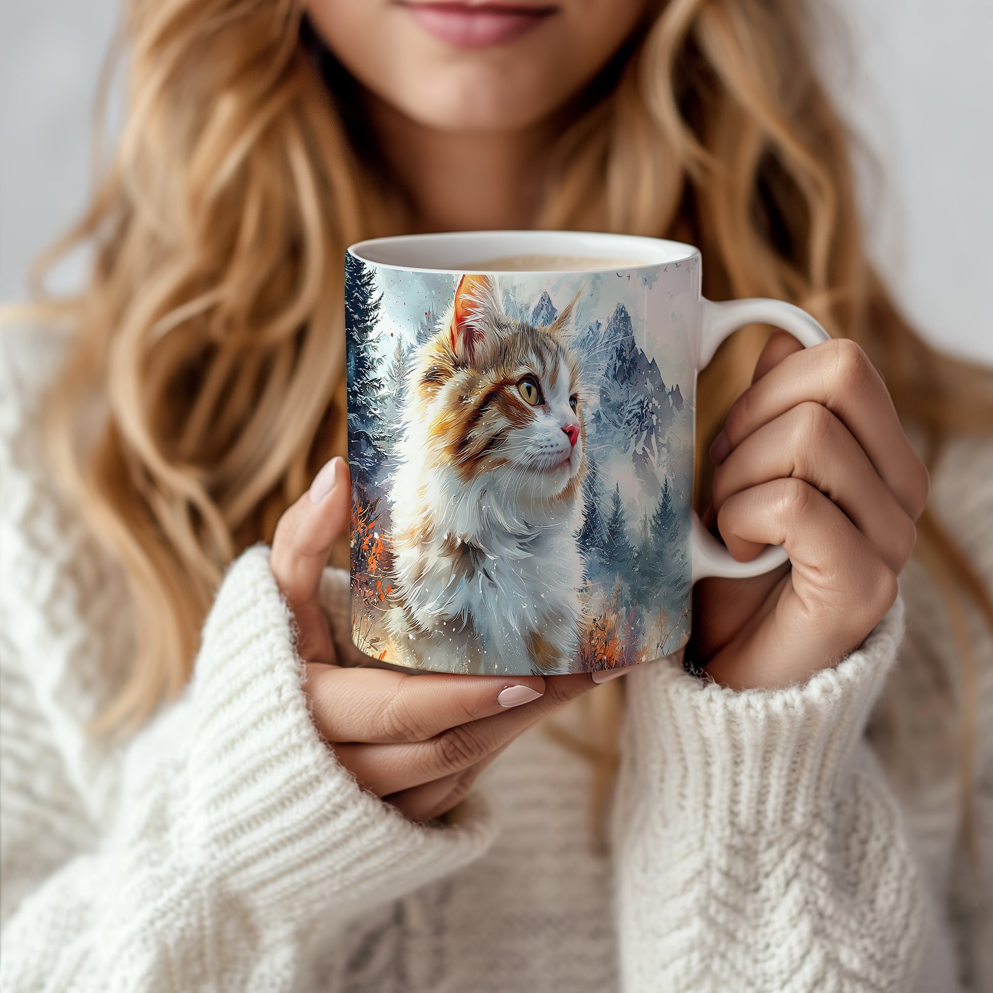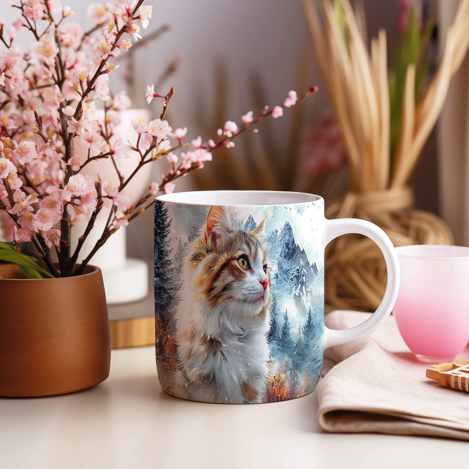 Hrnek s motivem kočky v horské krajině je ideální pro milovníky koček a přírody. Tento stylový kousek potěší každého, kdo ocení krásu zvířat a přírody, a skvěle se hodí jako dárek. Materiál: keramika. Objem: 330 ml. Vhodné do myčky i mikrovlnky. Užijte si každé sousto s tímto jedinečným hrnkem.