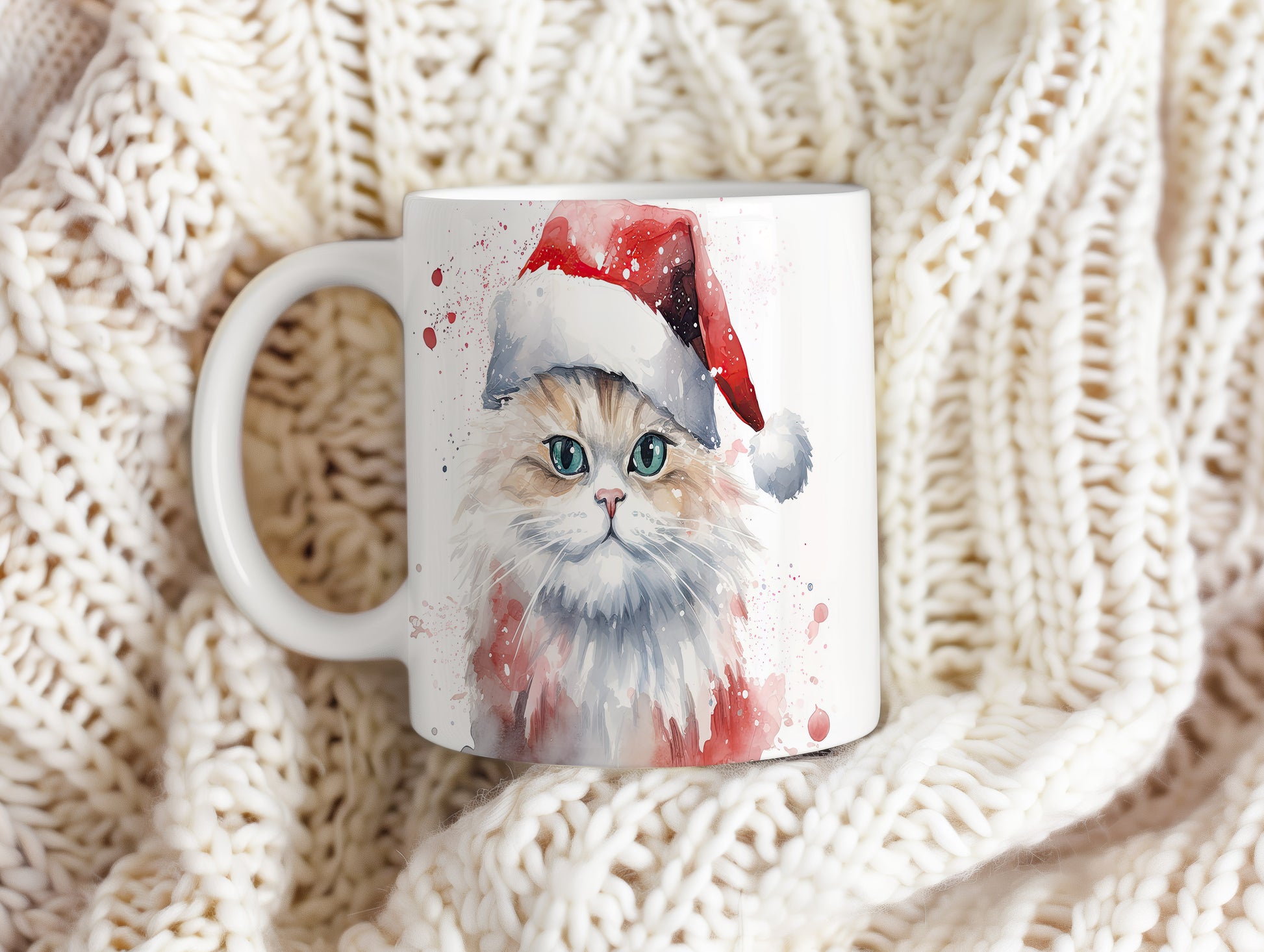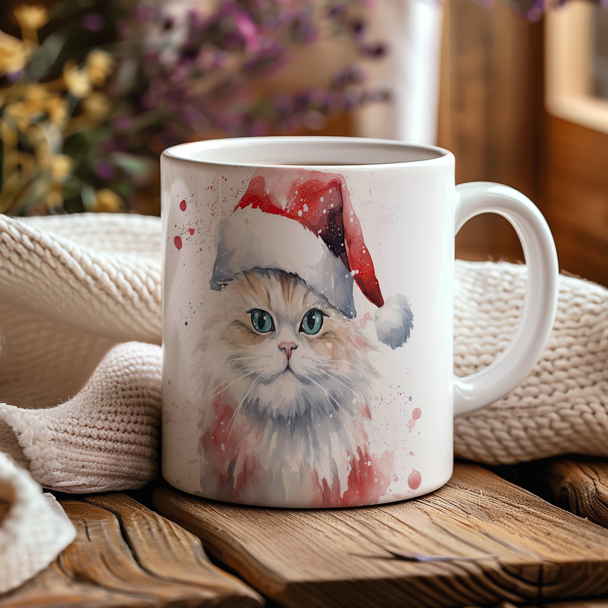 Stylový hrnek s motivem kočky v červeném Santa klobouku. Tento elegantní kousek je ideální pro milovníky koček a skvělý tip na dárek pro přátele nebo rodinu. Materiál: keramika. Objem: 330 ml. Vhodné do myčky i mikrovlnky. Užívejte si radostné chvíle při každém doušku.