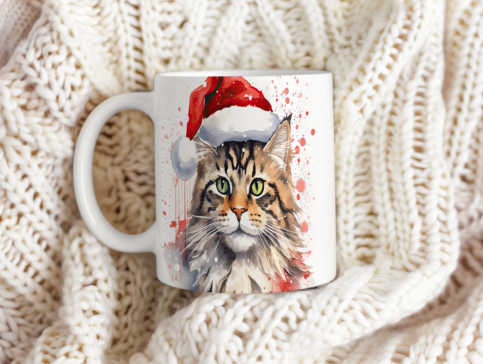 Hrnek s kočkou v Santa klobouku – malířským vzhledem