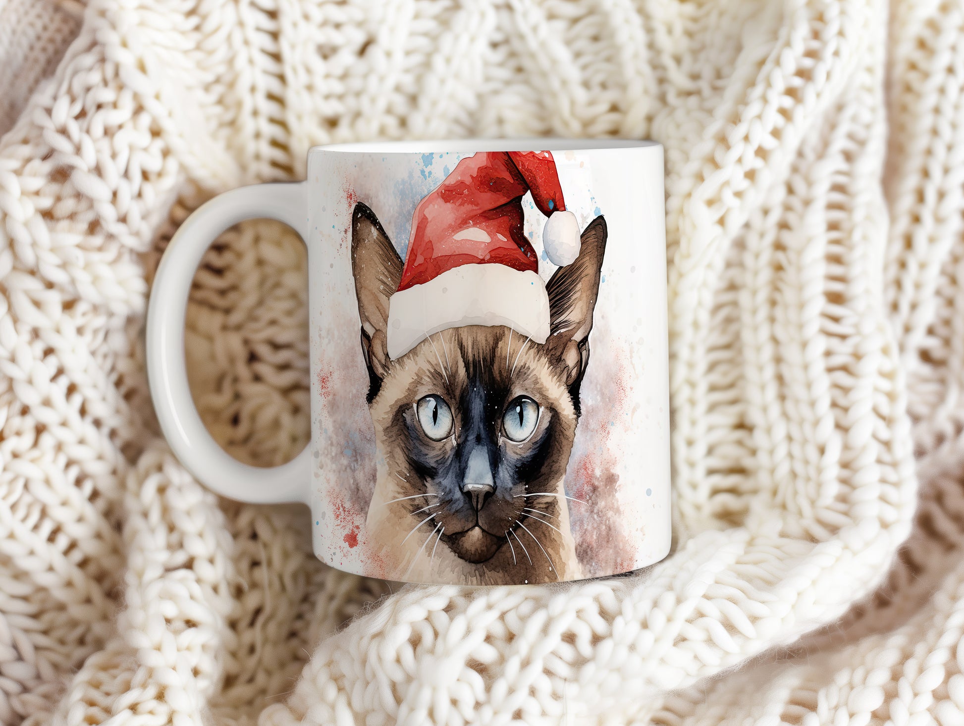 Hrnek s kočkou v Santa klobouku – modrýma očima