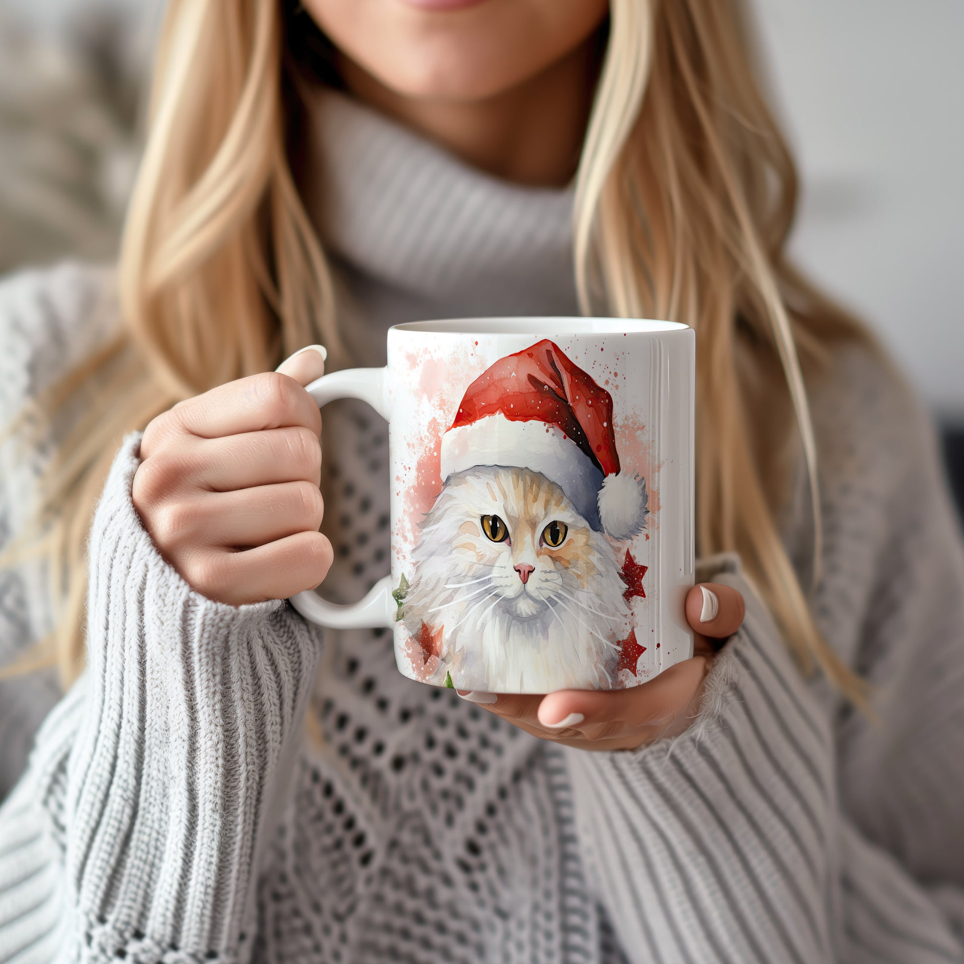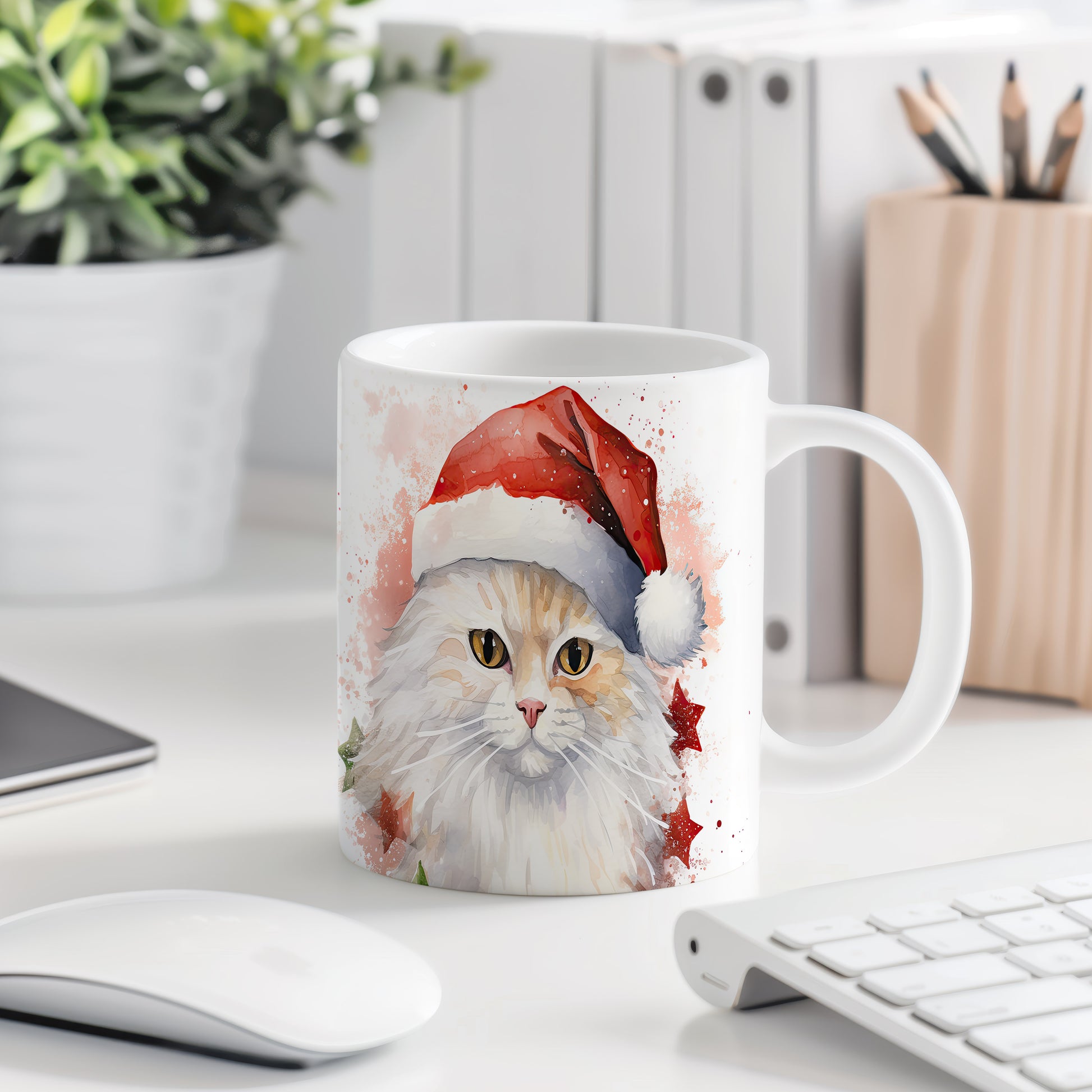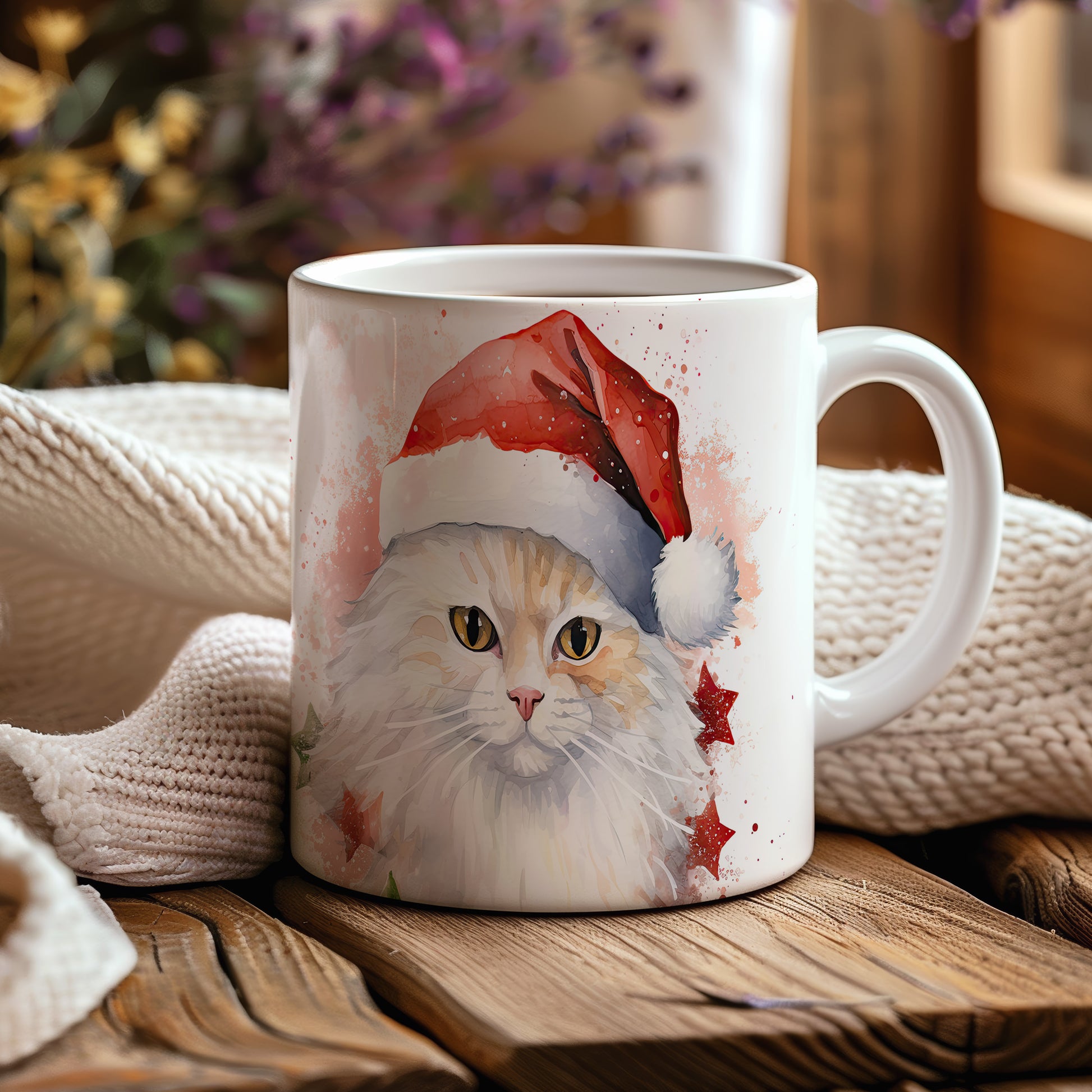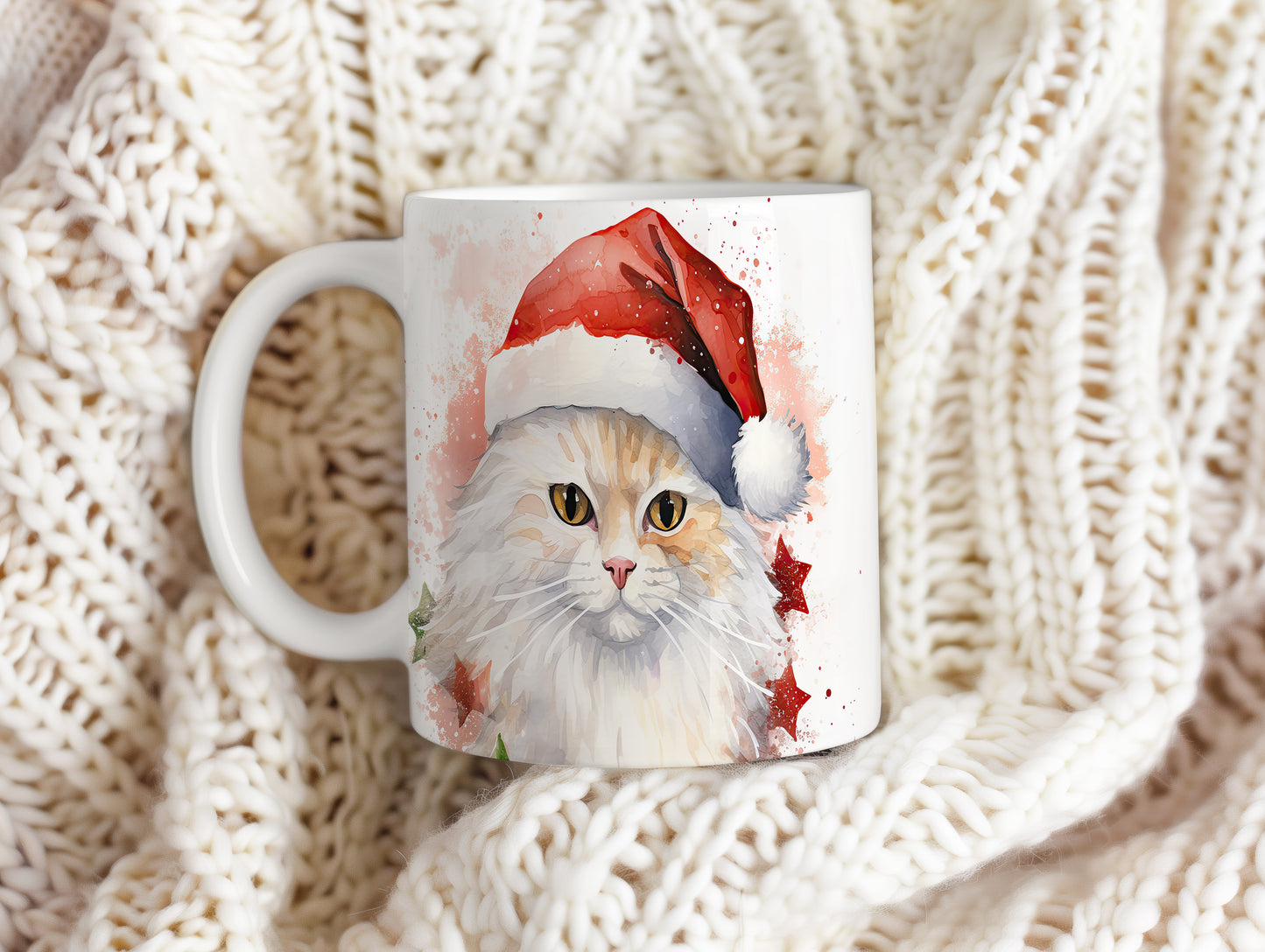 Hrnek s kočkou v Santově čepici – bílým provedením