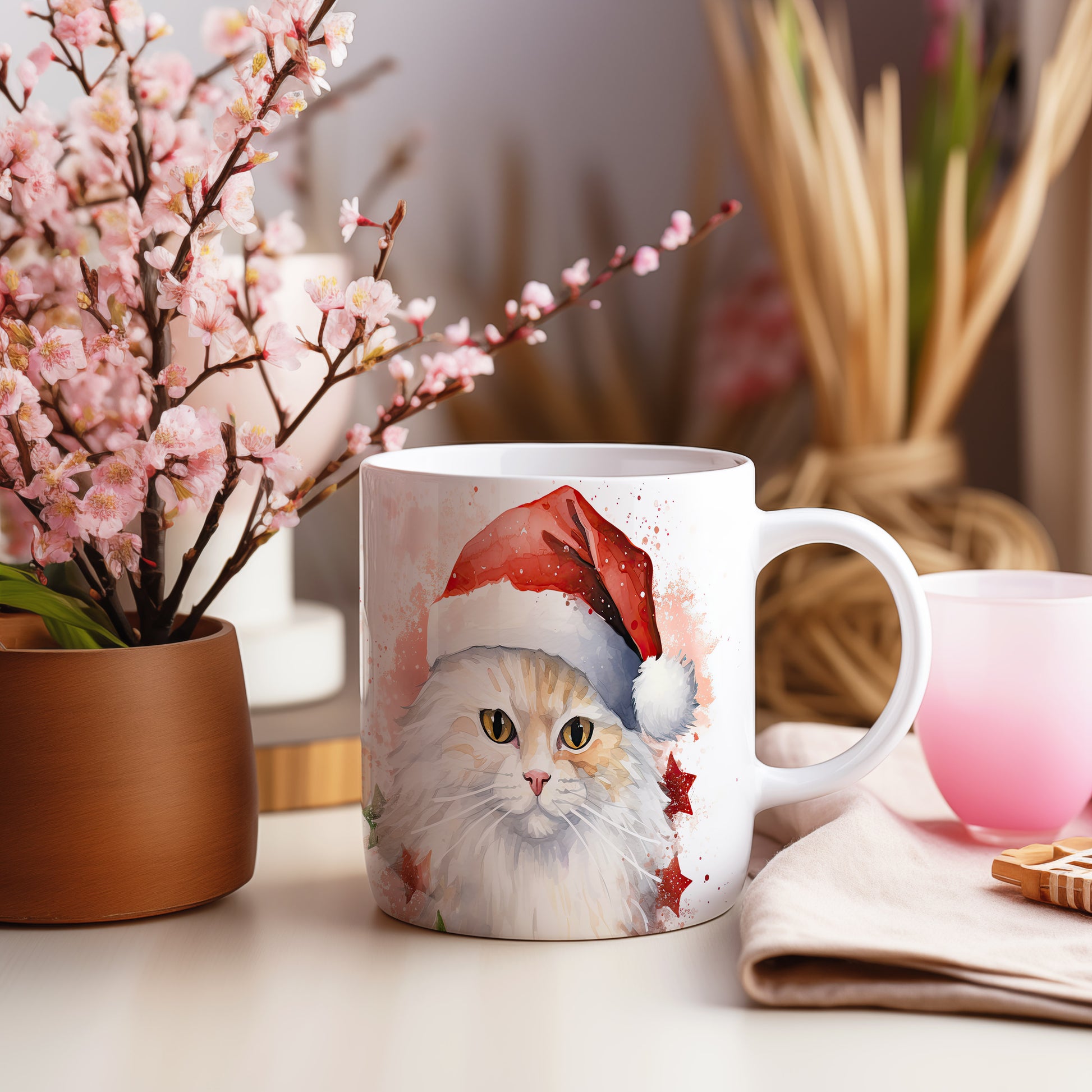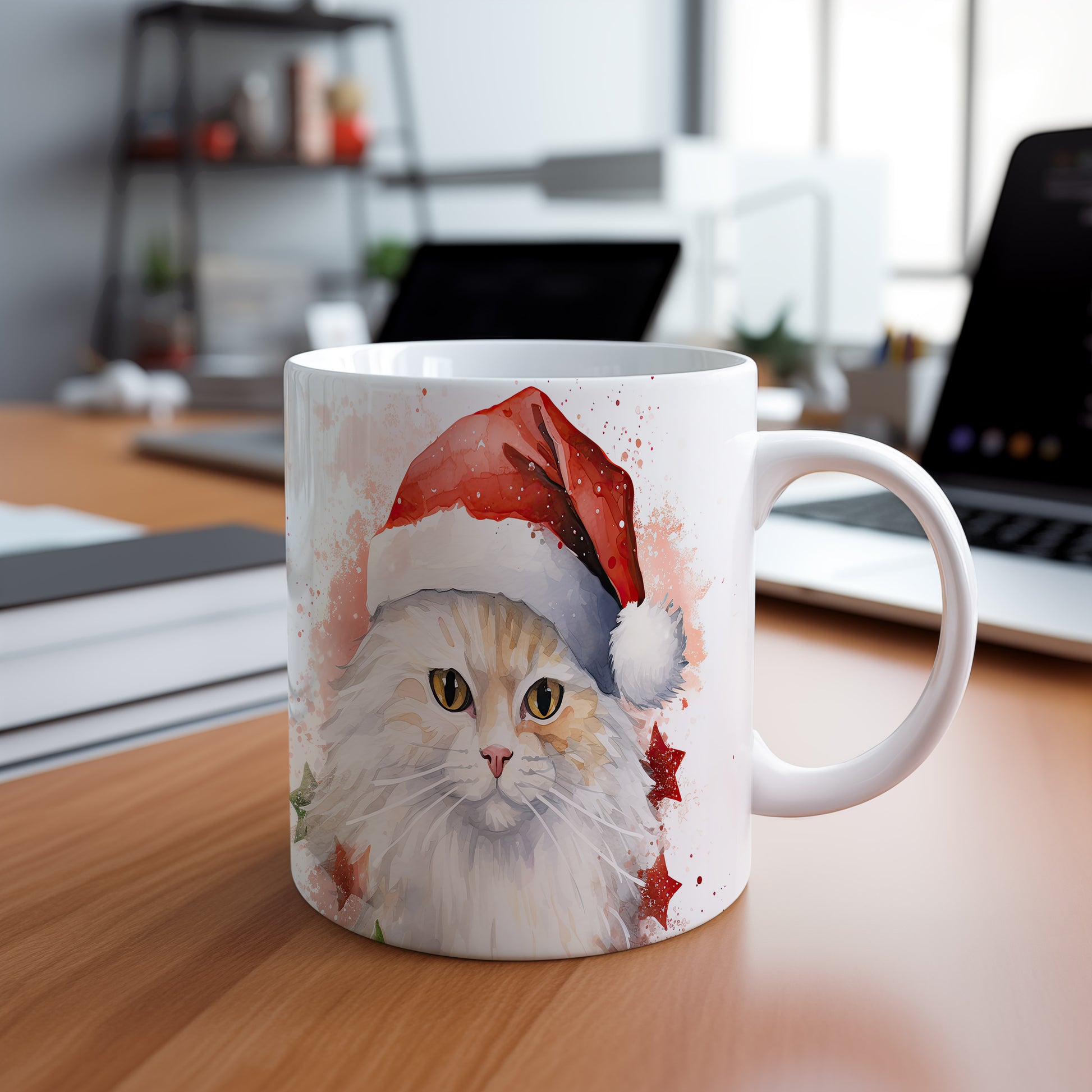 Tento hrnek s motivem kočky v červené Santově čepici je skvělým vánočním doplňkem. Je ideální pro milovníky koček a všechny, kteří chtějí potěšit své blízké originálním dárkem. Materiál: keramika. Objem: 330 ml. Vhodné do myčky i mikrovlnky. Užijte si každé sousto s tímto veselým hrnkem.
