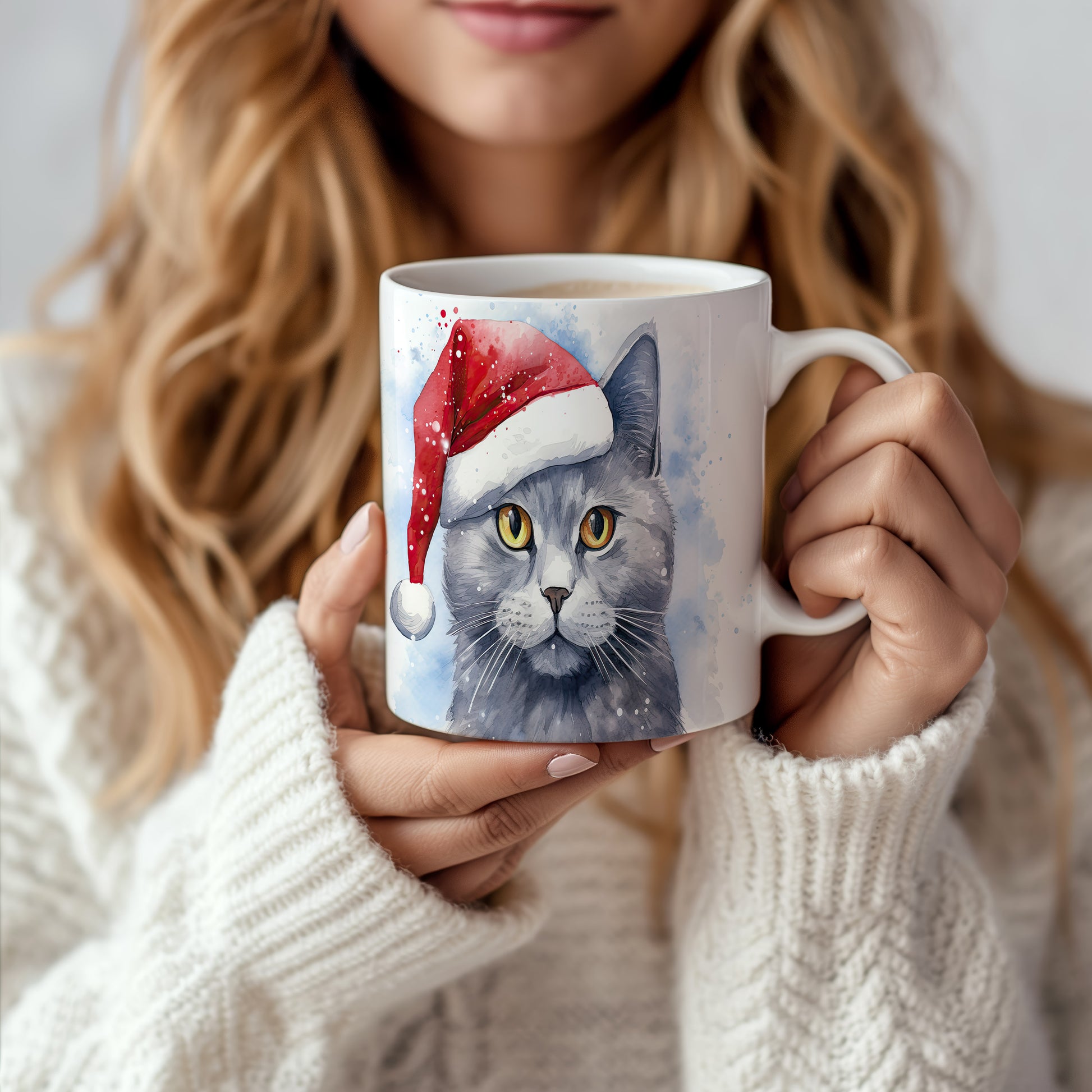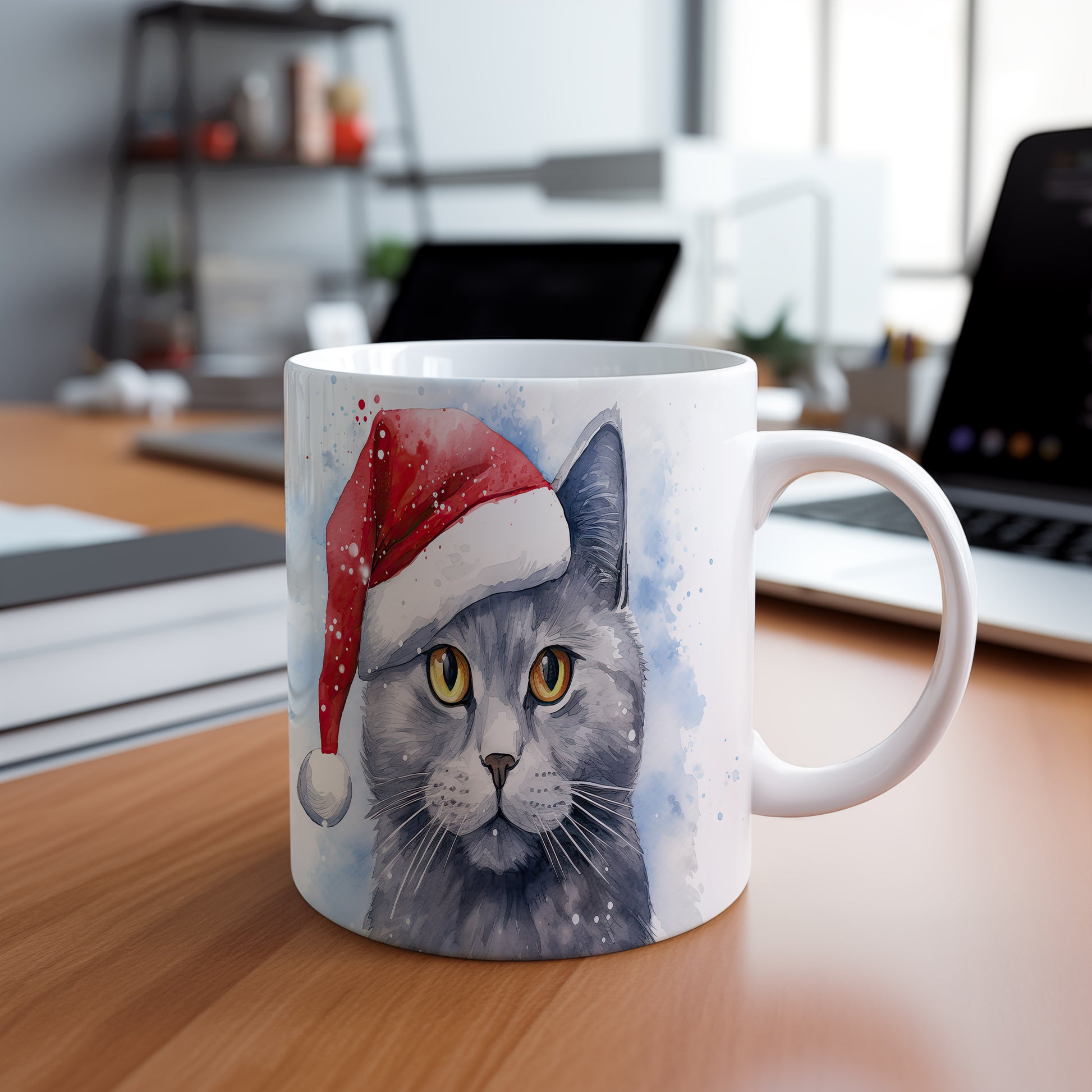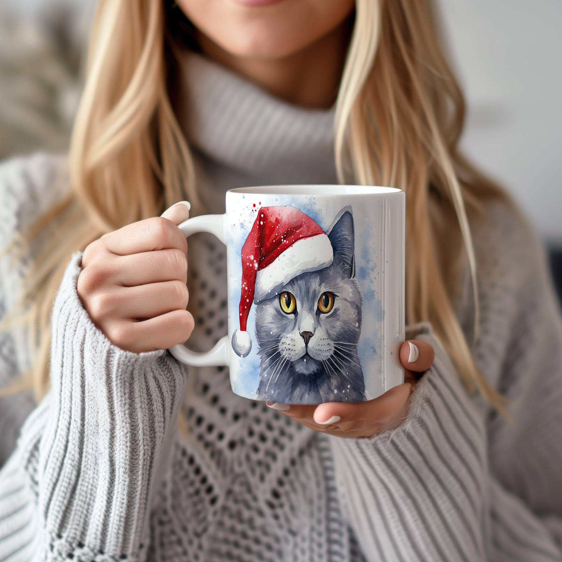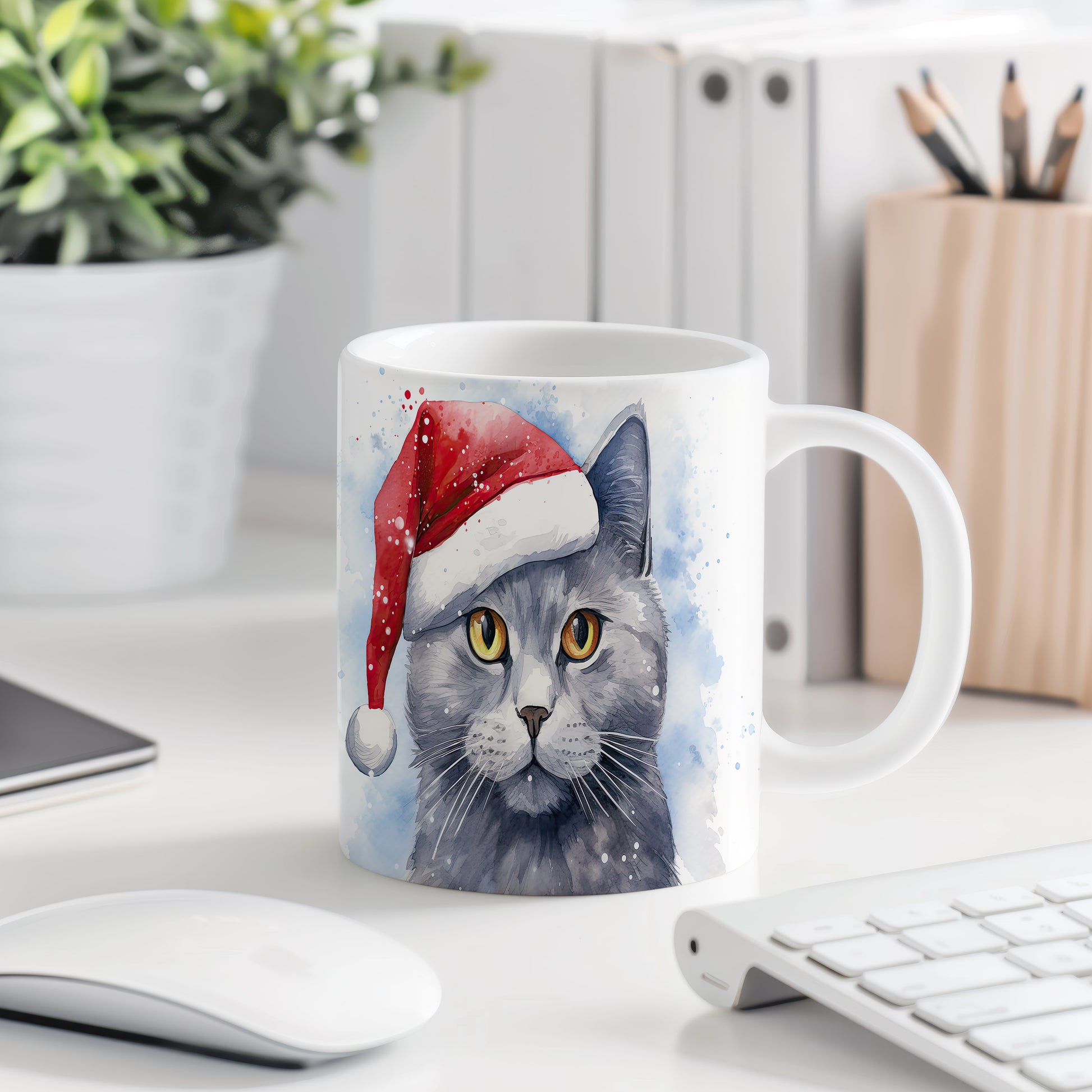 Tento keramický hrnek s motivem šedé kočky v červené santovské čepici přináší vánoční atmosféru a radost milovníkům zvířat. Je skvělým dárkem pro přátele a rodinu, kteří ocení originální design. Materiál: keramika. Objem: 330 ml. Vhodné do myčky i mikrovlnky. Používání tohoto hrnku vám zpříjemní každé sousto a nápoj.