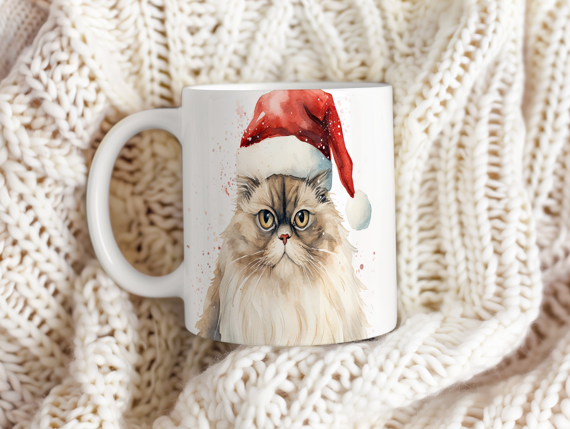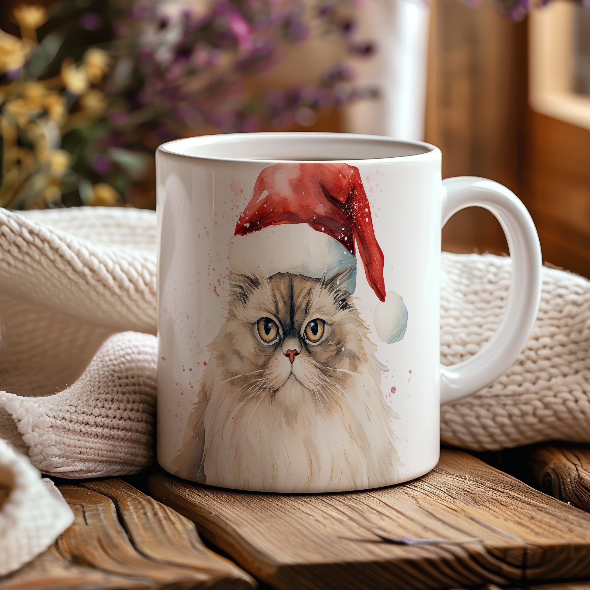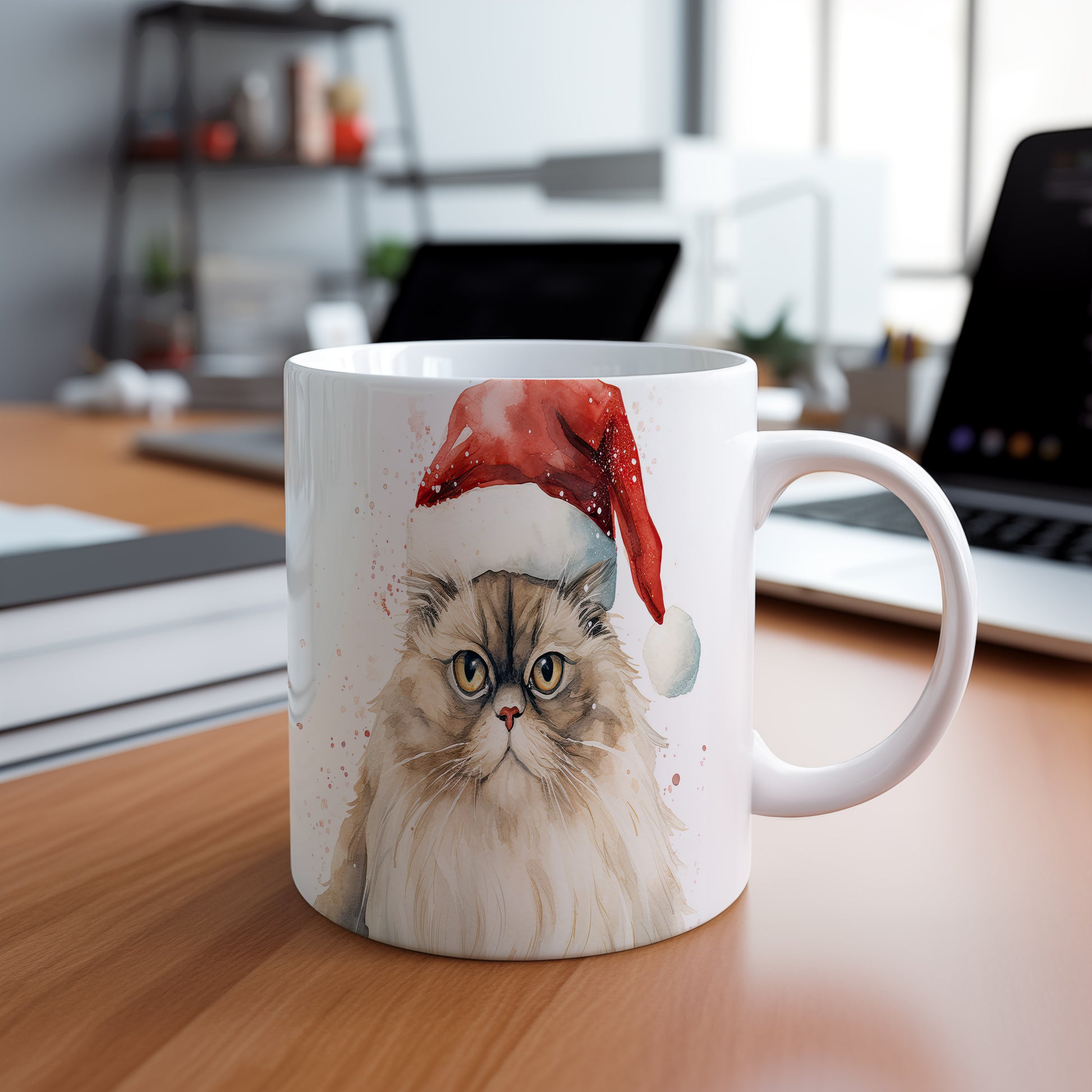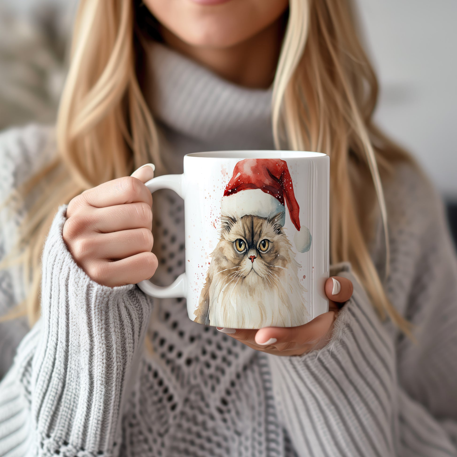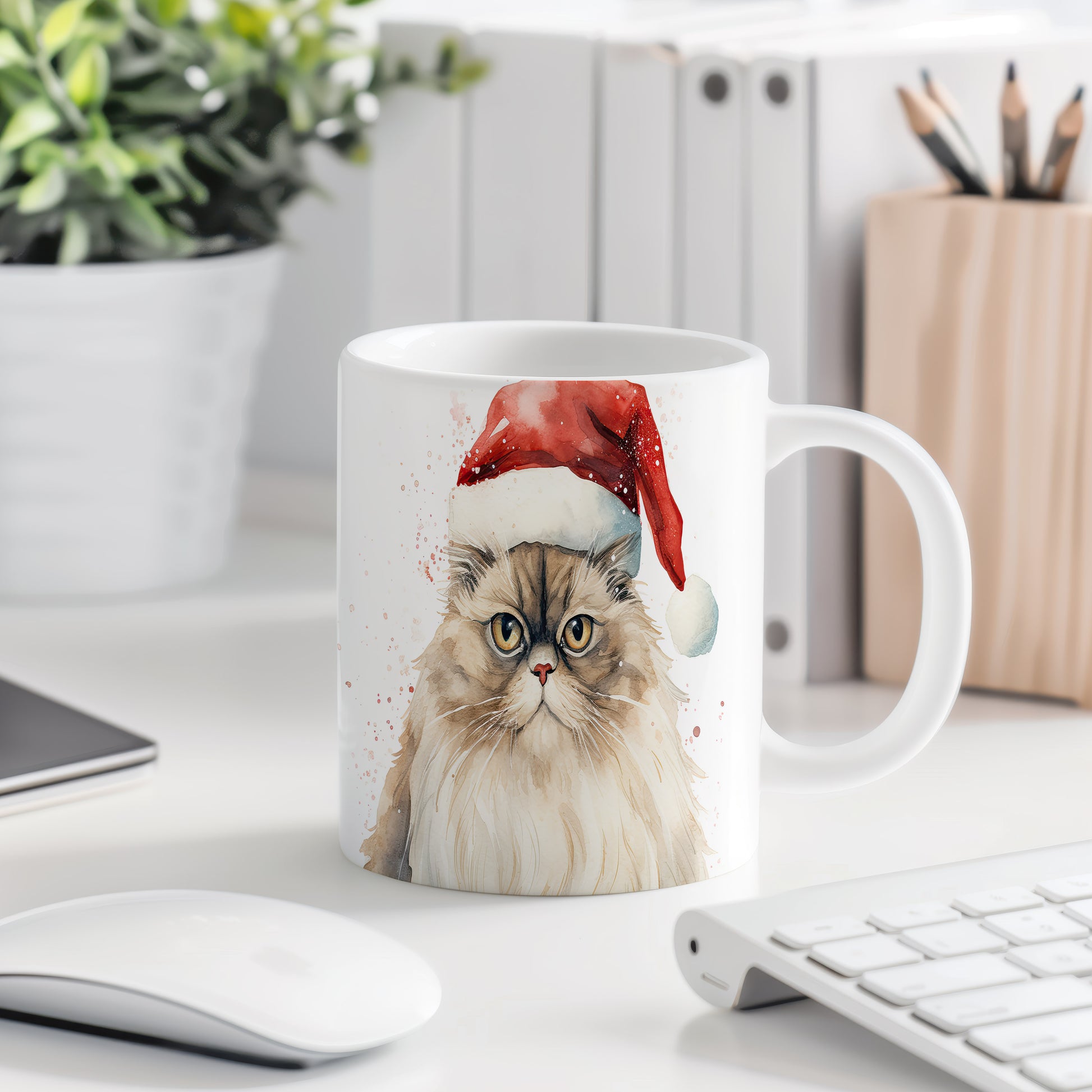 Tento krásný keramický hrnek s motivem perské kočky v červené vánoční čepici přináší sváteční atmosféru. Je ideální pro milovníky koček a skvělým dárkem pro přátele či rodinu. Materiál: keramika. Objem: 330 ml. Vhodné do myčky i mikrovlnky. Užívejte si oblíbený nápoj s úsměvem na tváři díky tomuto originálnímu hrnku.
