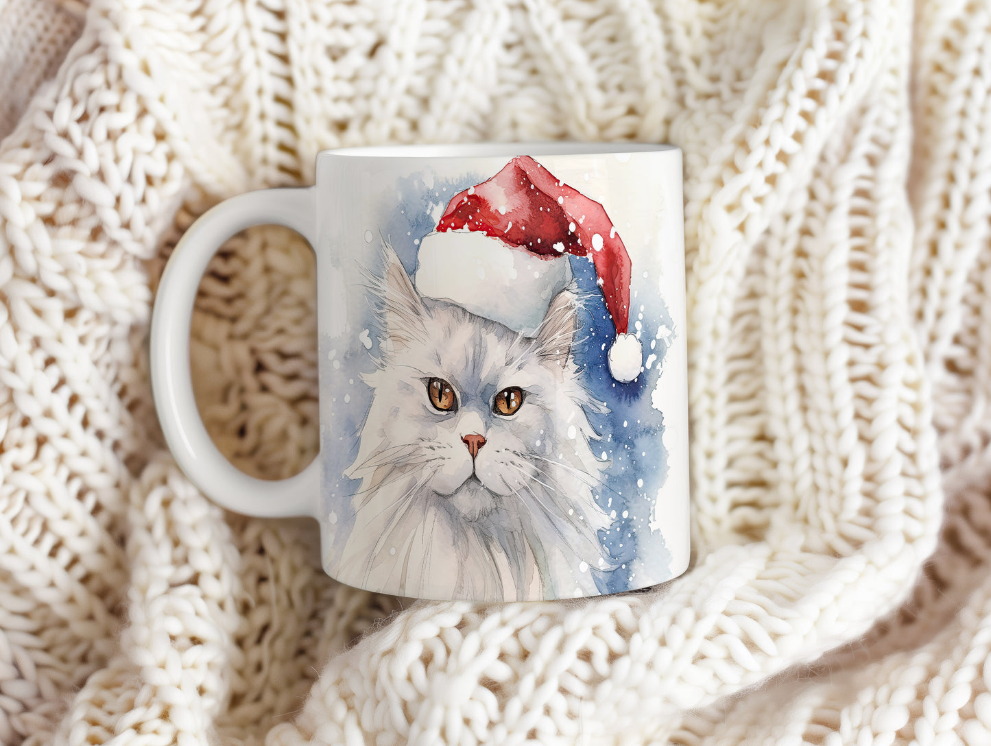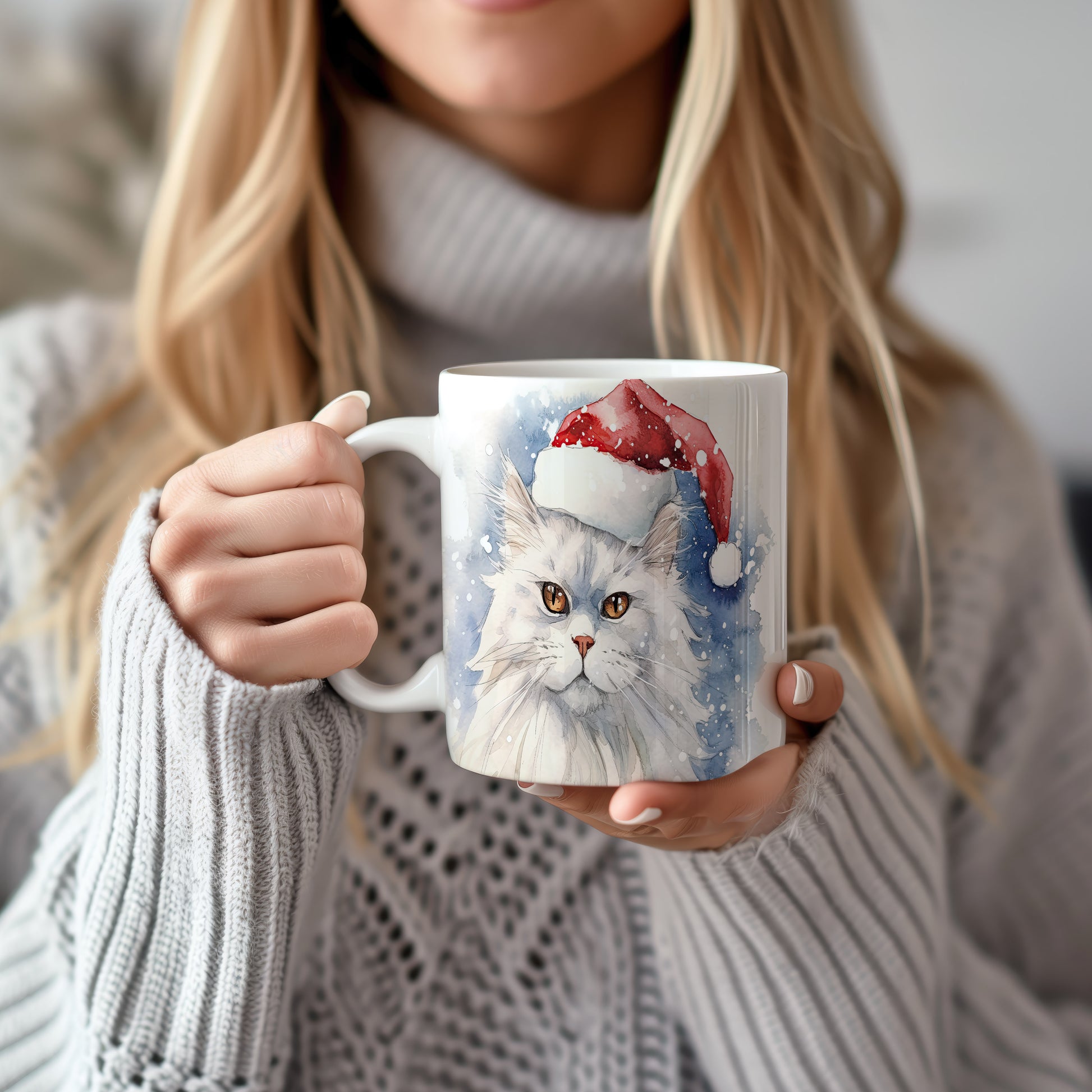 Tento hrnek zobrazuje roztomilou kočku v vánoční čepici, ideální pro milovníky koček a vánoční atmosféry. Skvělý tip na dárek pro přátele nebo rodinu, kteří mají rádi zvířata. Materiál: keramika. Objem: 330 ml. Vhodné do myčky i mikrovlnky. Užívejte si kávu nebo čaj s tímto stylovým hrnkem, který přináší radost do každého dne.