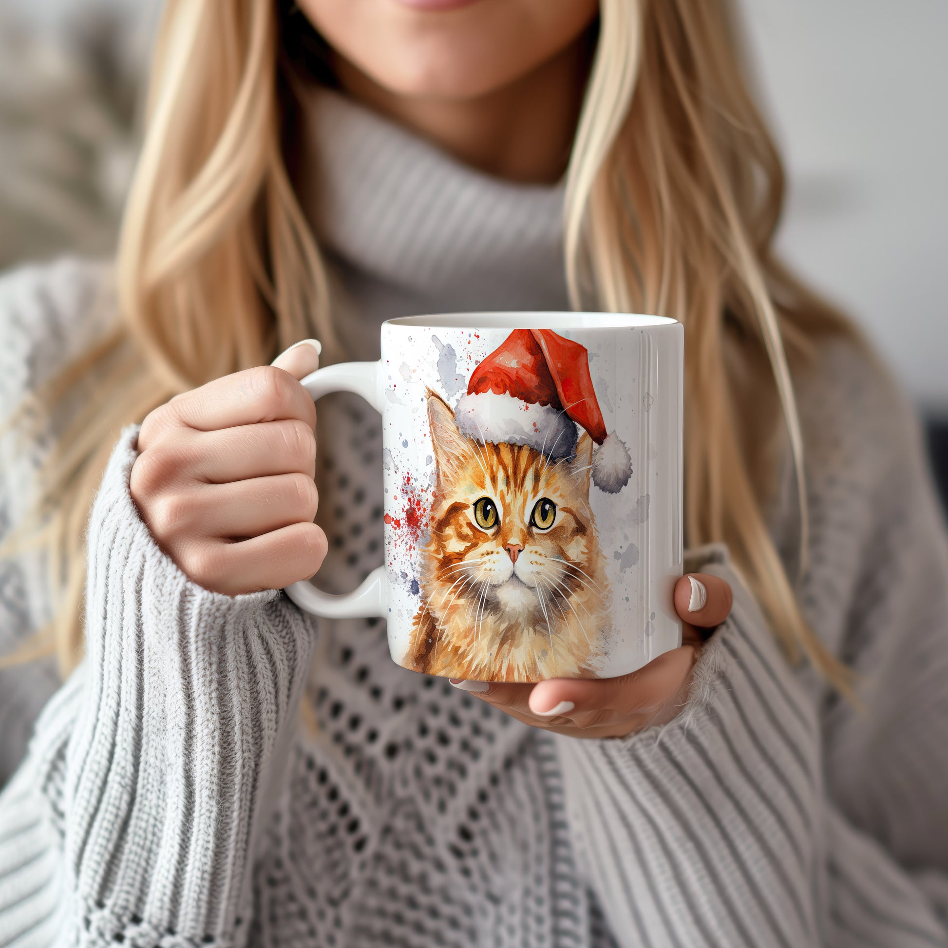 Keramický hrnek s motivem kočky v červené vánoční čepici. Tento hrnek je ideální pro milovníky zvířat a vánoční atmosféry, skvělý tip na dárek pro vaše blízké. Materiál: keramika. Objem: 330 ml. Vhodné do myčky i mikrovlnky. Užívejte si svůj oblíbený nápoj s tímto veselým hrnkem.