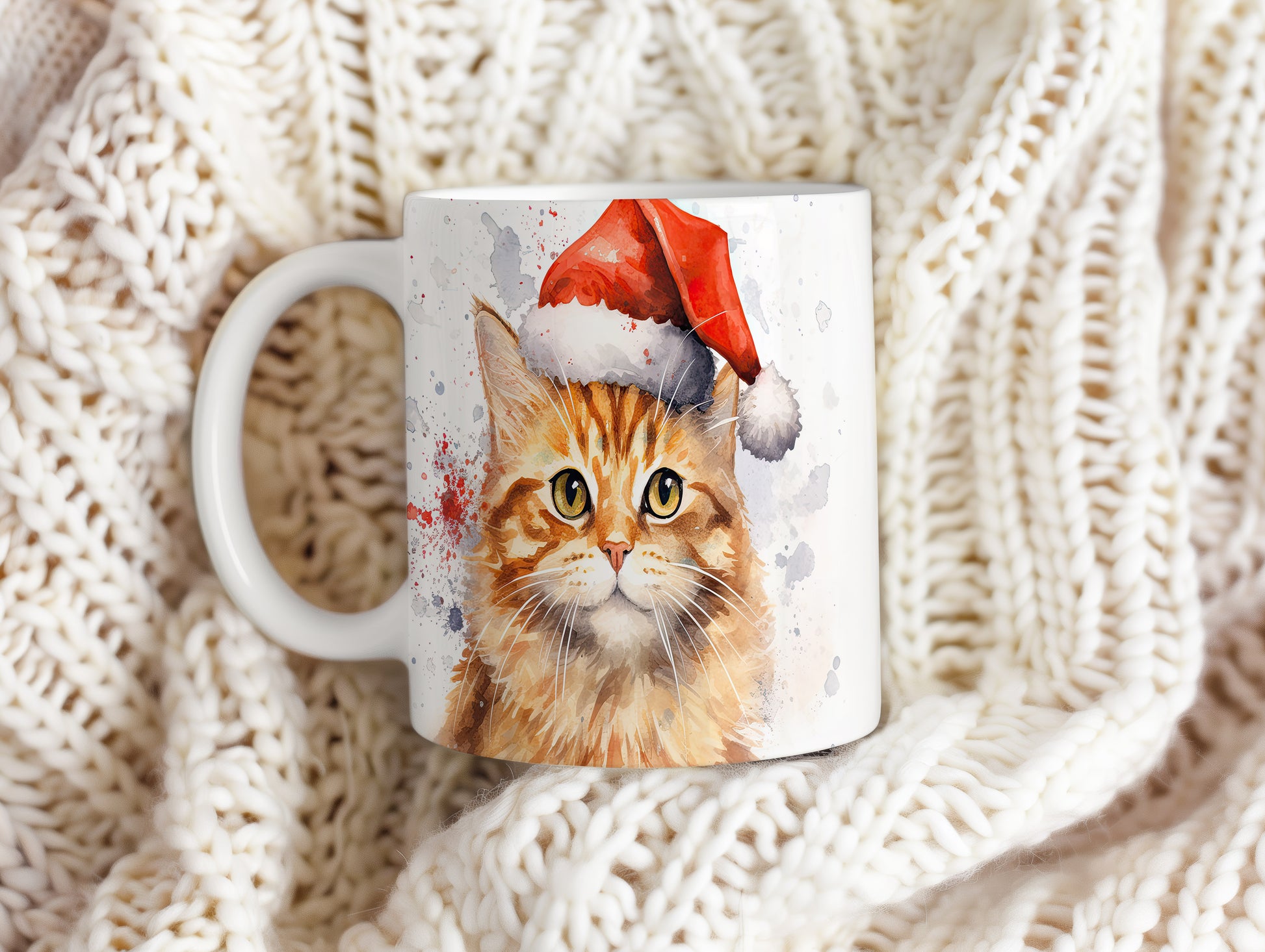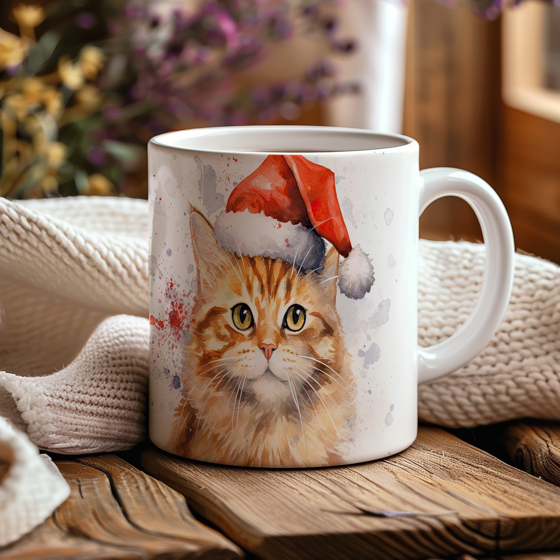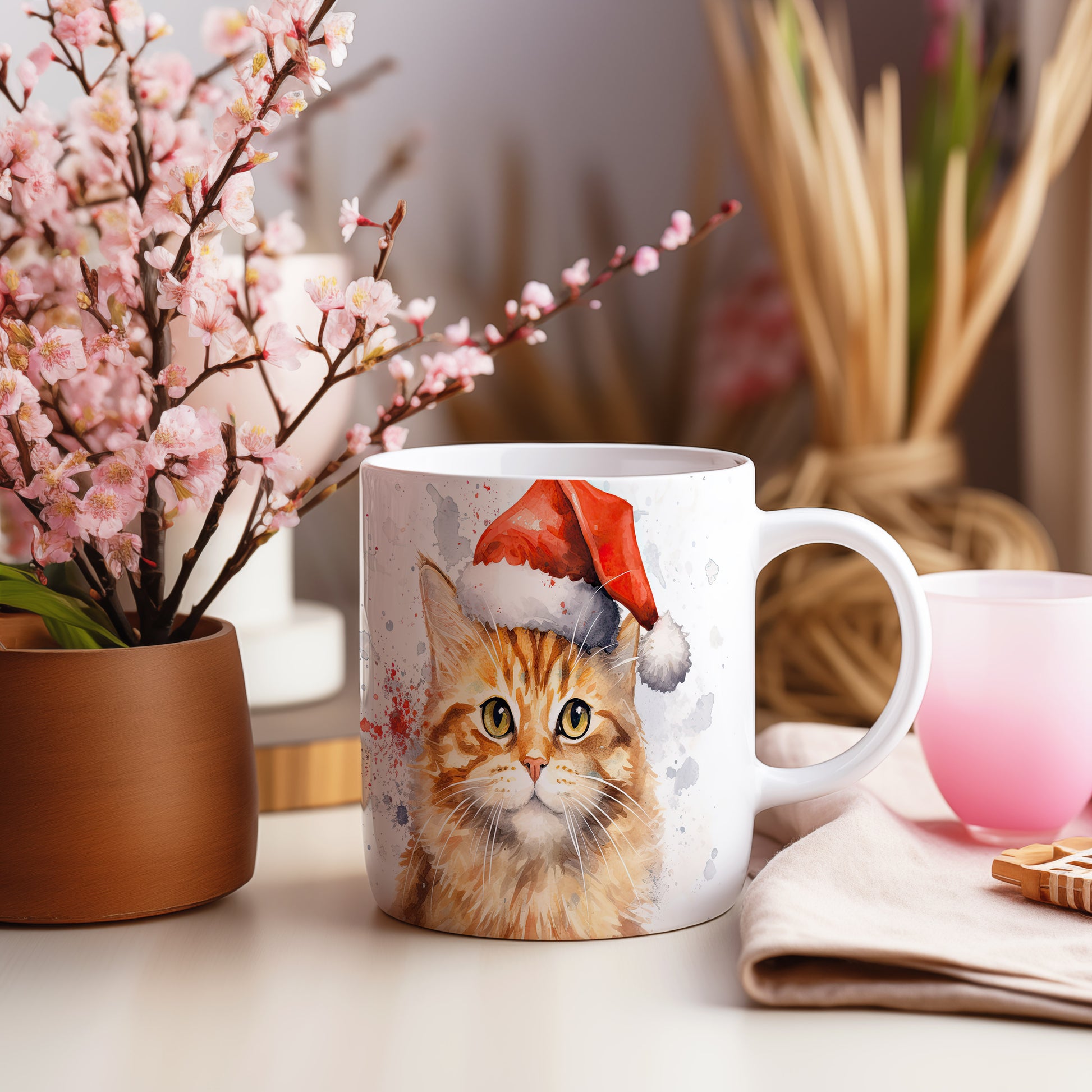 Hrnek s kočkou v vánoční čepici – roztomilým motivem