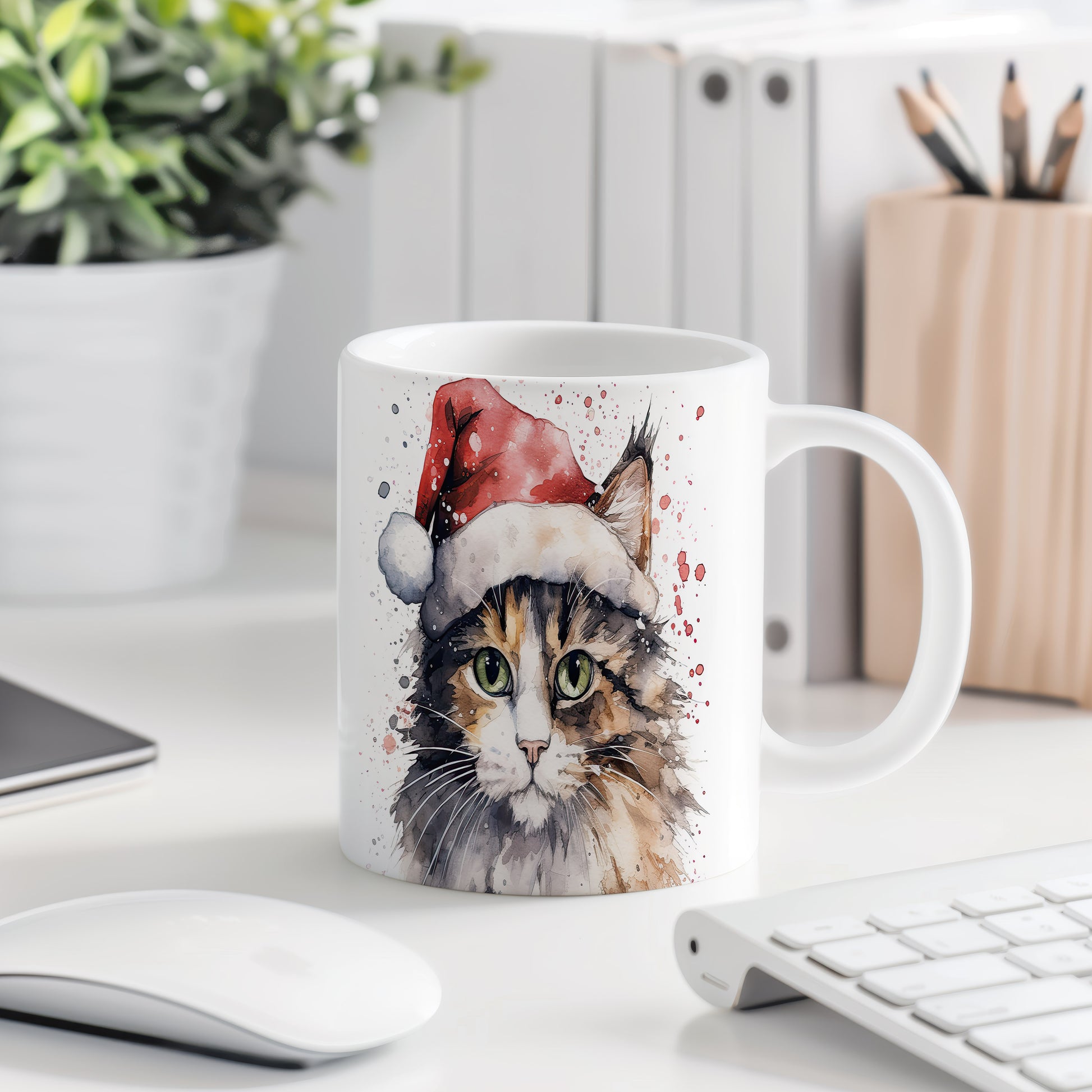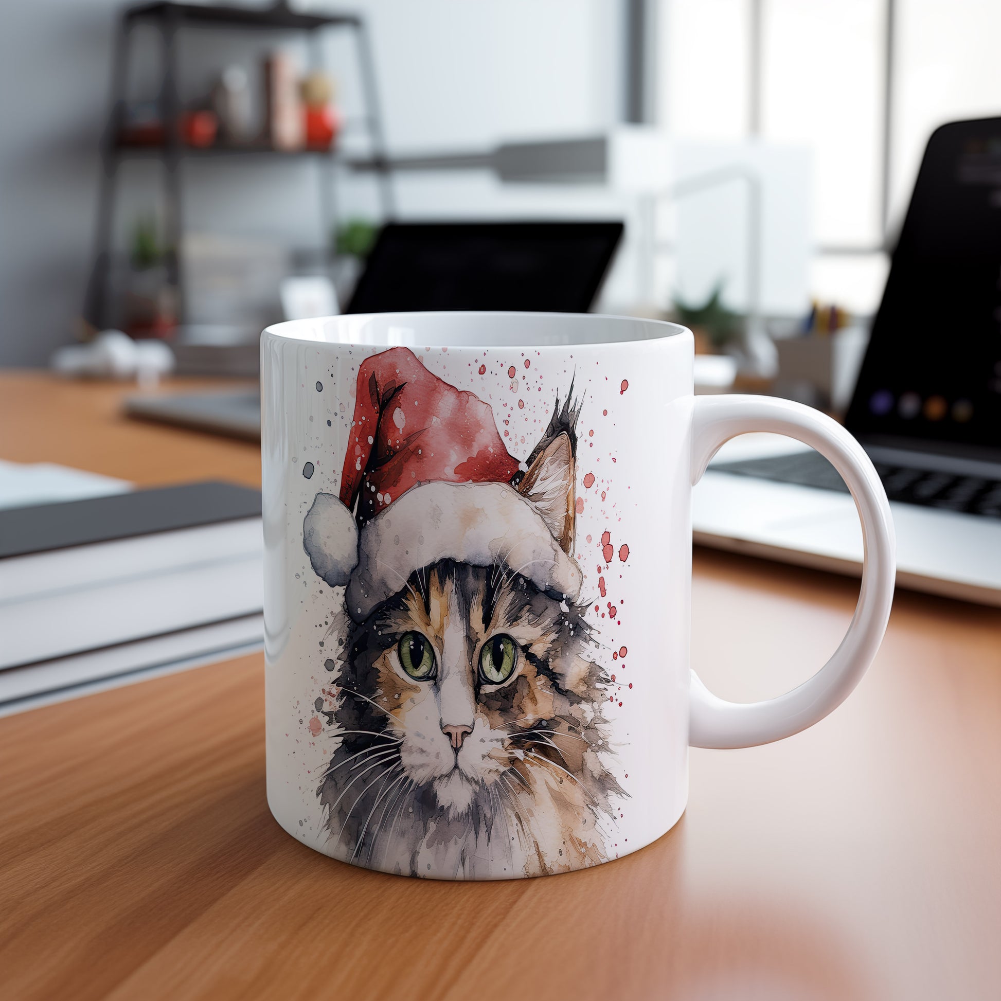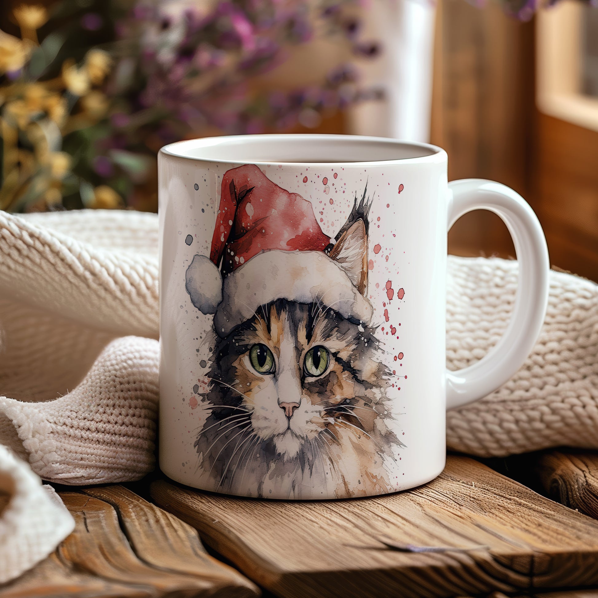 Tento originální hrnek s motivem kočky v vánoční čepici přináší kouzlo zimních svátků. Je ideální pro milovníky koček a skvělým dárkem pro přátele či rodinu. Materiál: keramika. Objem: 330 ml. Vhodné do myčky i mikrovlnky. Užívejte si horké nápoje s tímto stylovým hrnkem, který potěší každého milovníka koček.