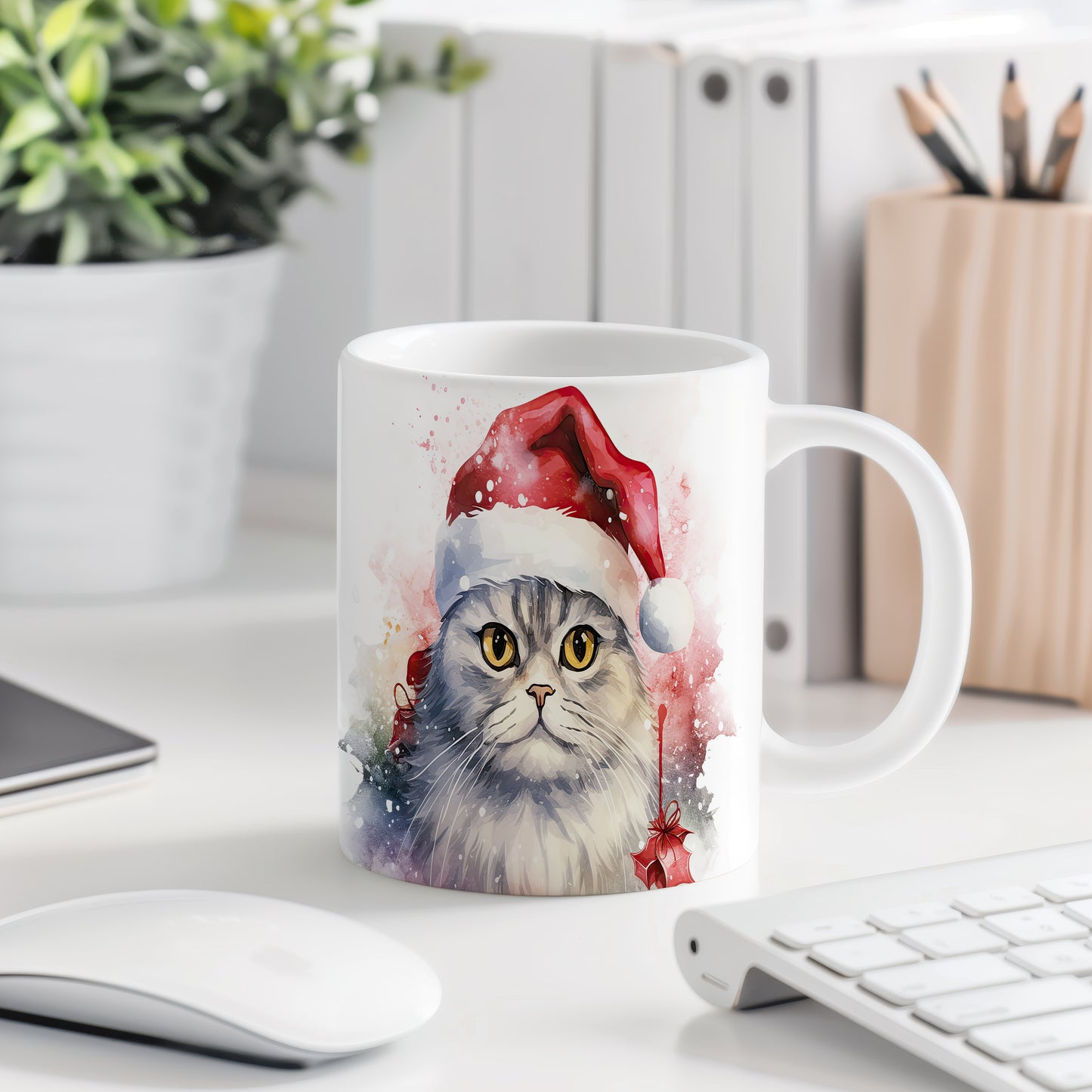 Keramický hrnek s motivem kočky v vánoční čepici. Tento hrnek je ideální pro milovníky domácích mazlíčků a vánoční atmosféry, skvělý tip na dárek pro přátele nebo rodinu. Materiál: keramika. Objem: 330 ml. Vhodné do myčky i mikrovlnky. Používání tohoto hrnku přináší radost a útulnost do každého doušku.