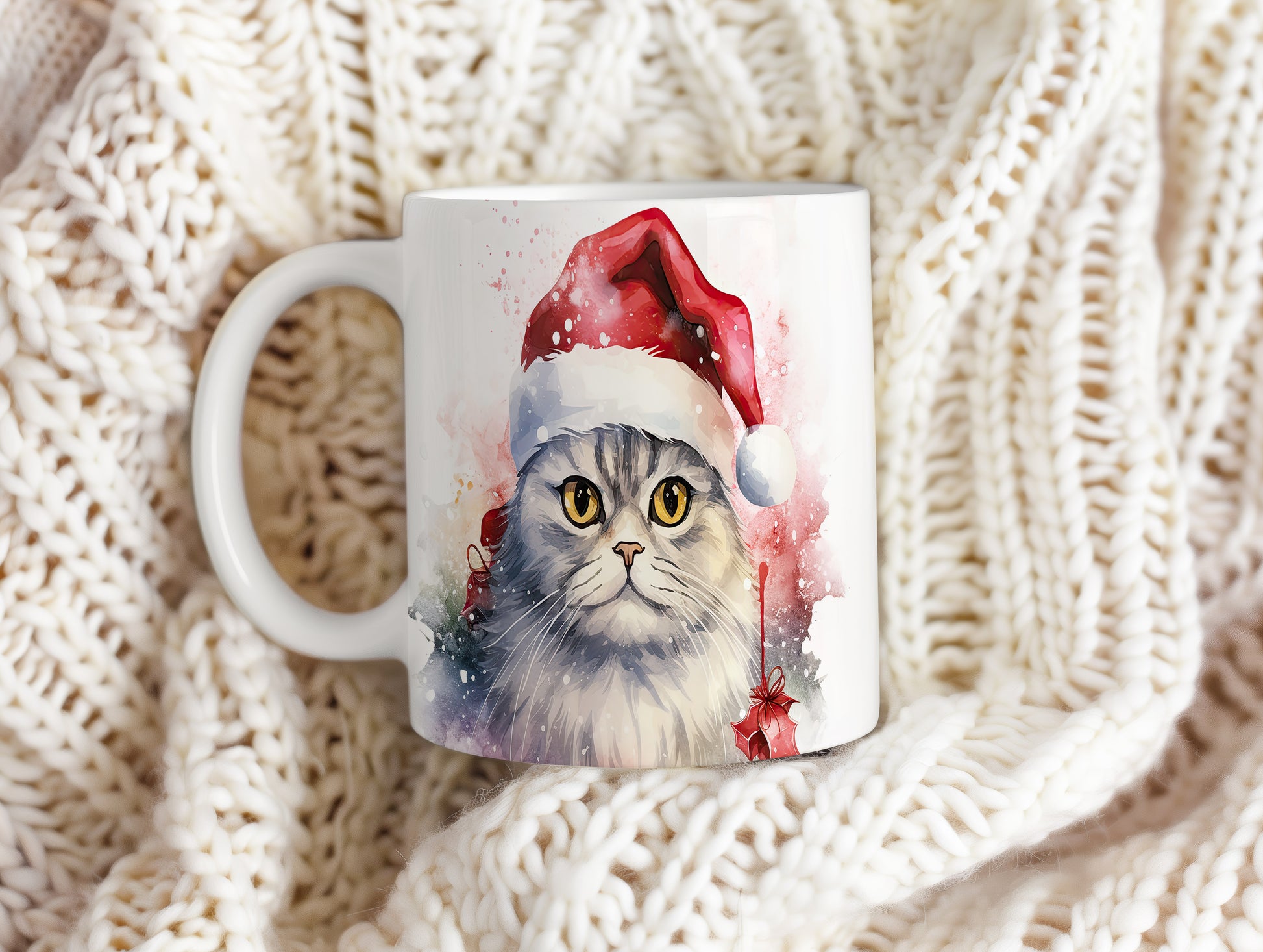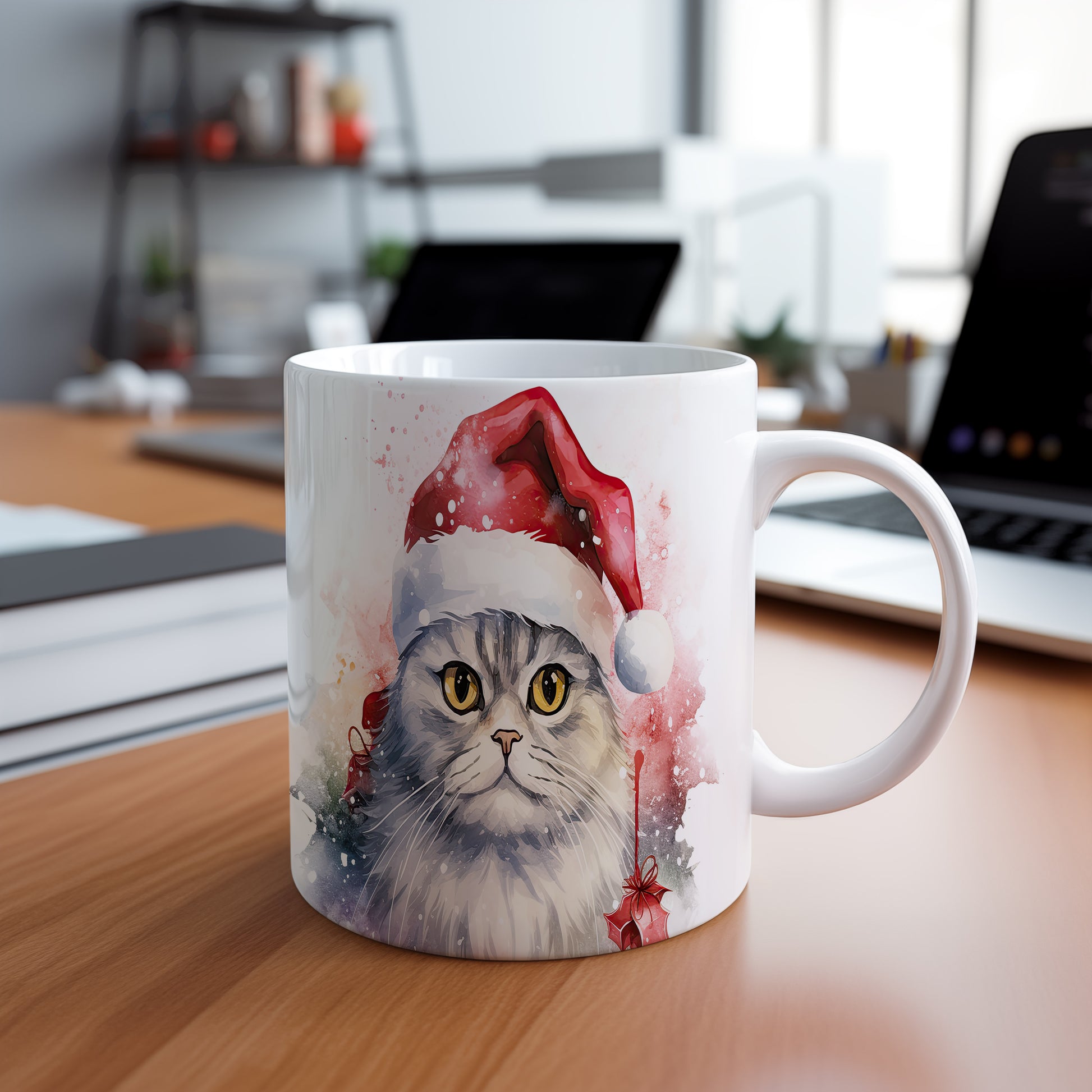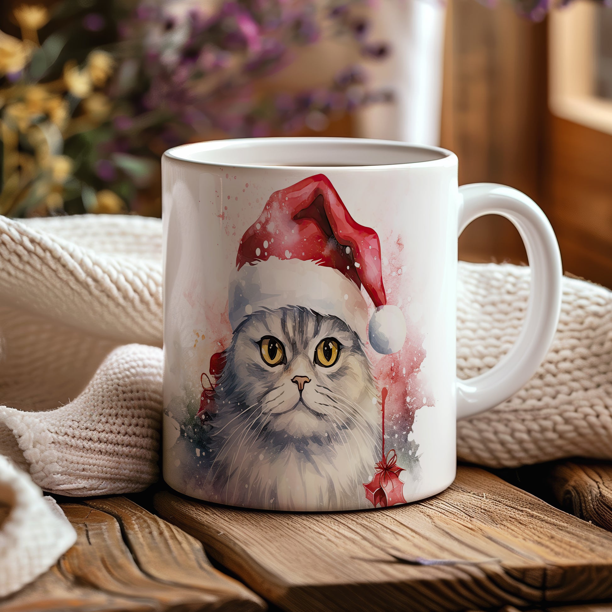 Hrnek s kočkou v vánoční čepici – výrazným designem