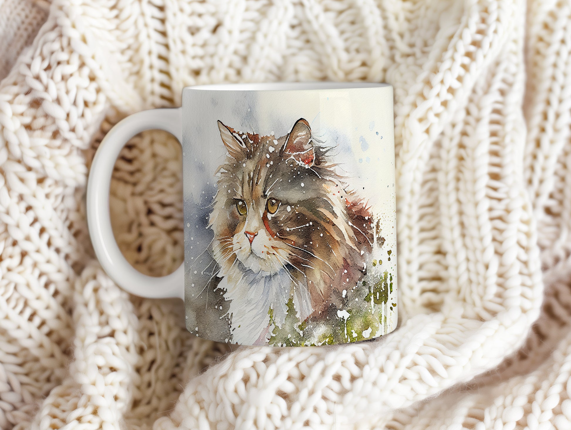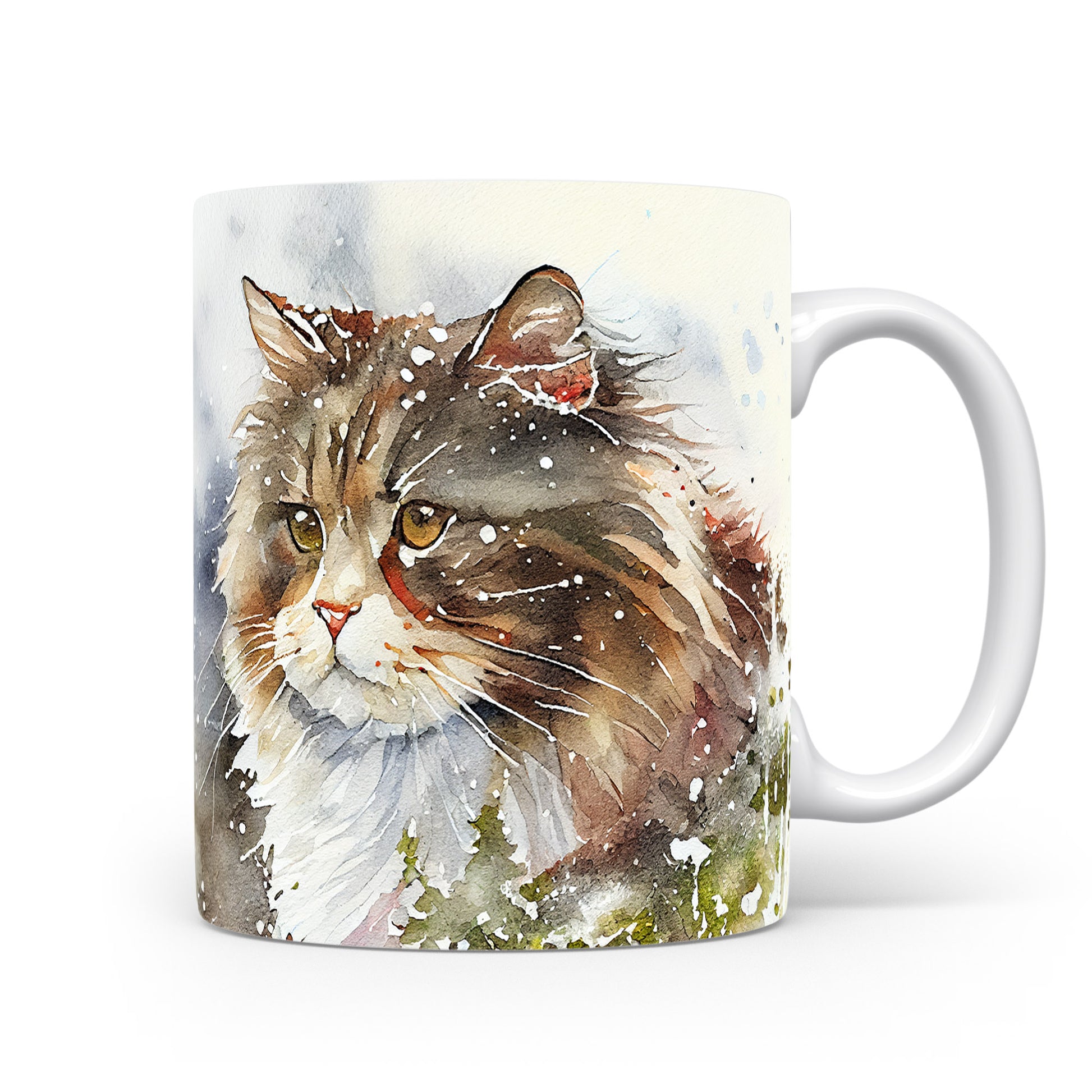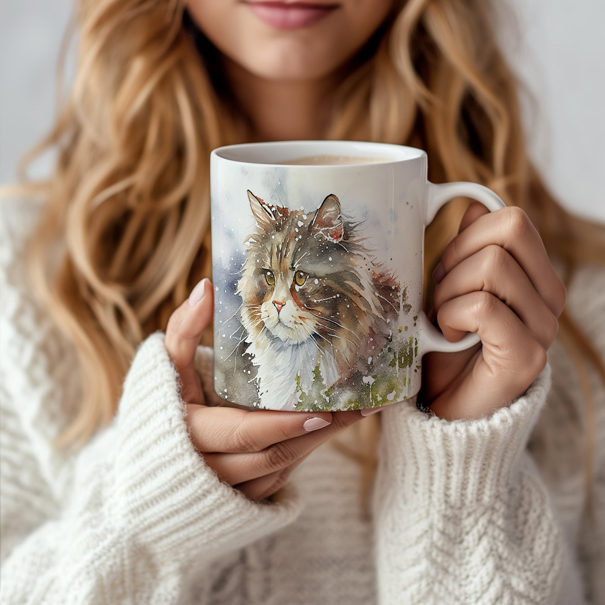 Keramický hrnek s motivem kočky v zasněžené přírodě. Ideální pro milovníky koček a přírody, skvělý tip na dárek pro každého, kdo ocení krásu zimní krajiny. Materiál: keramika. Objem: 330 ml. Vhodné do myčky i mikrovlnky. Tento hrnek přináší radost z každého doušku a dodává šarm vašim chvílím s oblíbeným nápojem.