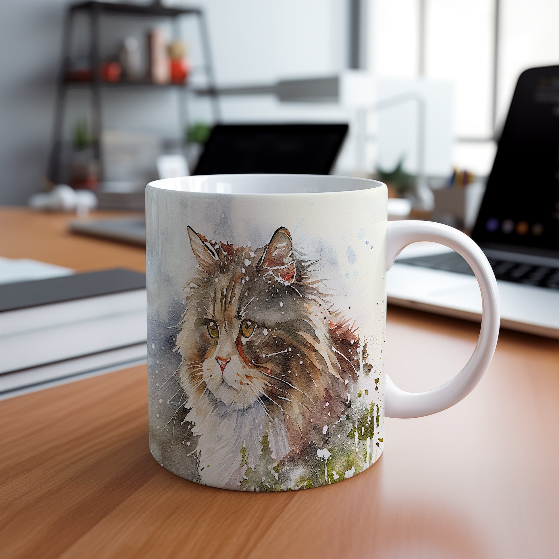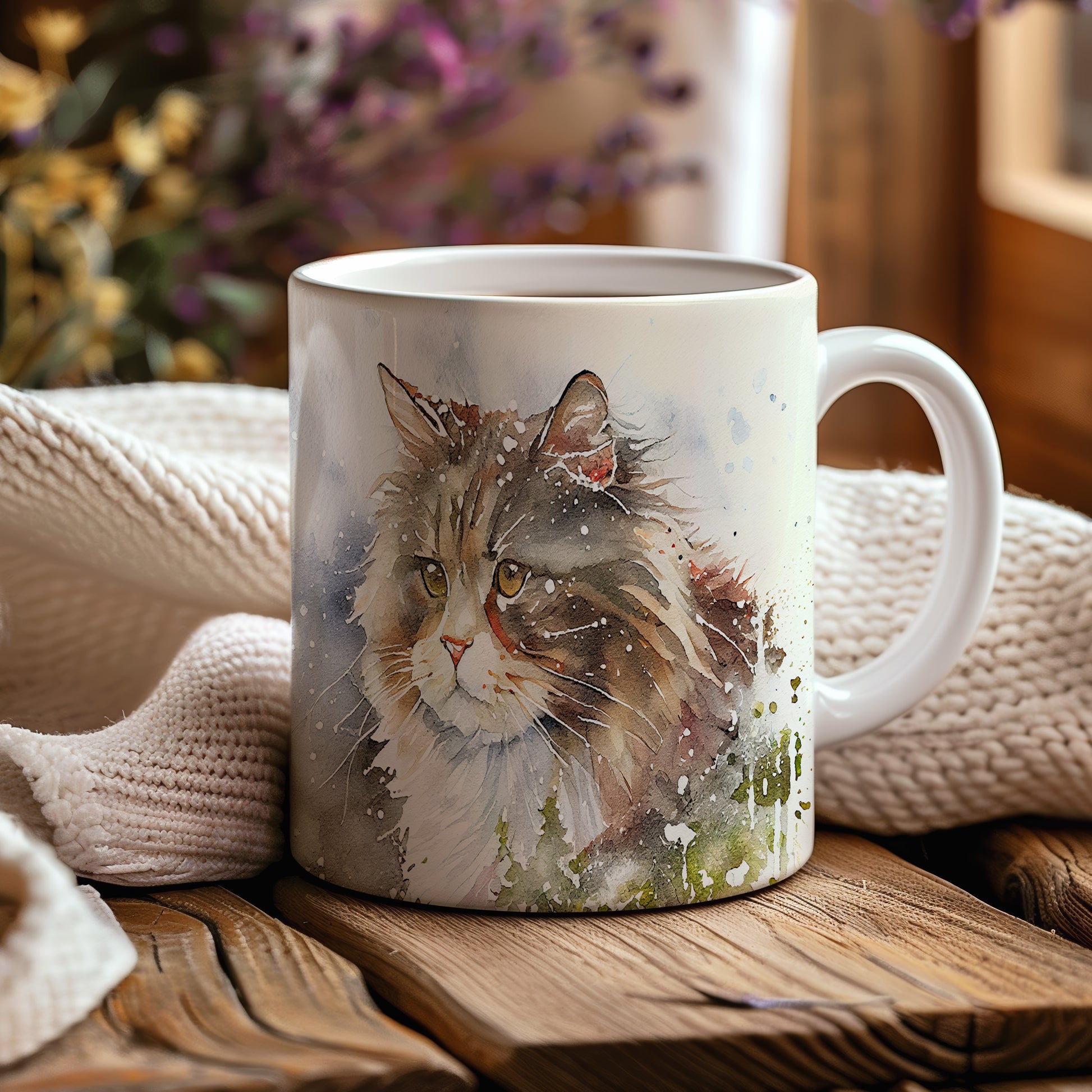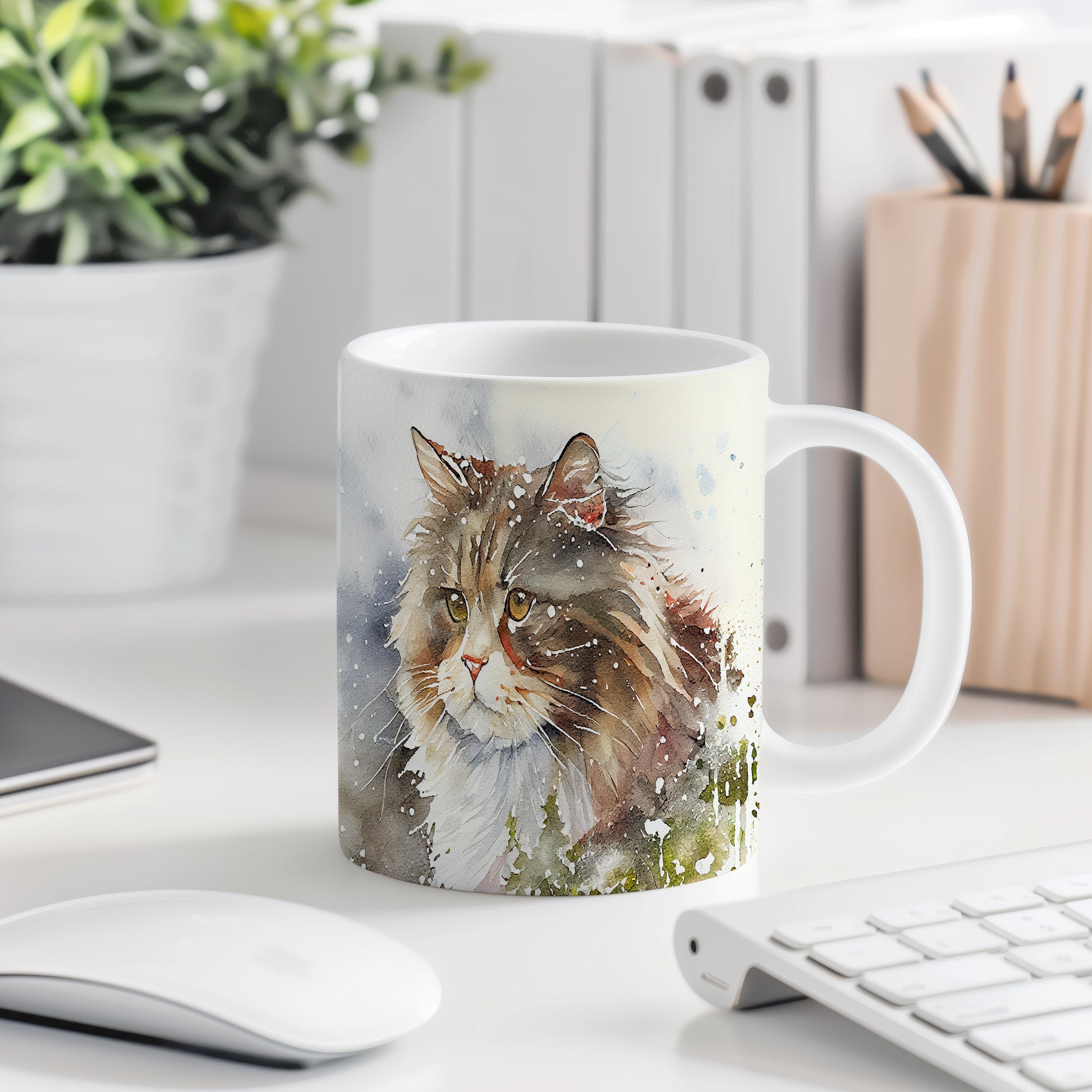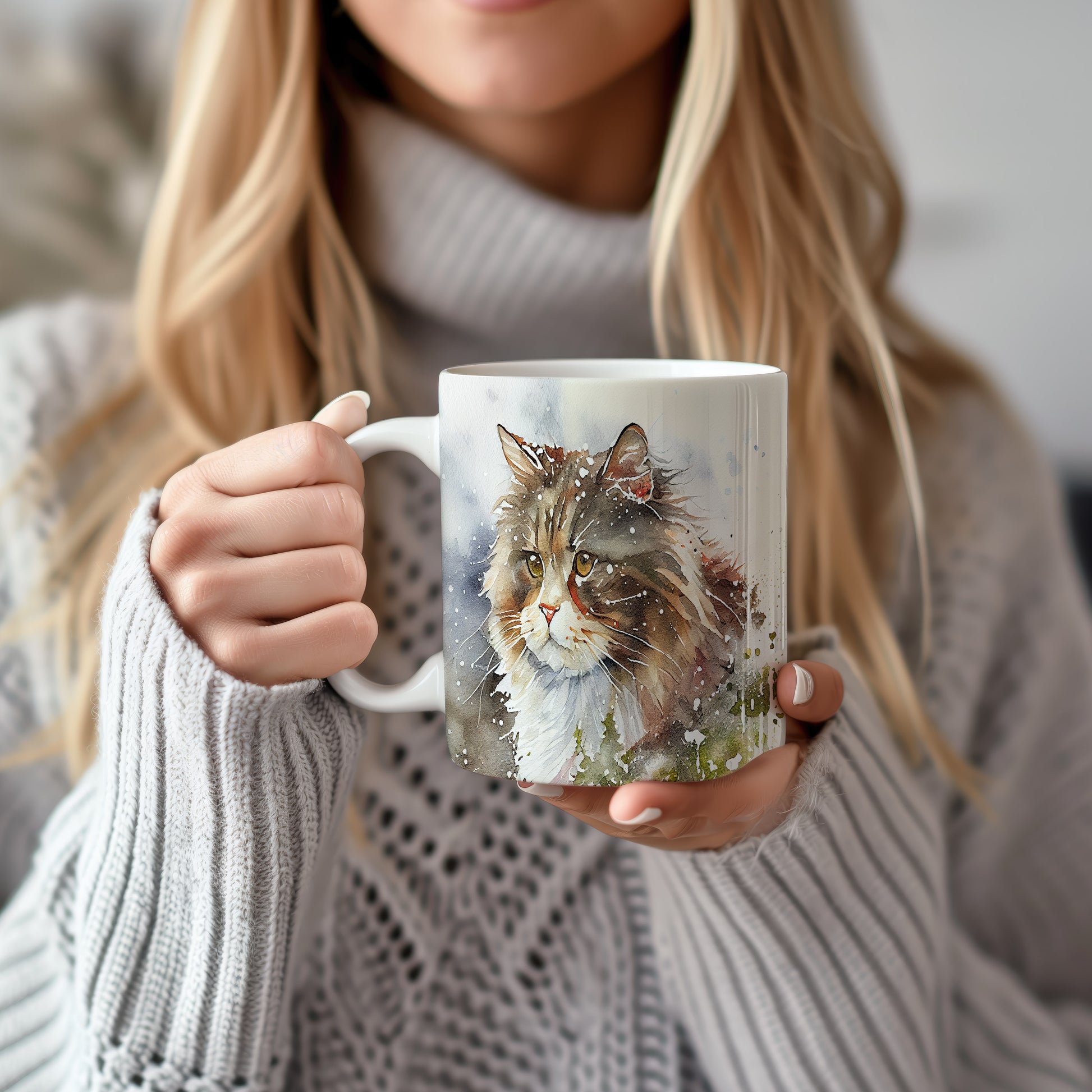 Keramický hrnek s motivem kočky v zasněžené přírodě. Ideální pro milovníky koček a přírody, skvělý tip na dárek pro každého, kdo ocení krásu zimní krajiny. Materiál: keramika. Objem: 330 ml. Vhodné do myčky i mikrovlnky. Tento hrnek přináší radost z každého doušku a dodává šarm vašim chvílím s oblíbeným nápojem.