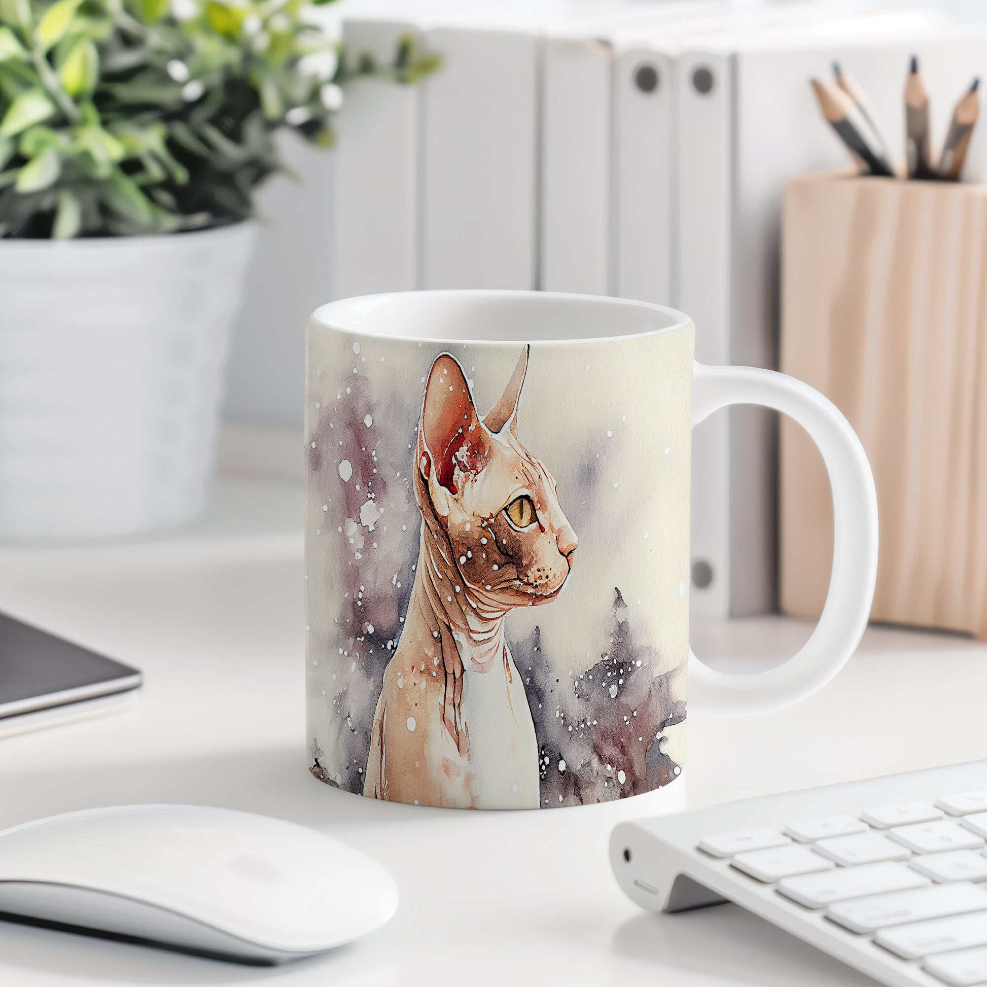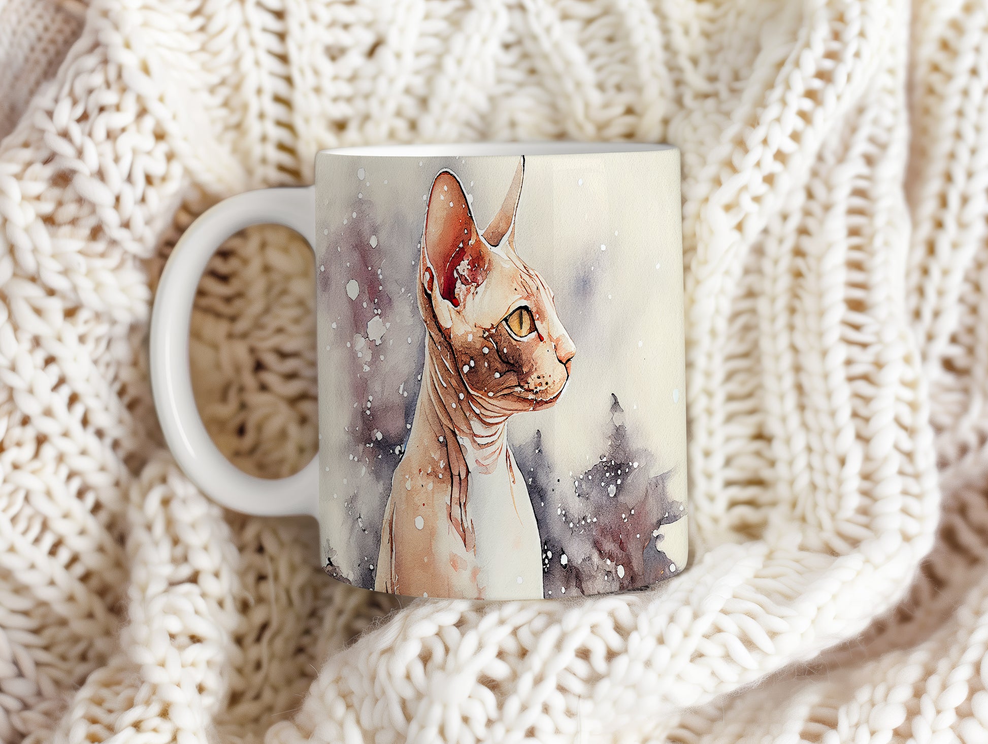 Hrnek s kočkou v zasněžené krajině – bílým provedením