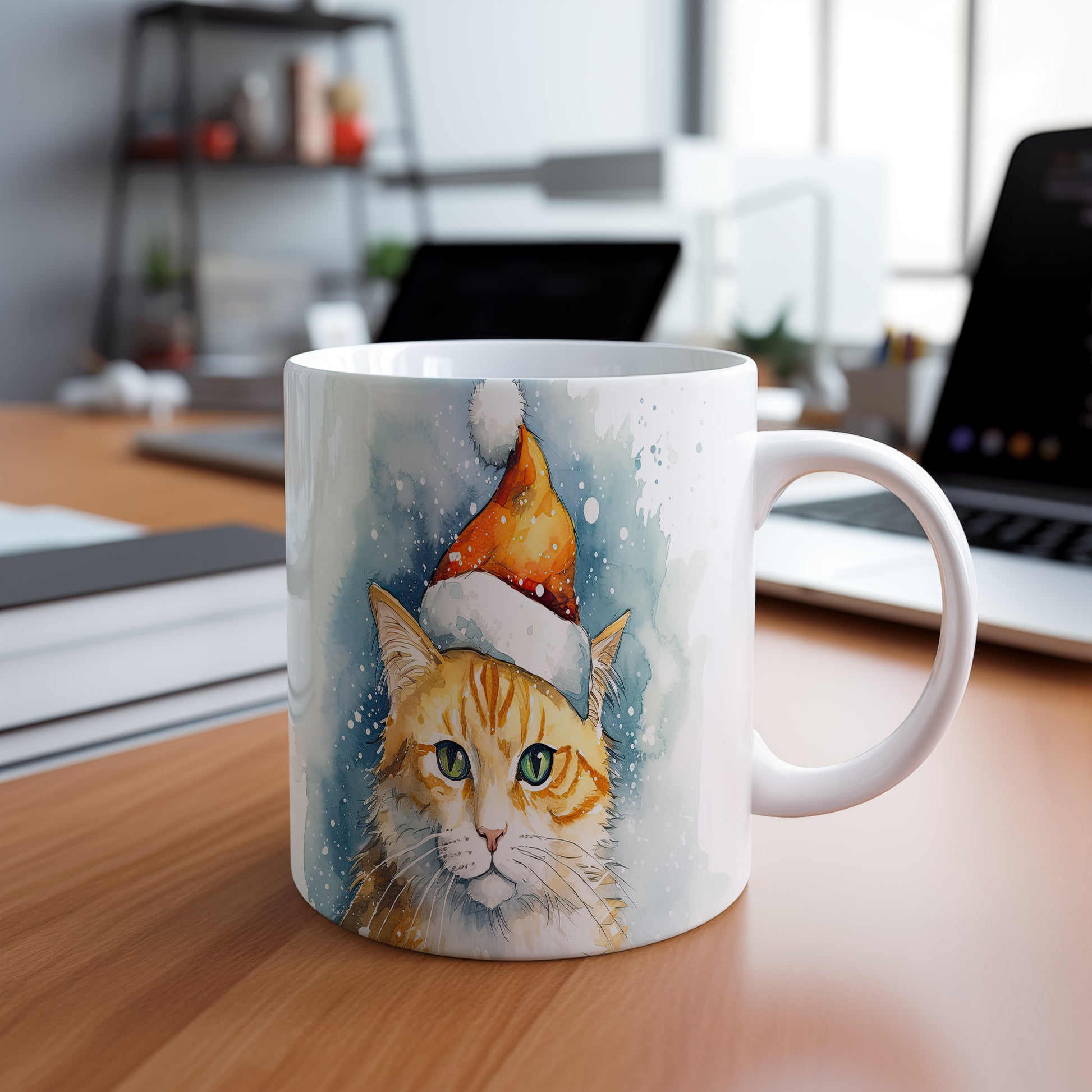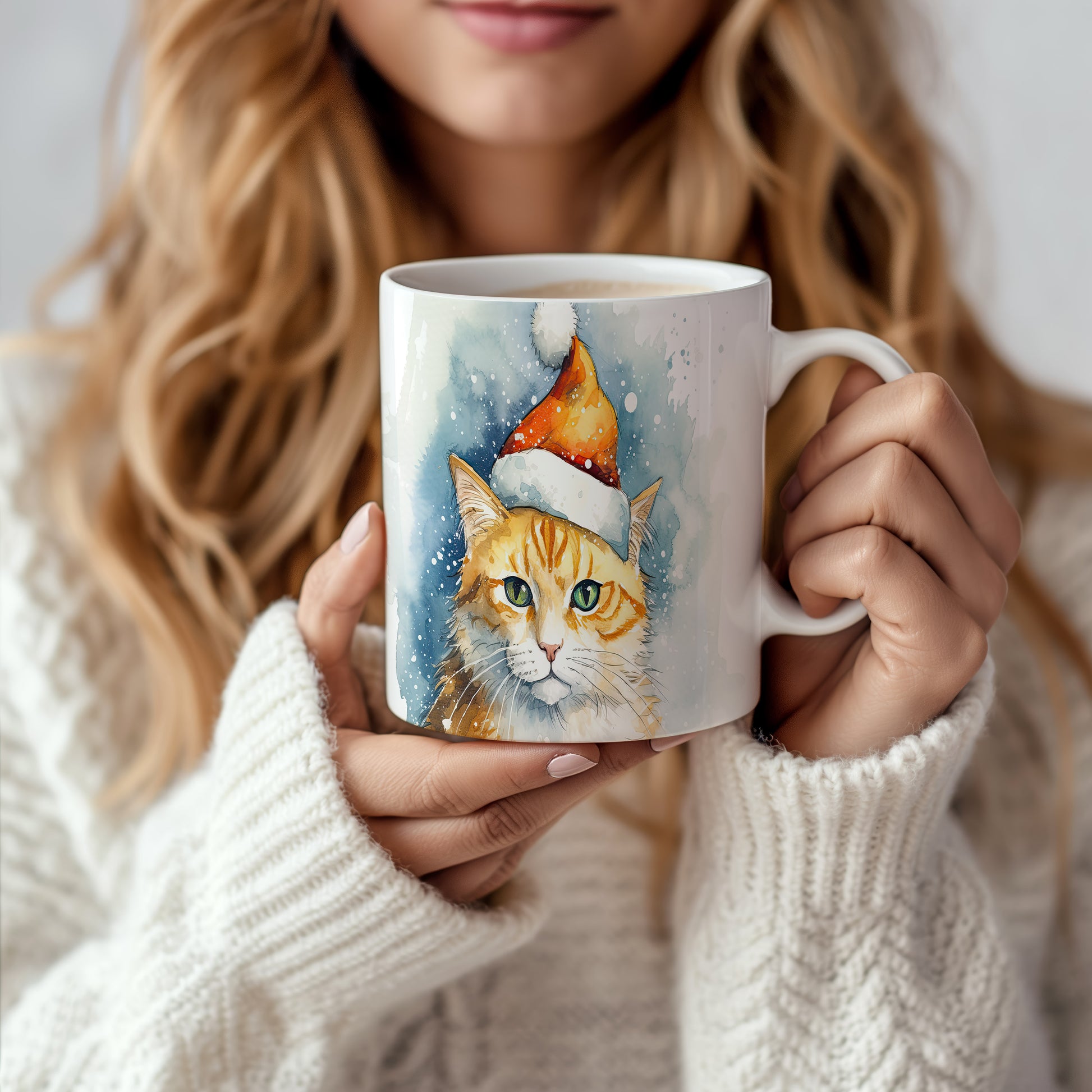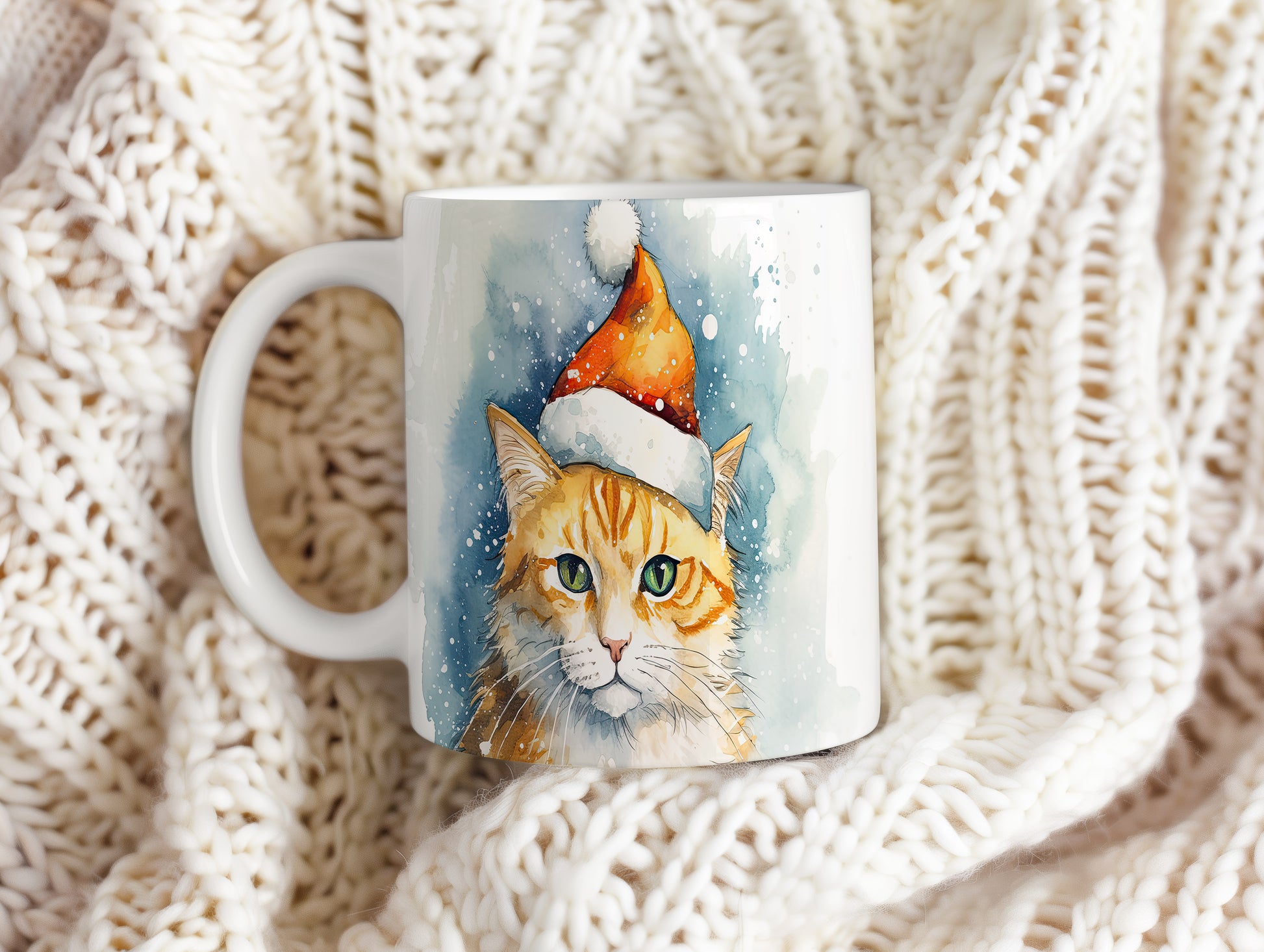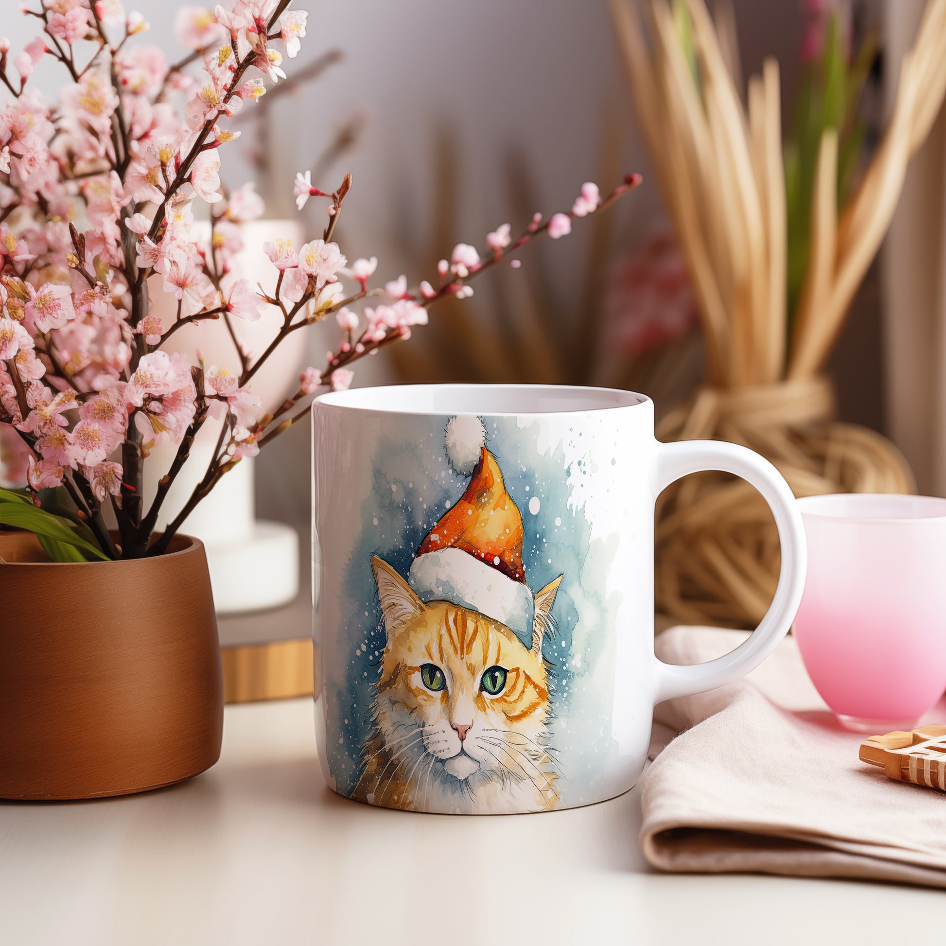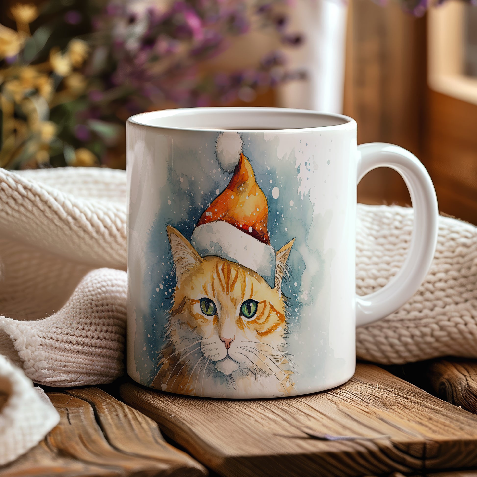 Hrnek s kočkou v zimním čepici