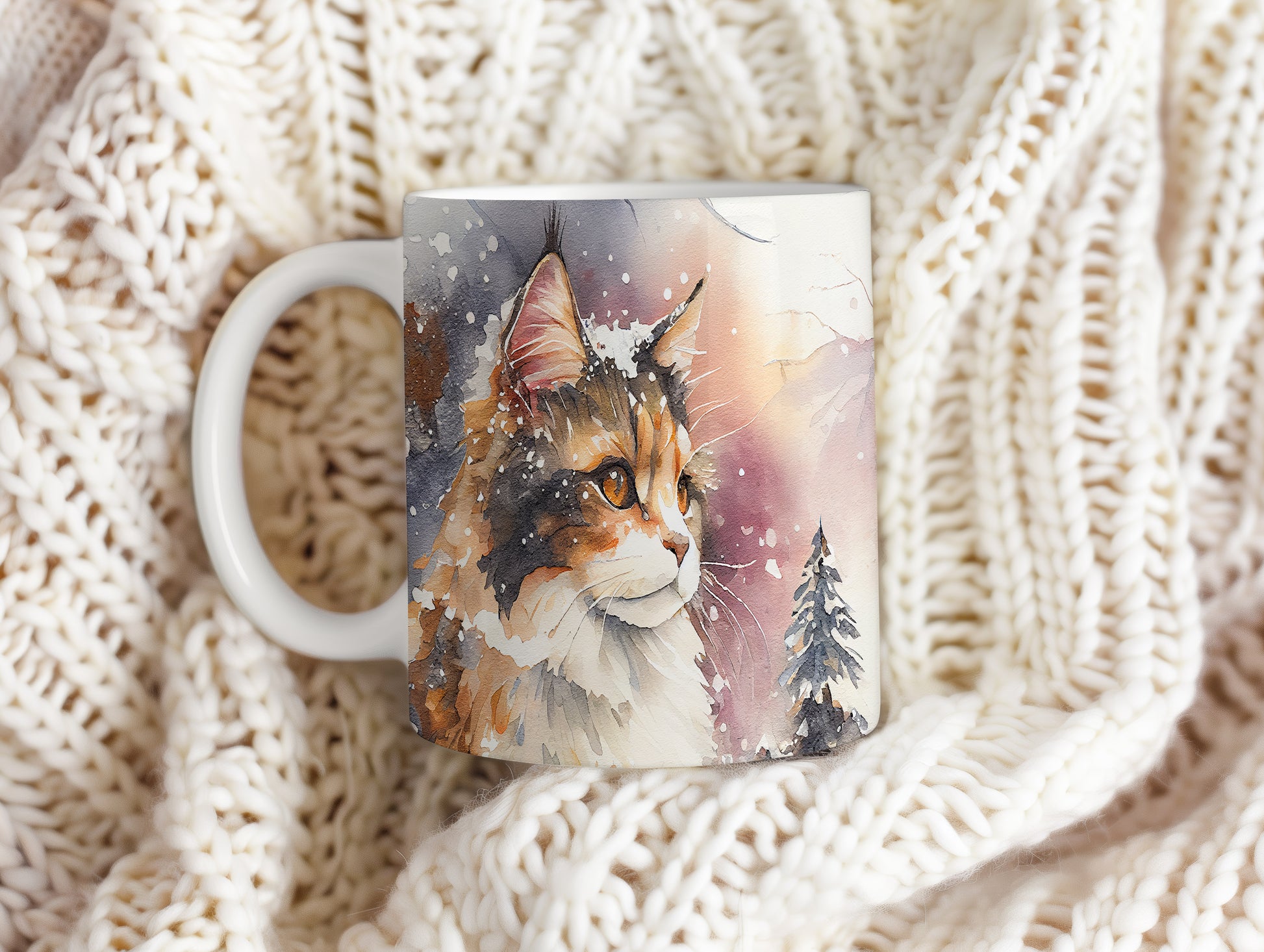 Hrnek s kočkou v zimním motivu