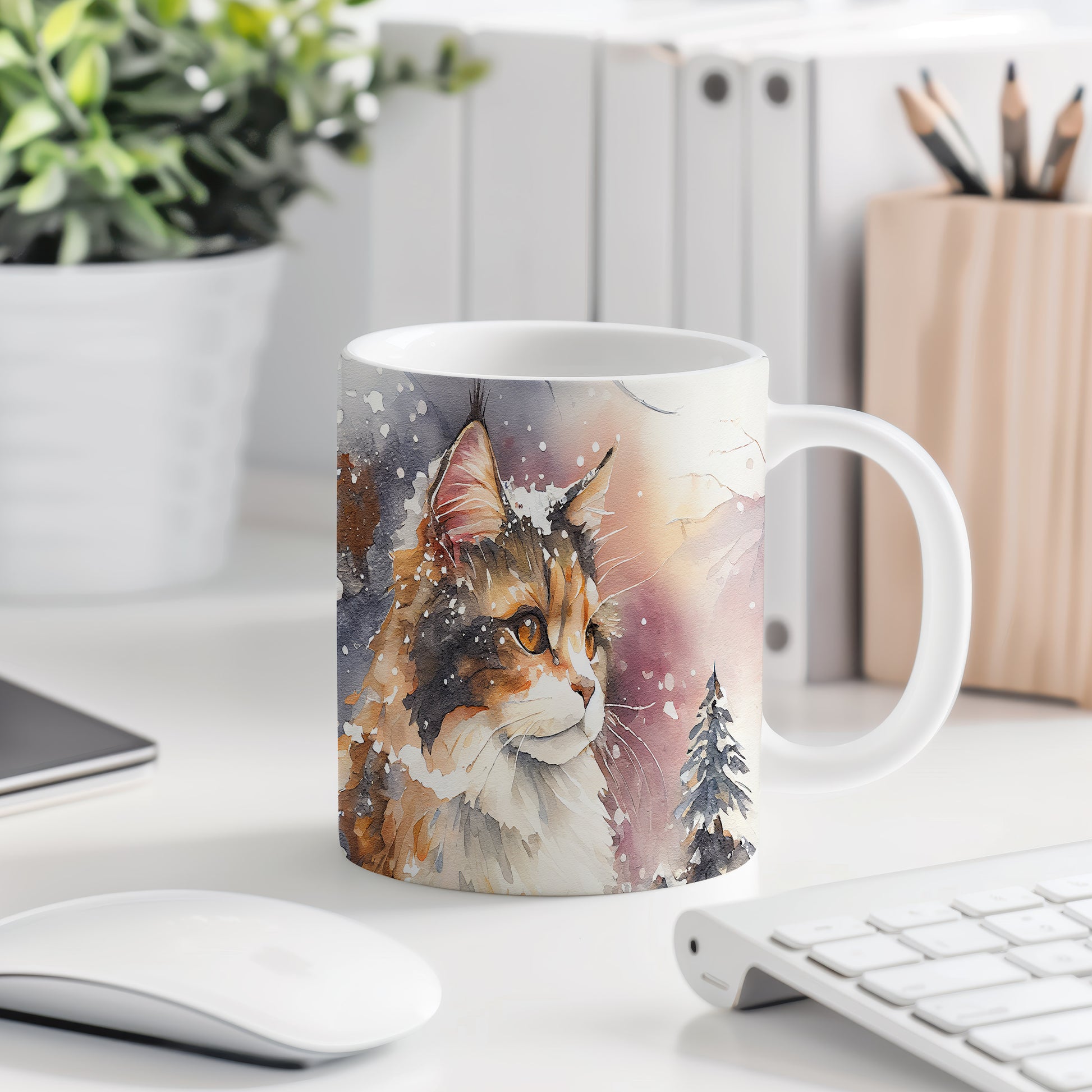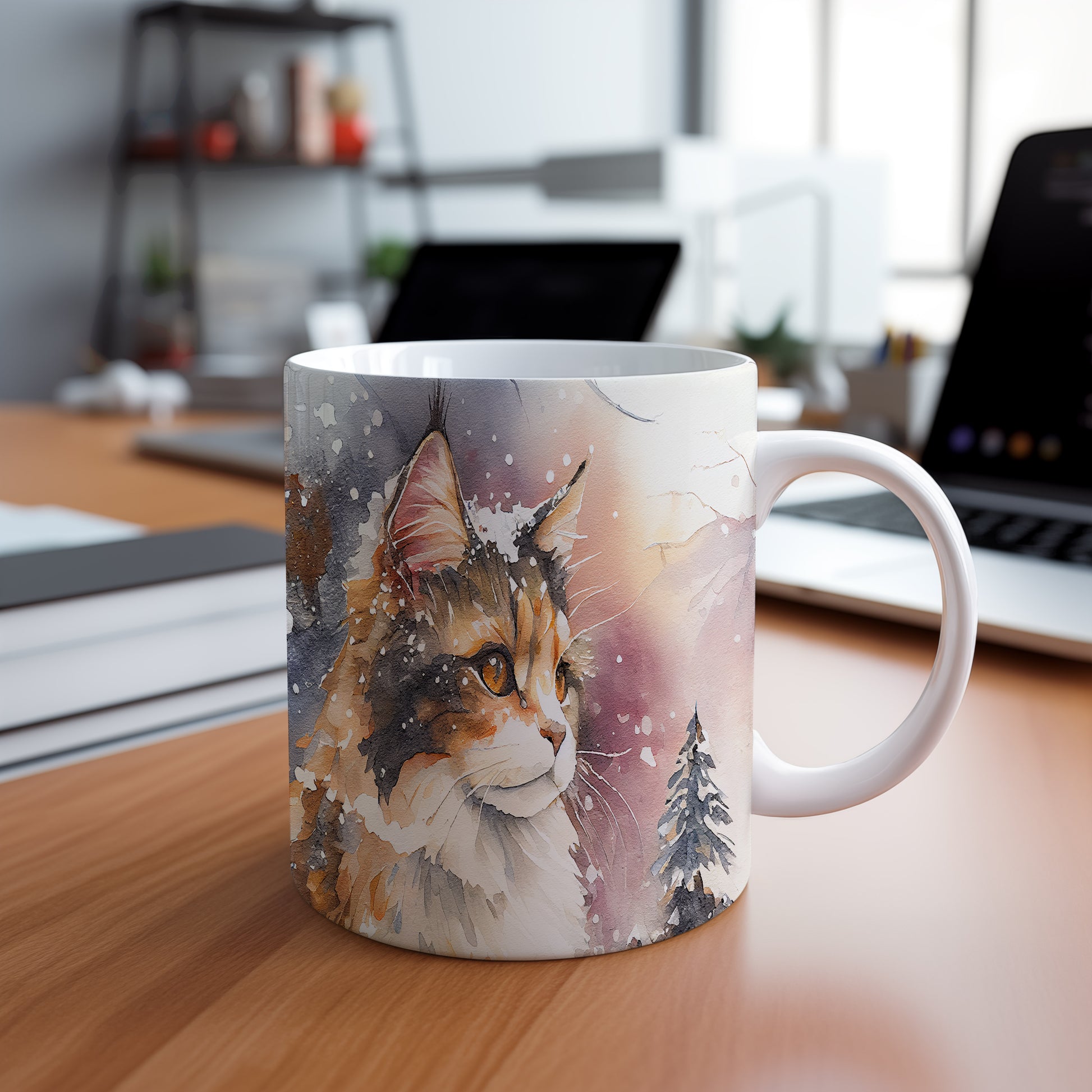 Hrnek s motivem kočky v zimní scenérii je skvělým kouskem pro milovníky těchto mazlíčků. Tento hrnek je ideální jako dárek pro přátele nebo rodinu, kteří ocení originální design. Materiál: keramika. Objem: 330 ml. Vhodné do myčky i mikrovlnky. Užívejte si svůj oblíbený nápoj s tímto stylovým hrnkem, který přináší radost do každého dne.