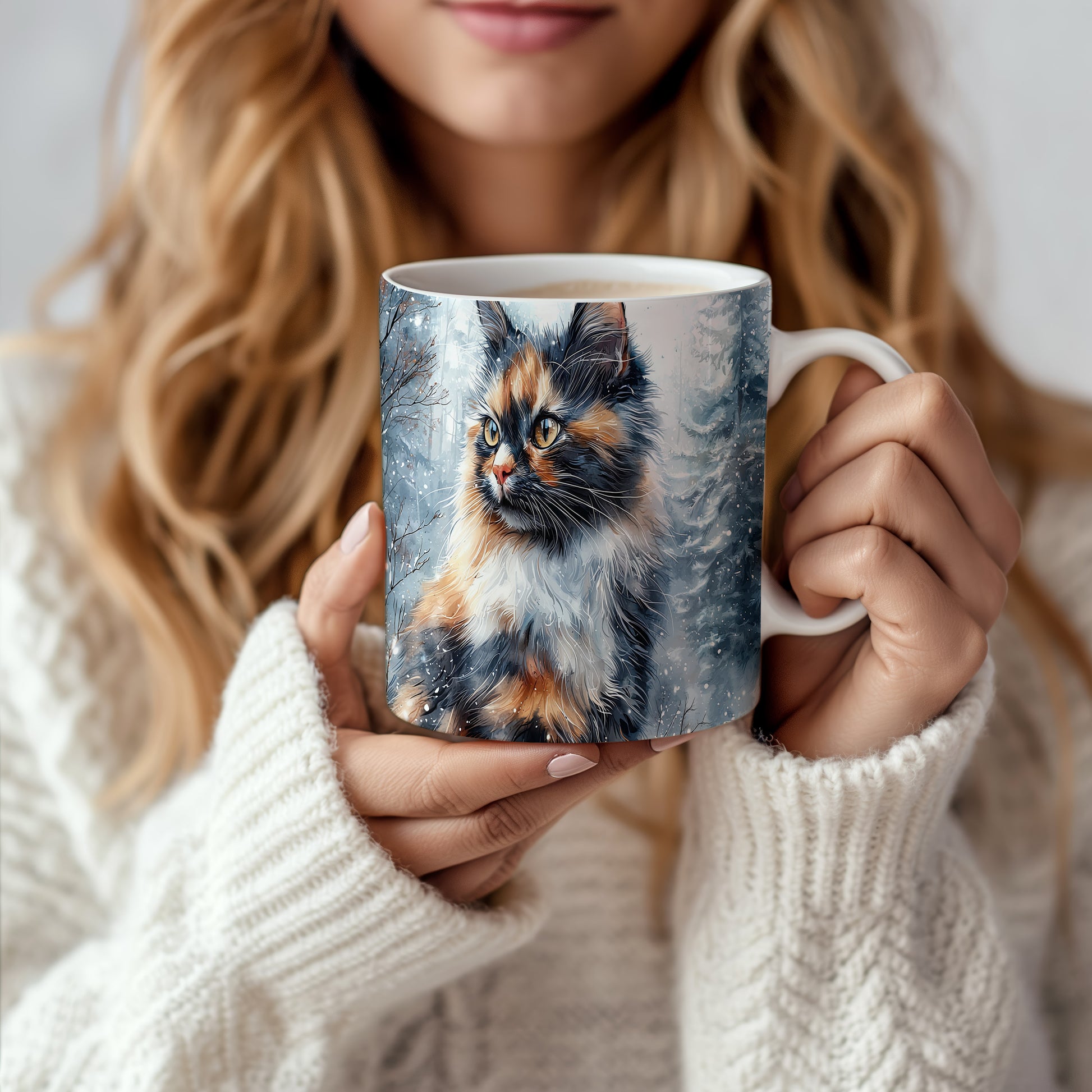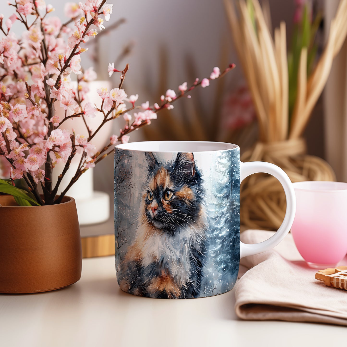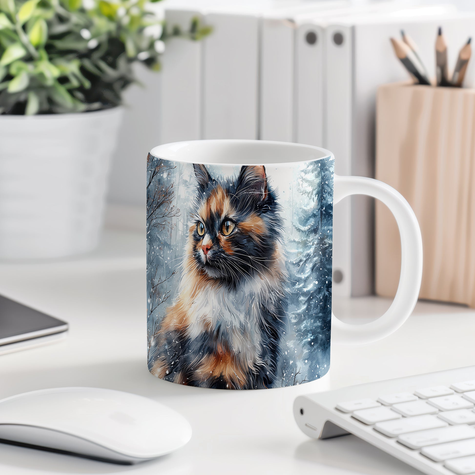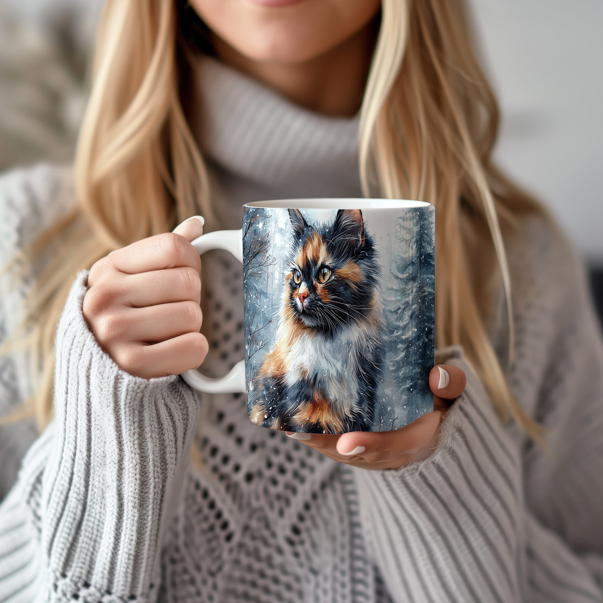 Keramický hrnek s realistickým motivem kočky v zasněžené krajině. Tento hrnek je ideální pro všechny milovníky koček a skvělým dárkem pro vaše blízké. Materiál: keramika. Objem: 330 ml. Vhodné do myčky i mikrovlnky. Používání tohoto hrnku přináší radost a útulnost do každého dne.