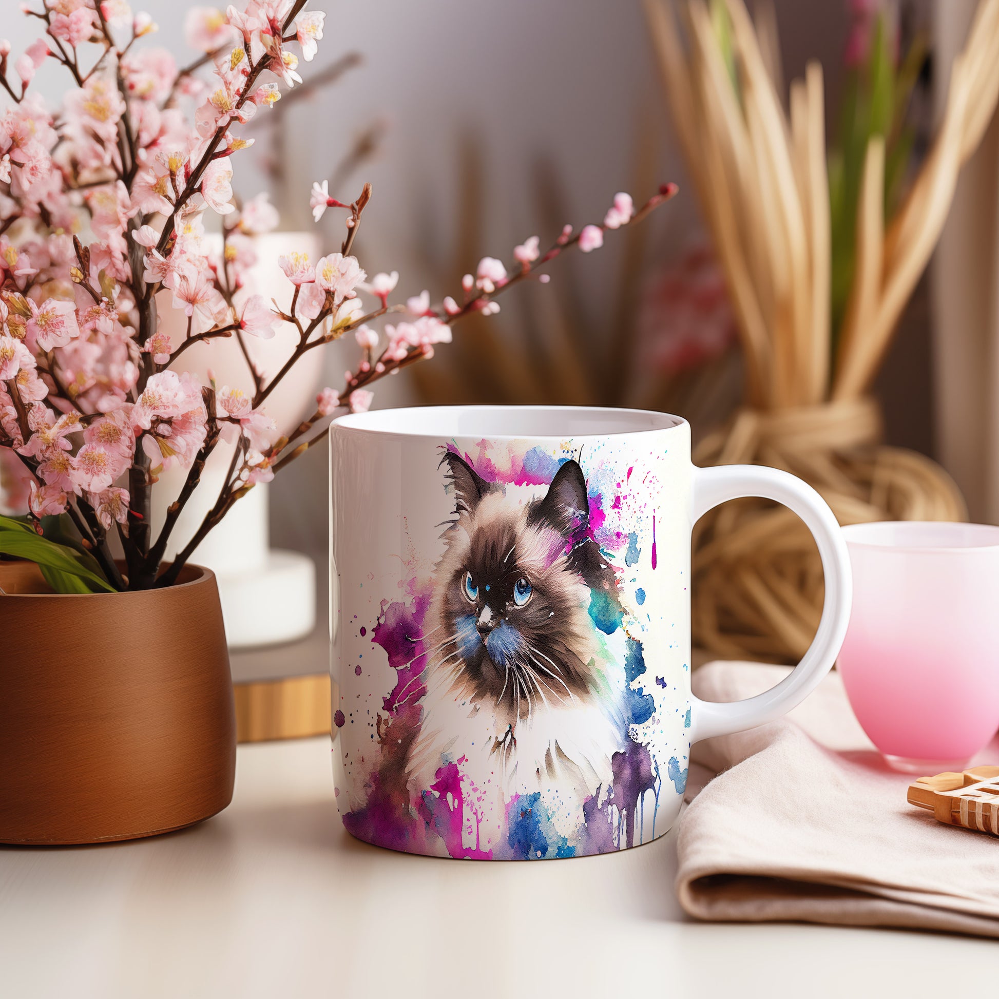 Hrnek s kočkou ve vodním stylu