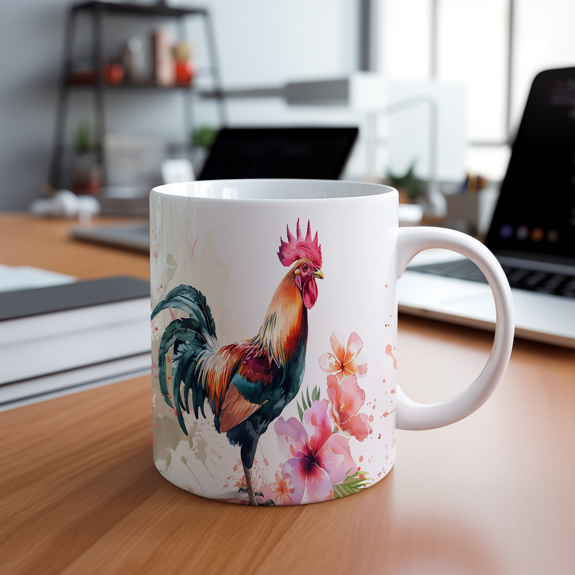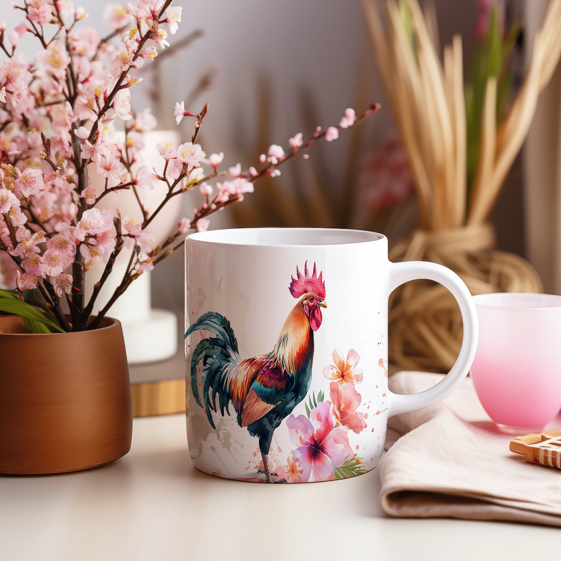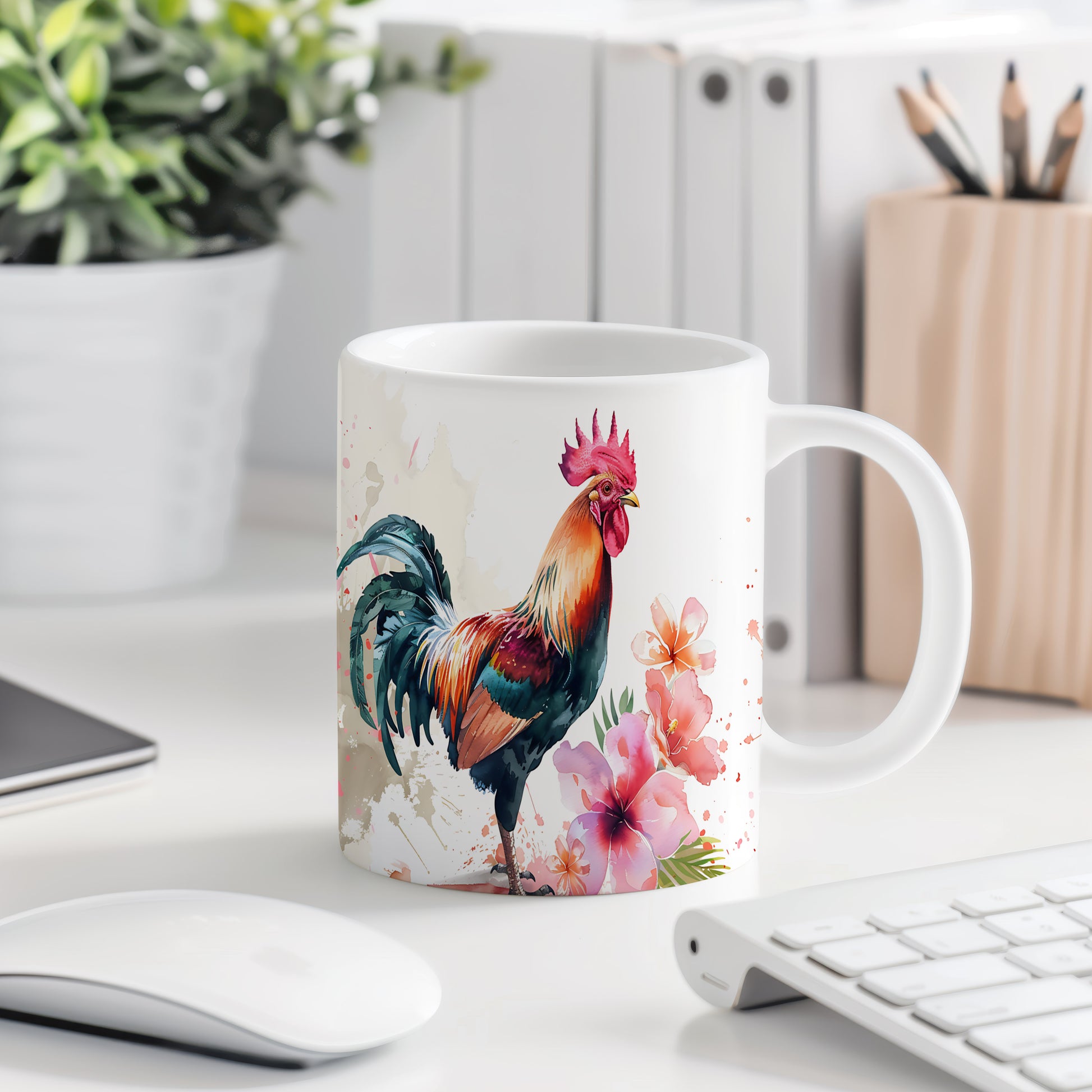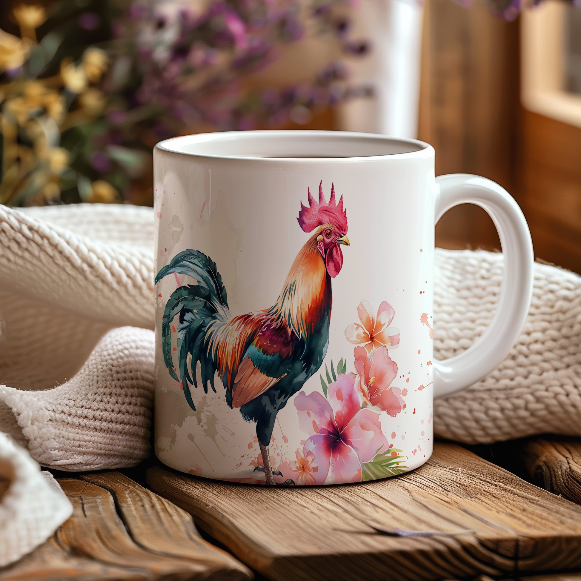 Stylový hrnek s barevným kohoutem a květinami, ideální pro milovníky přírody. Tento hrnek je skvělým dárkem pro přátele nebo rodinu, kteří ocení originální design. Materiál: keramika. Objem: 330 ml. Vhodné do myčky i mikrovlnky. Používáním tohoto hrnku si zpříjemníte každodenní chvíle s oblíbeným nápojem.