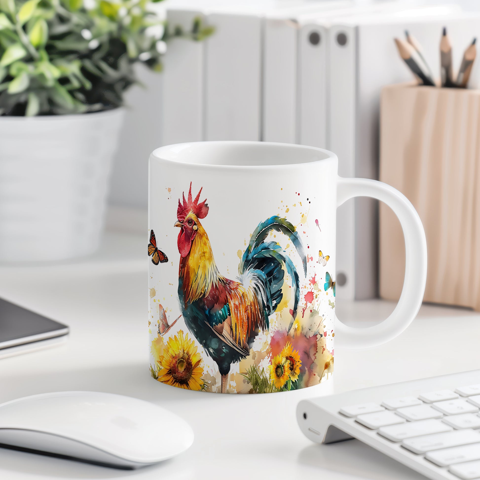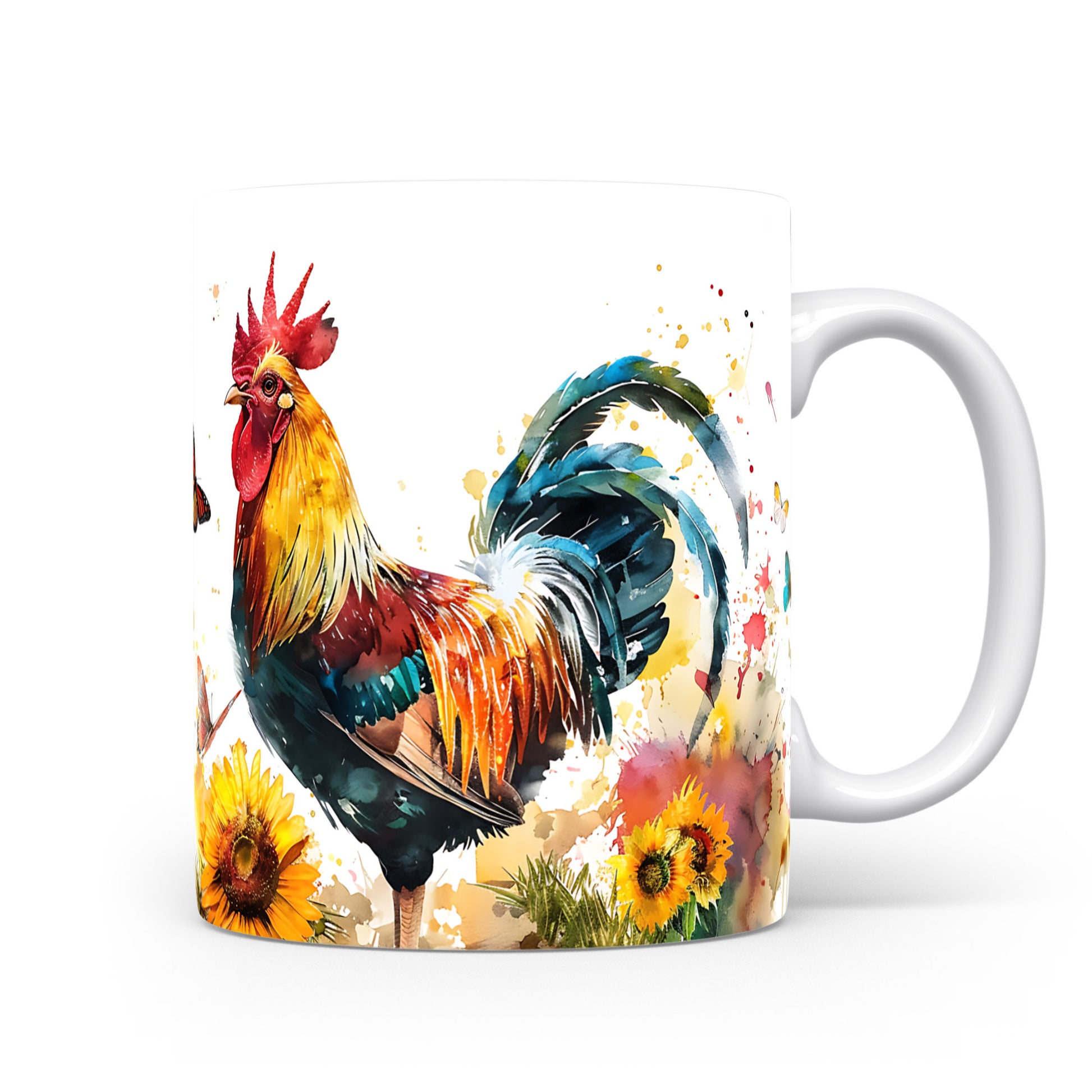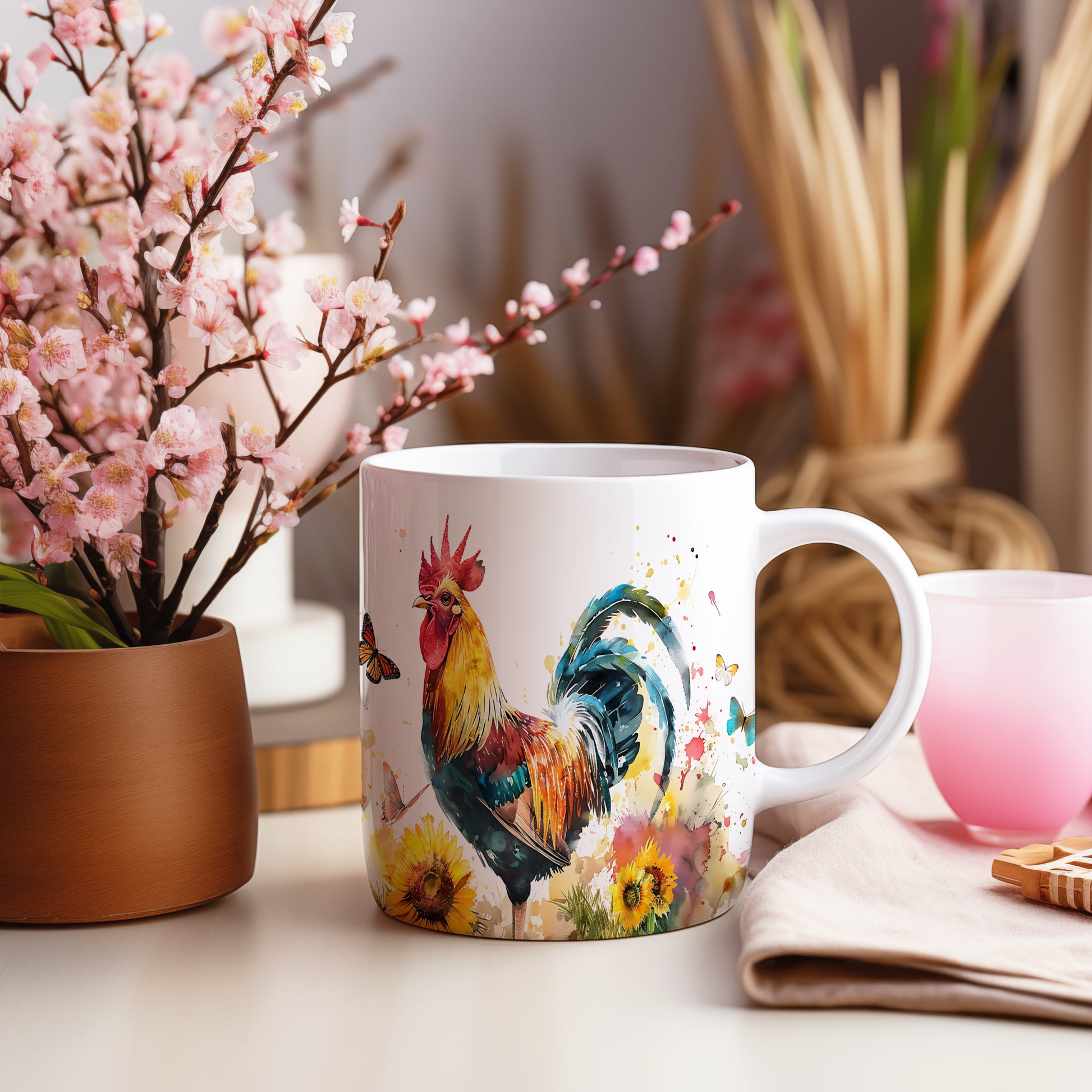 Keramický hrnek s barevným motivem kohouta a slunečnic. Tento atraktivní kousek je ideální pro milovníky přírody a skvělý tip na dárek pro přátele nebo rodinu. Materiál: keramika. Objem: 330 ml. Vhodné do myčky i mikrovlnky. Oživte své ranní nápoje a užijte si jejich pití s tímto jedinečným hrnkem.
