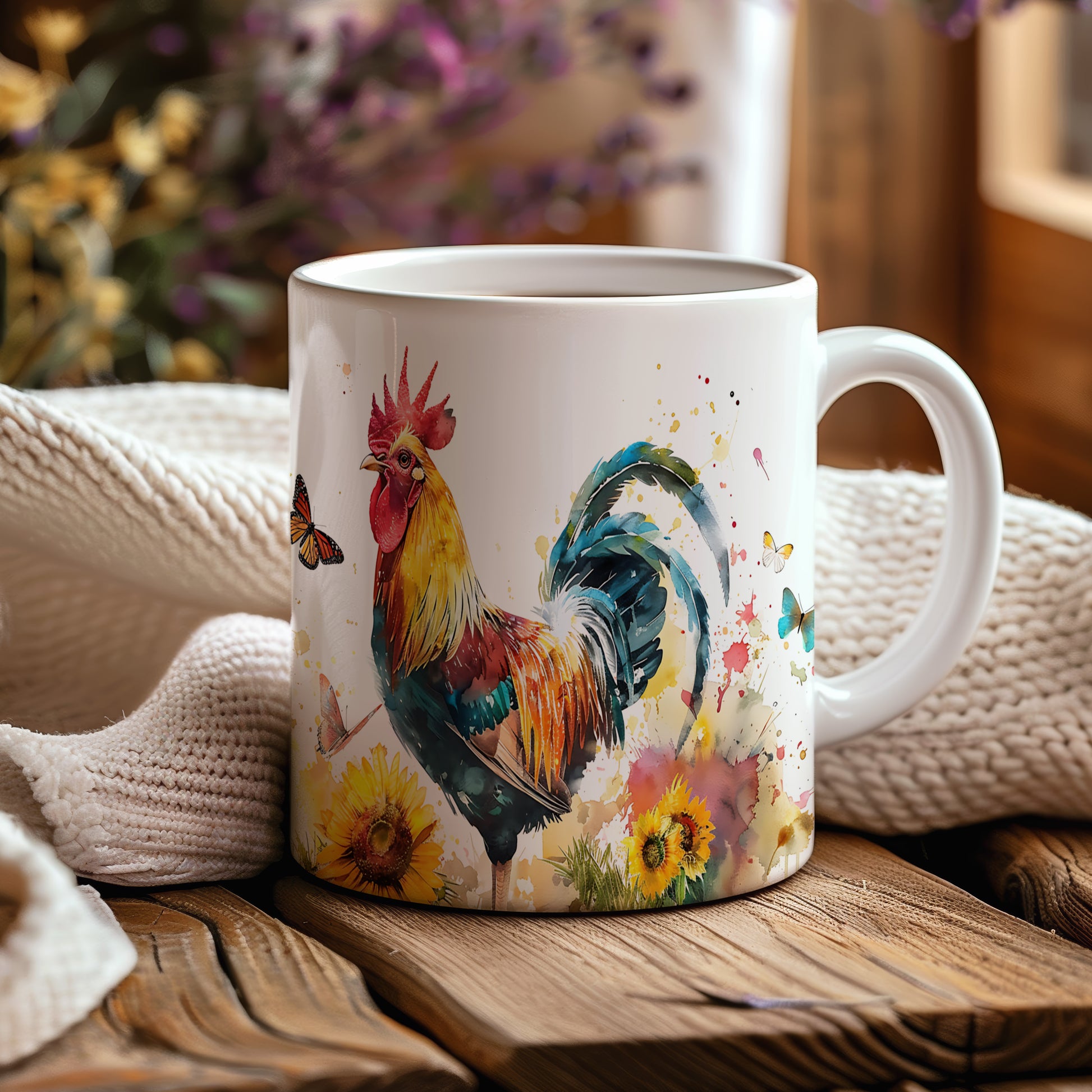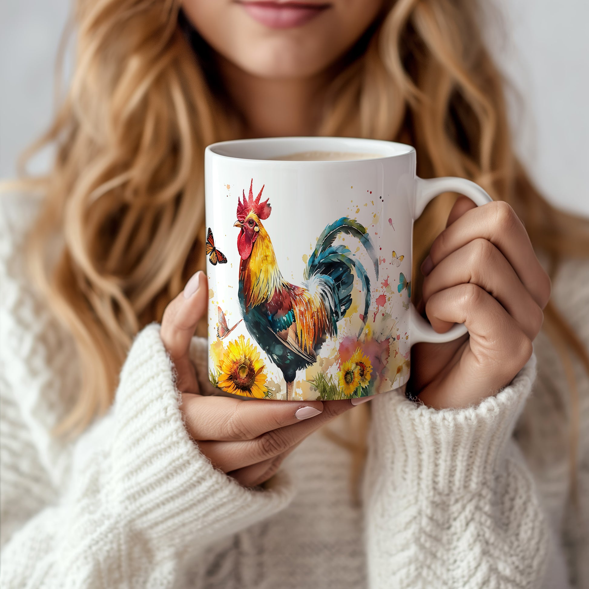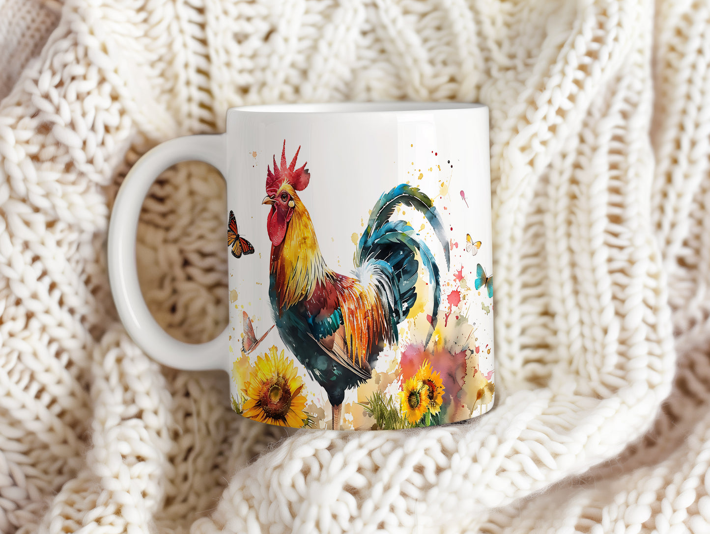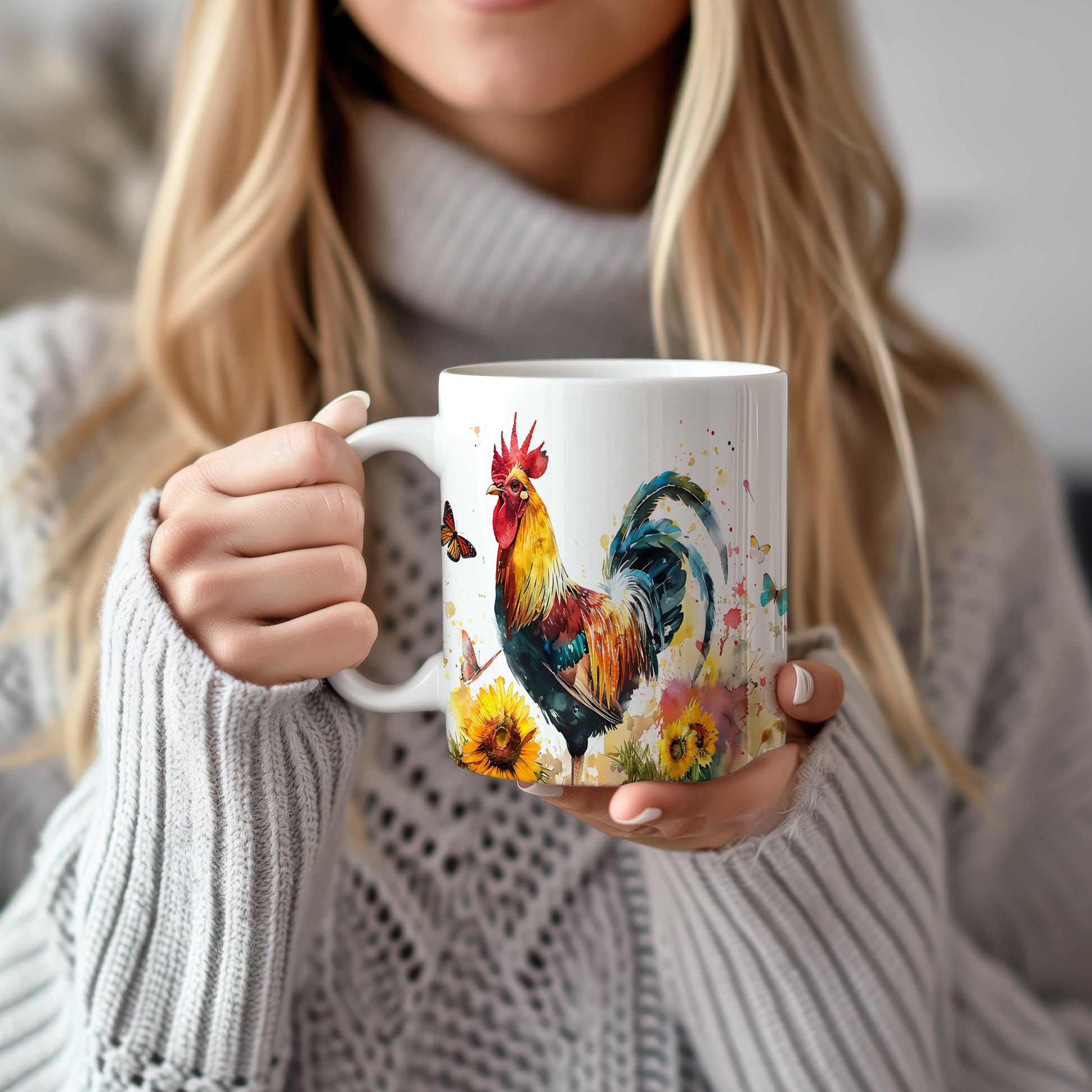 Keramický hrnek s barevným motivem kohouta a slunečnic. Tento atraktivní kousek je ideální pro milovníky přírody a skvělý tip na dárek pro přátele nebo rodinu. Materiál: keramika. Objem: 330 ml. Vhodné do myčky i mikrovlnky. Oživte své ranní nápoje a užijte si jejich pití s tímto jedinečným hrnkem.