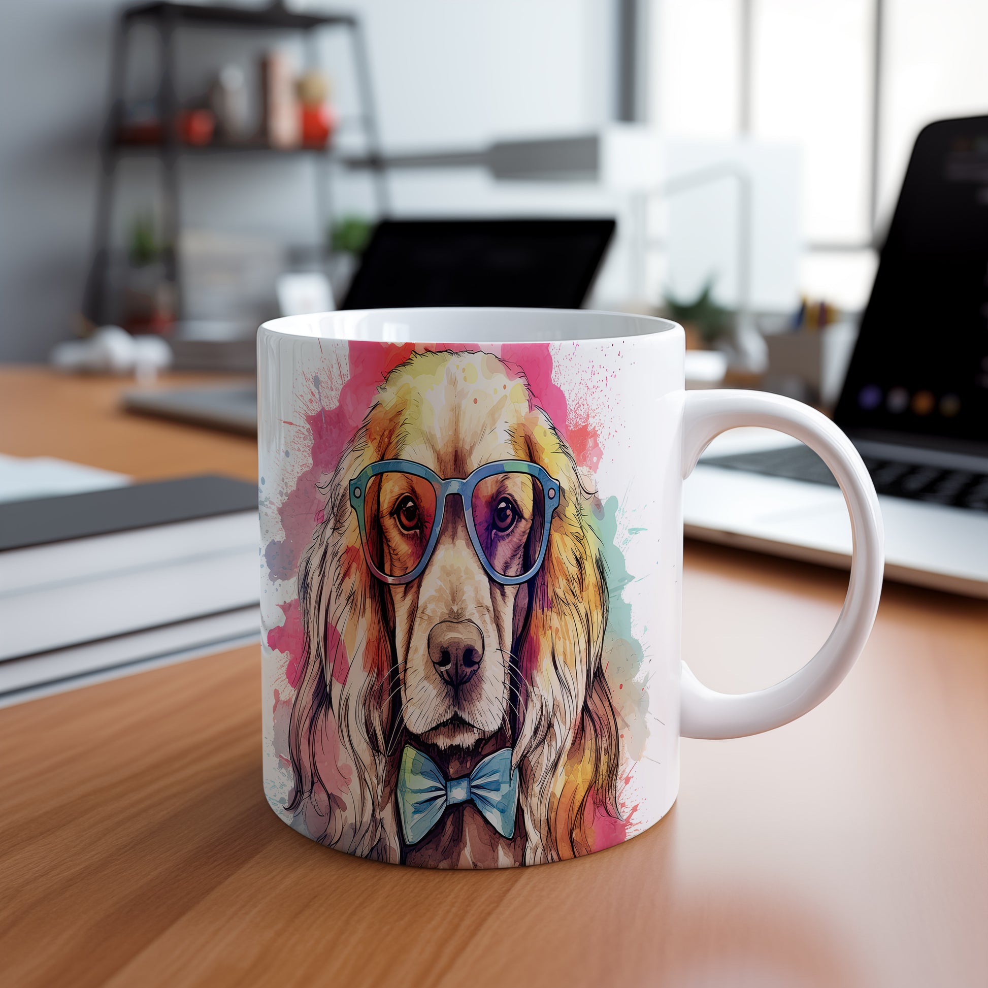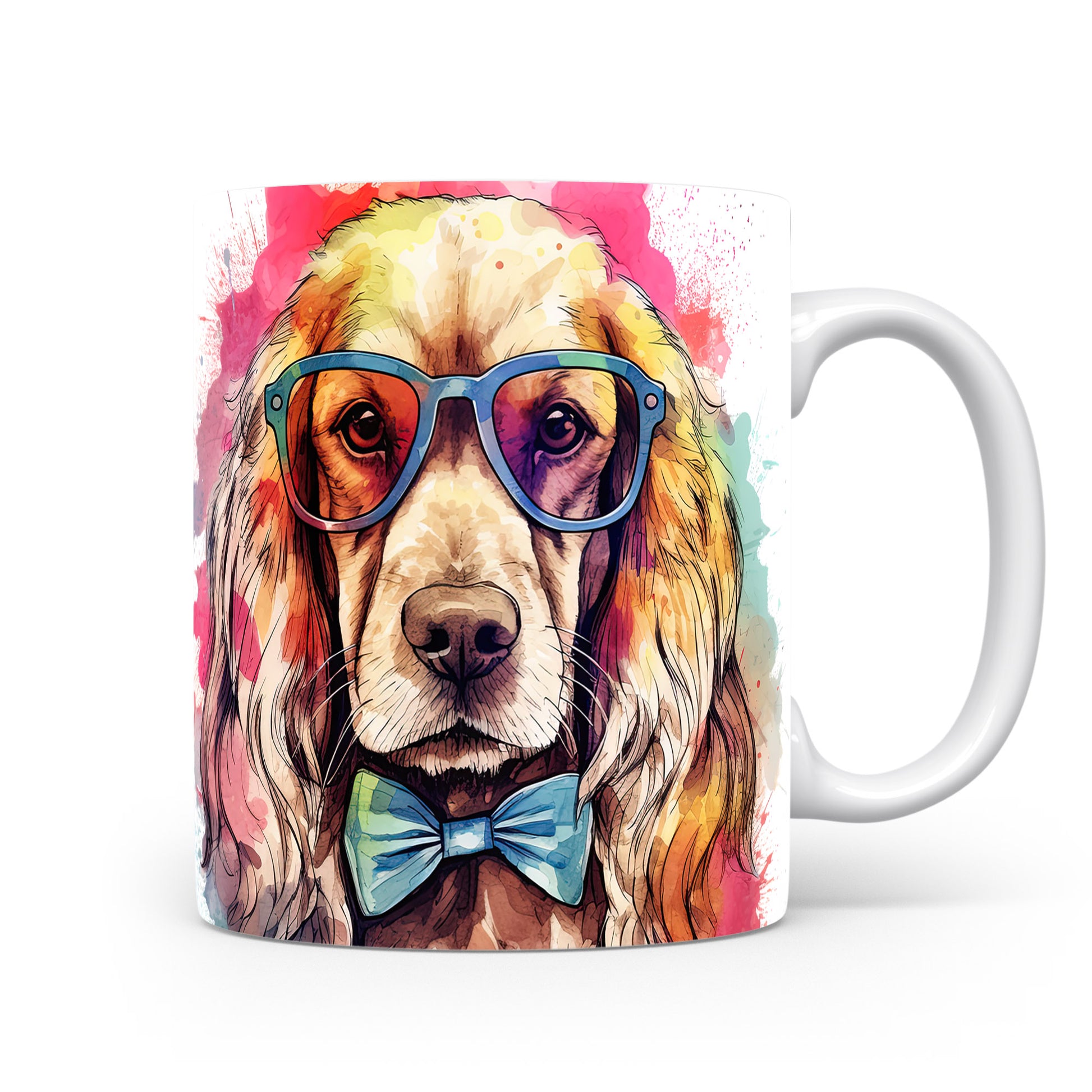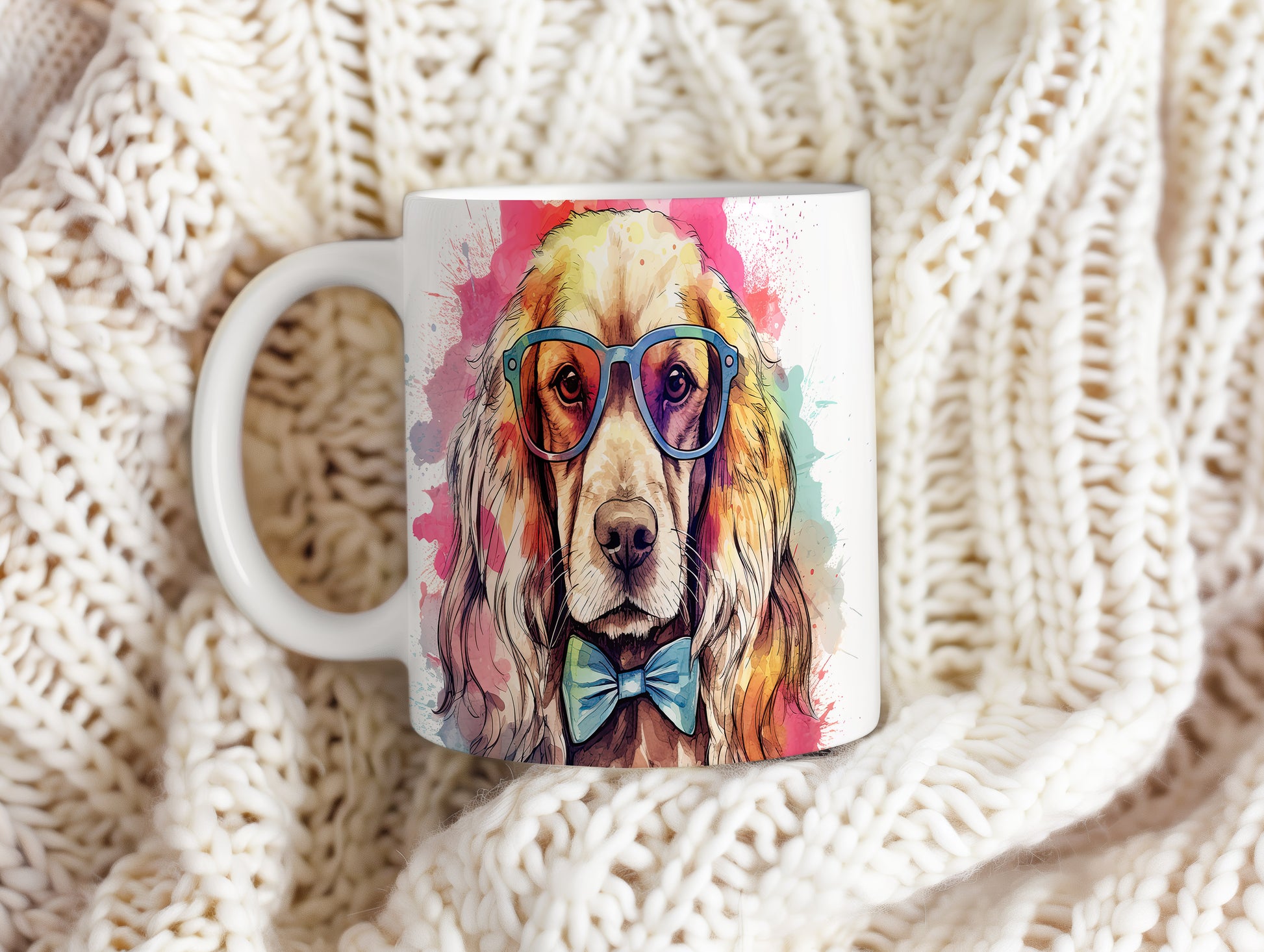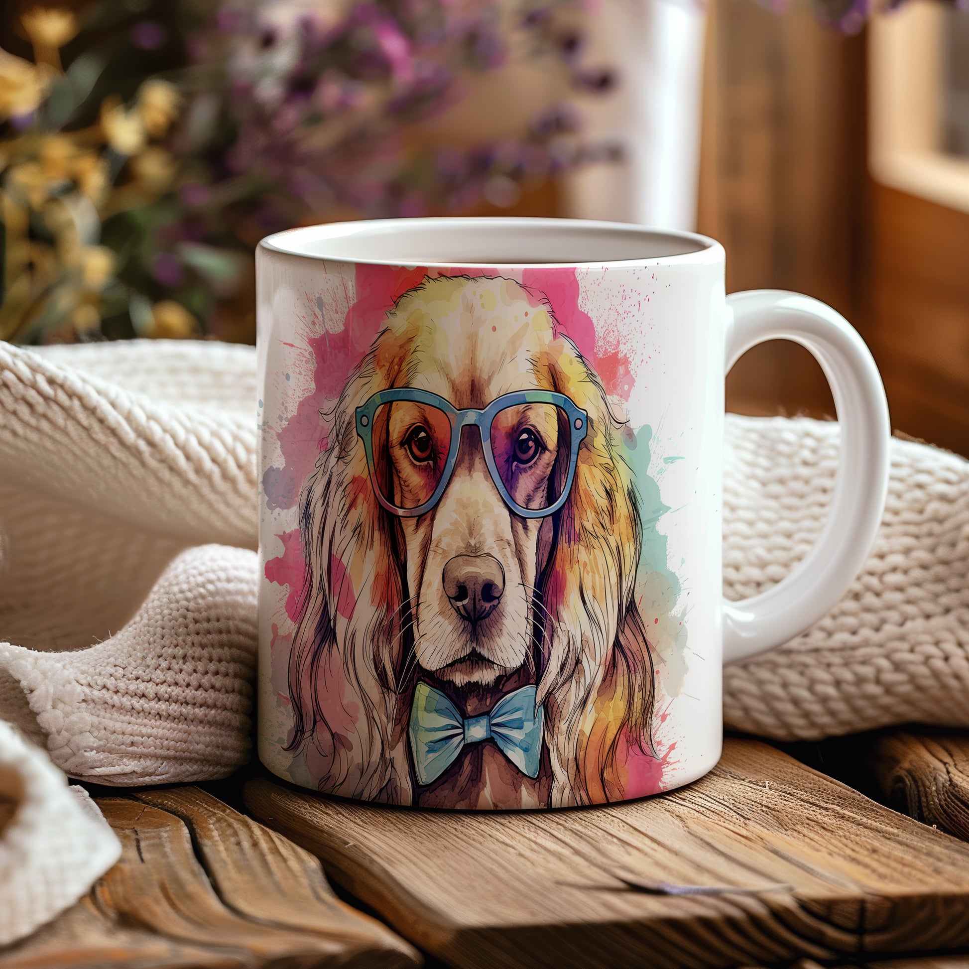 Hrnek s kokršpanělem v brýlích a motýlku - španělský pes
